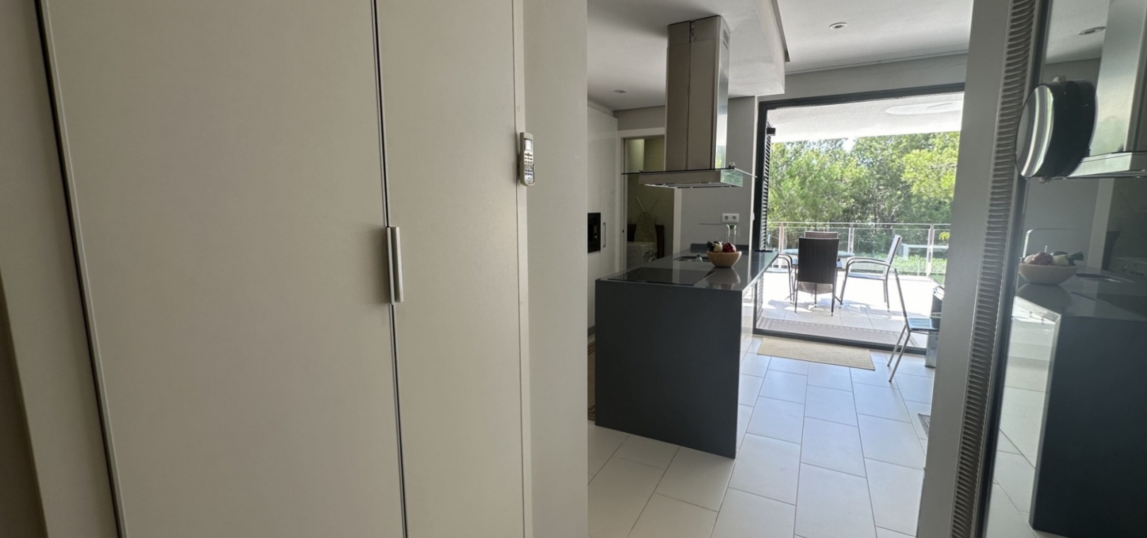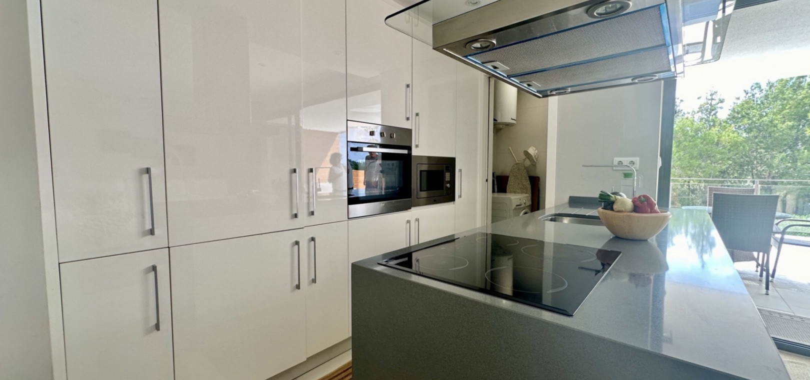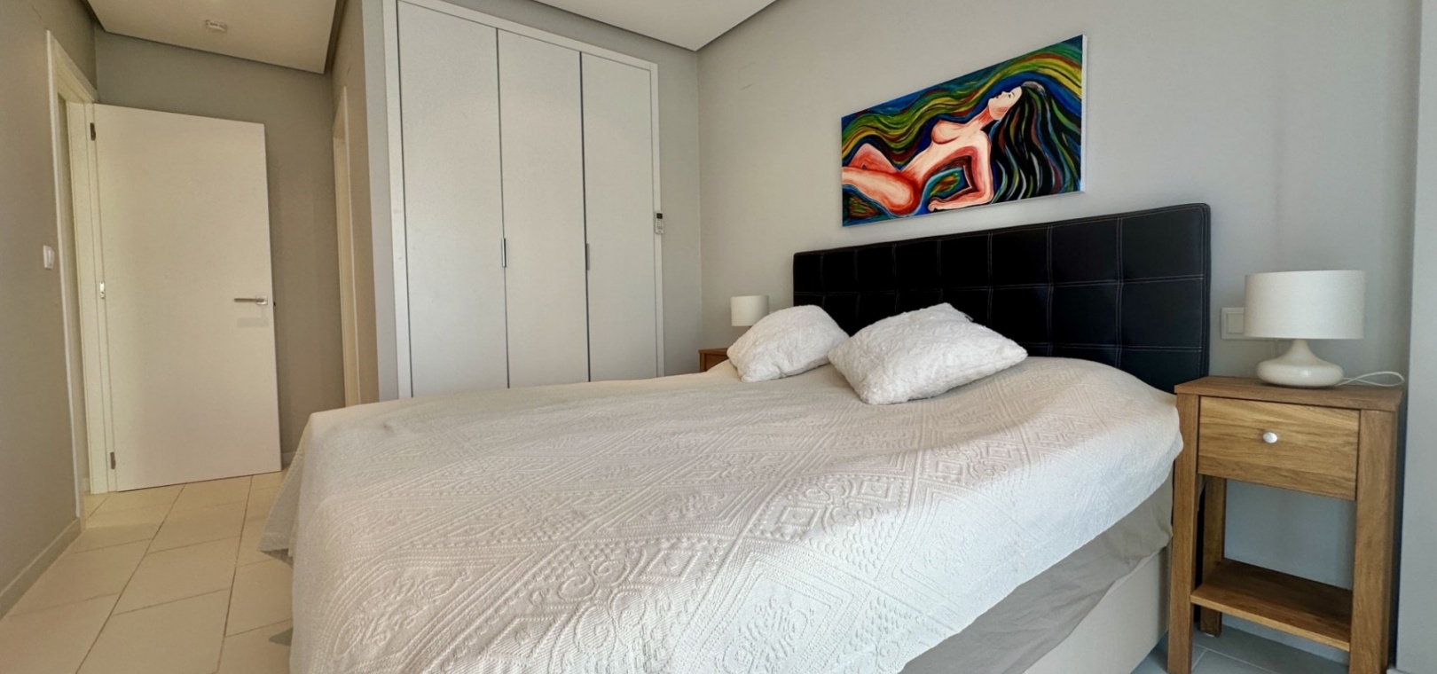 Cuisine ouverte et salon spacieux Buanderie séparée Deux chambres spacieuses avec placards intégrés Deux salles de bains modernes Climatisation et finitions haut de gamme dans tout l'ensemble
