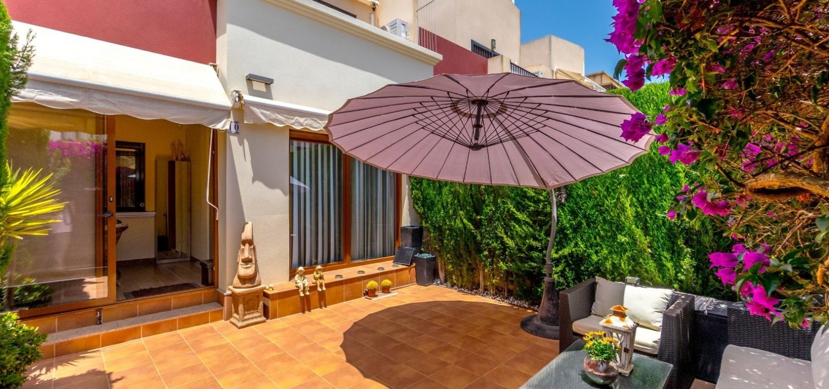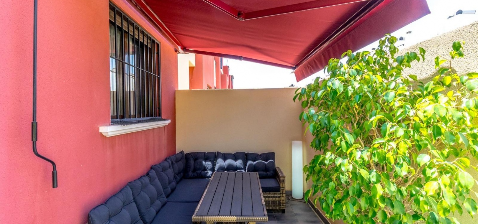 L'espace de vie extérieur est exceptionnel, avec une terrasse avant de 43 m² aménagée avec du mobilier de jardin en rotin, un patio arrière privé , un balcon à l'étage et un solarium privé de 40 m² – idéal pour profiter du climat méditerranéen toute l'année.