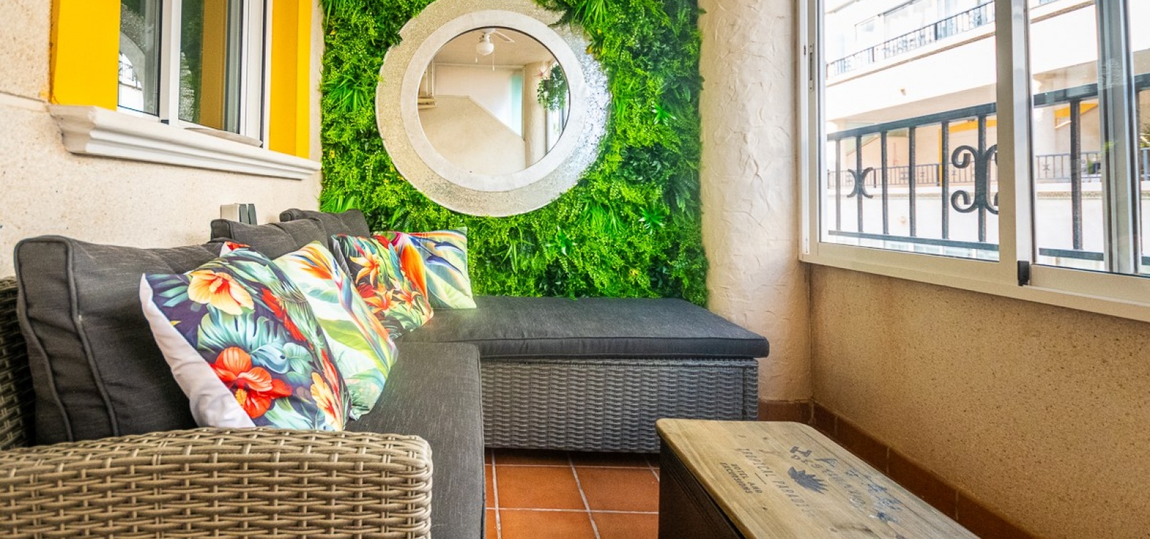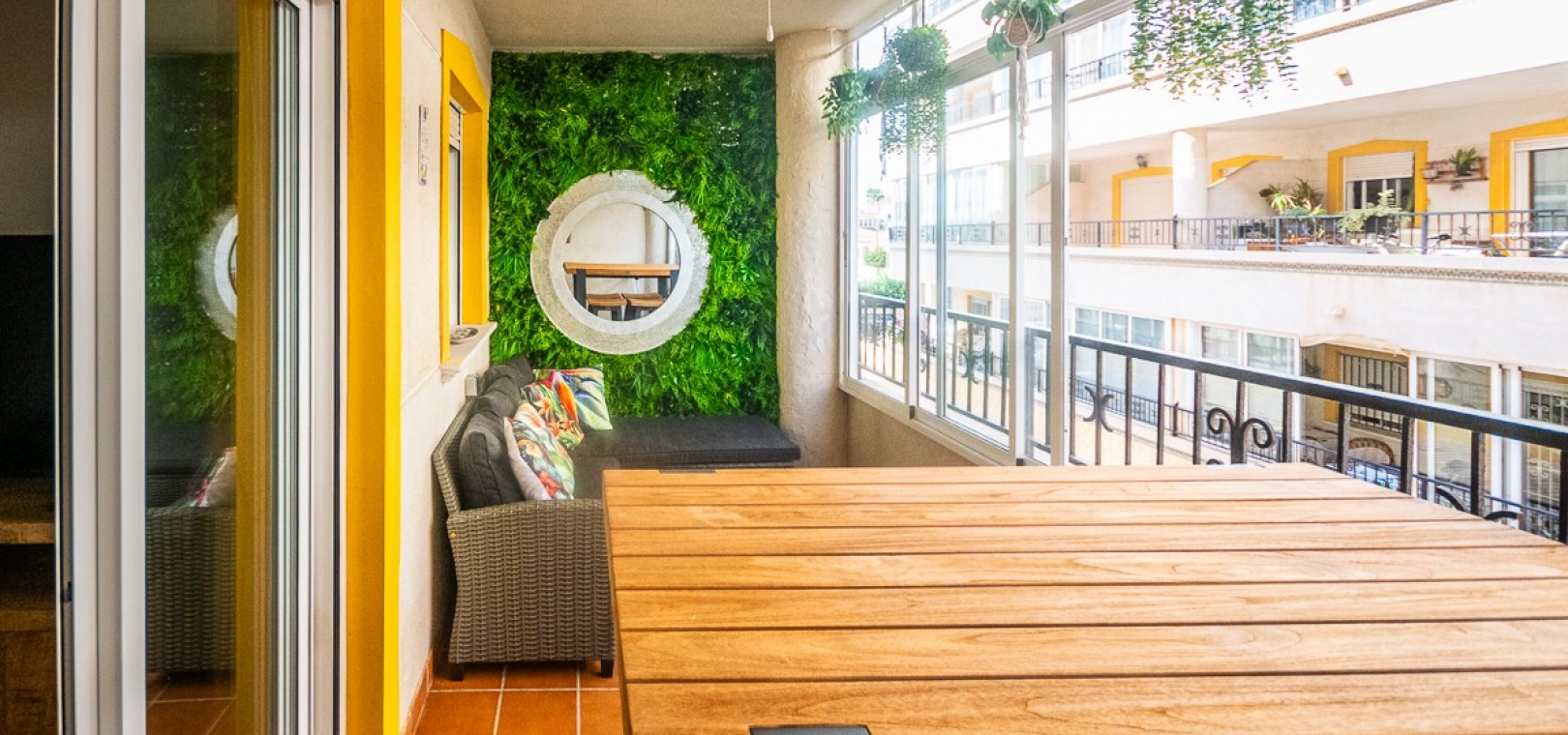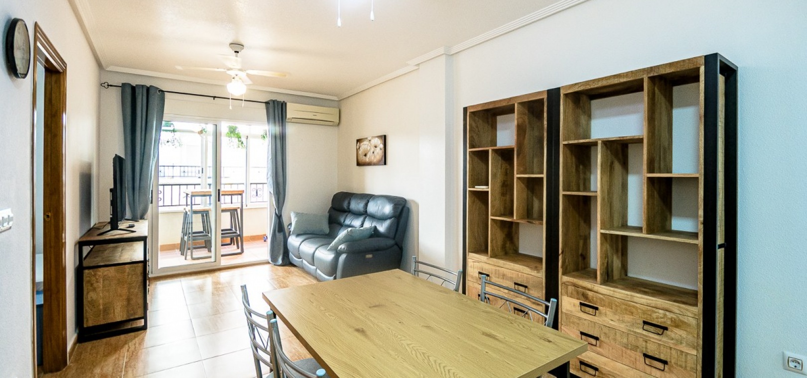 L' espace de vie ouvert réunit un salon confortable, un coin repas et une cuisine entièrement équipée, créant un cadre idéal pour savourer le style de vie méditerranéen . Accédez à la terrasse entièrement vitrée et profitez ainsi de la vie en plein air toute l'année , même en hiver.