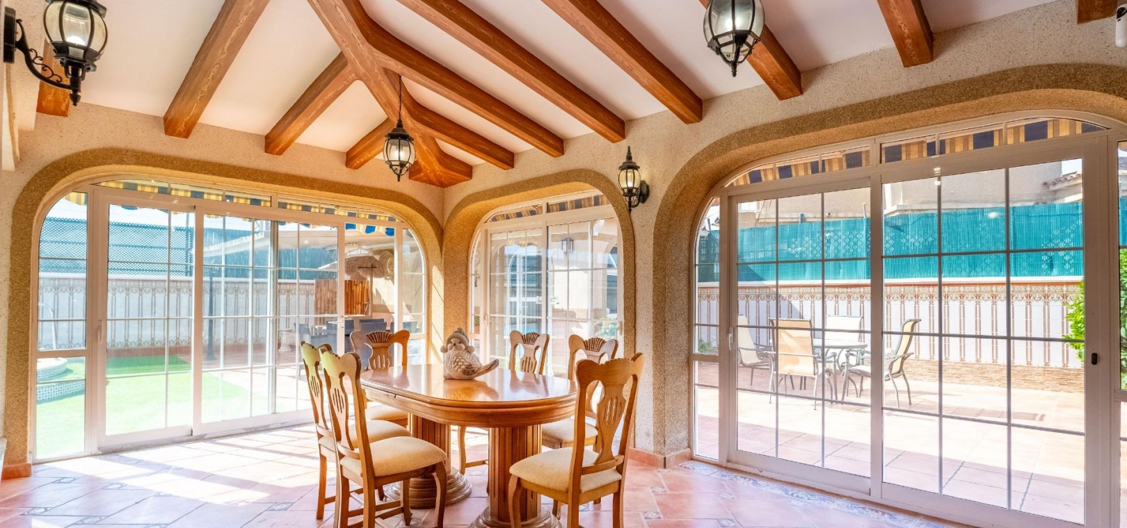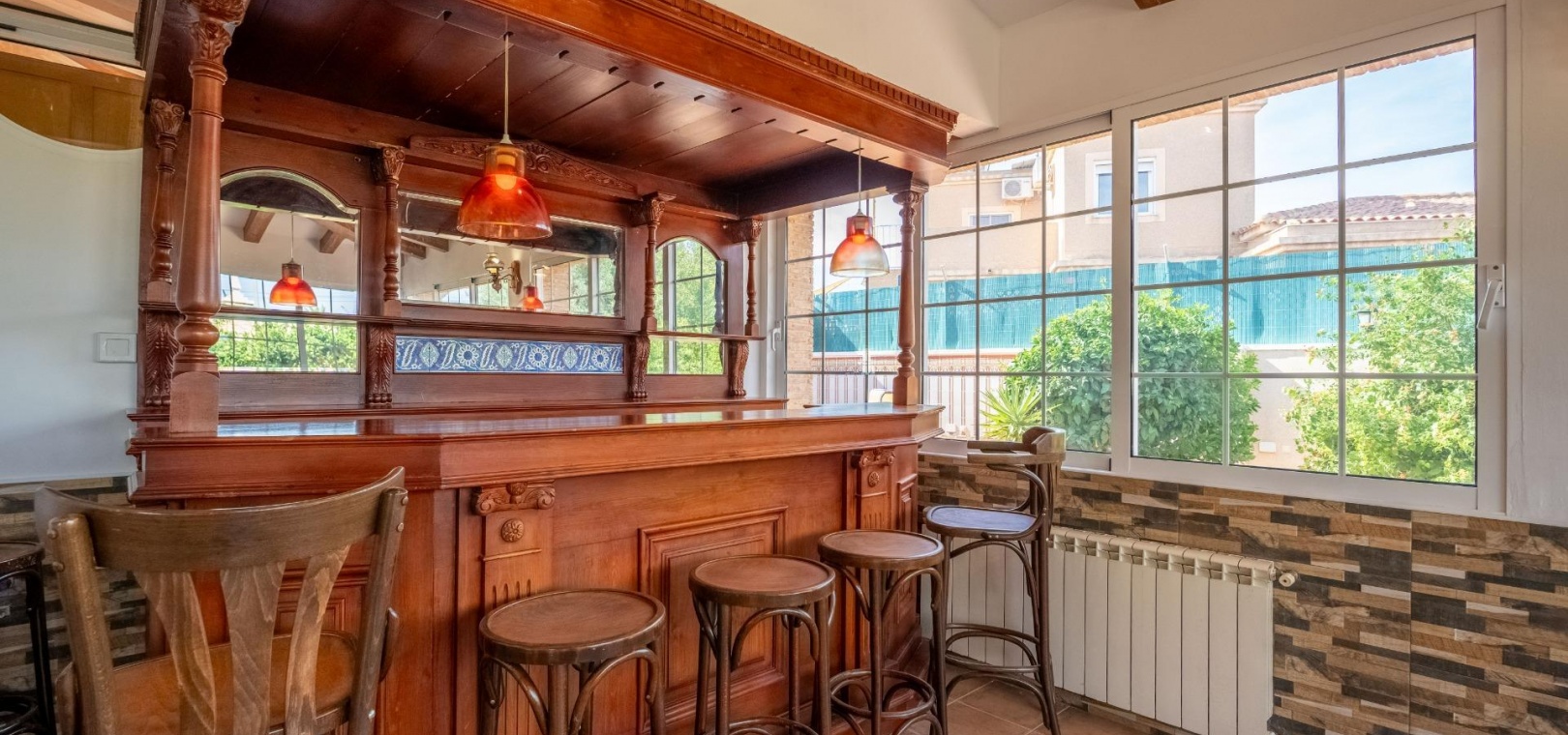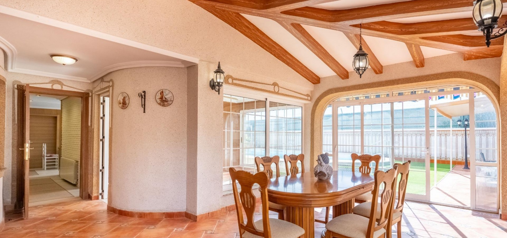 6 chambres , dont 3 entièrement meublées avec dressing. 3 salles de bains , dont une avec baignoire balnéo Grande cuisine indépendante entièrement équipée Salon avec bar et cave à vin Solarium vitré
