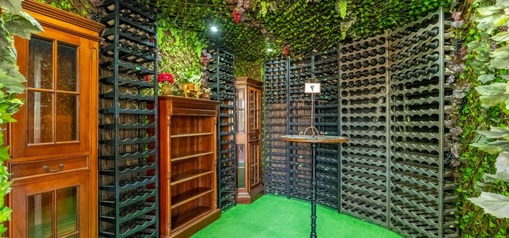 Cinéma maison avec écran géant Cave à vin Bar avec comptoir et places assises espace de bureau privé