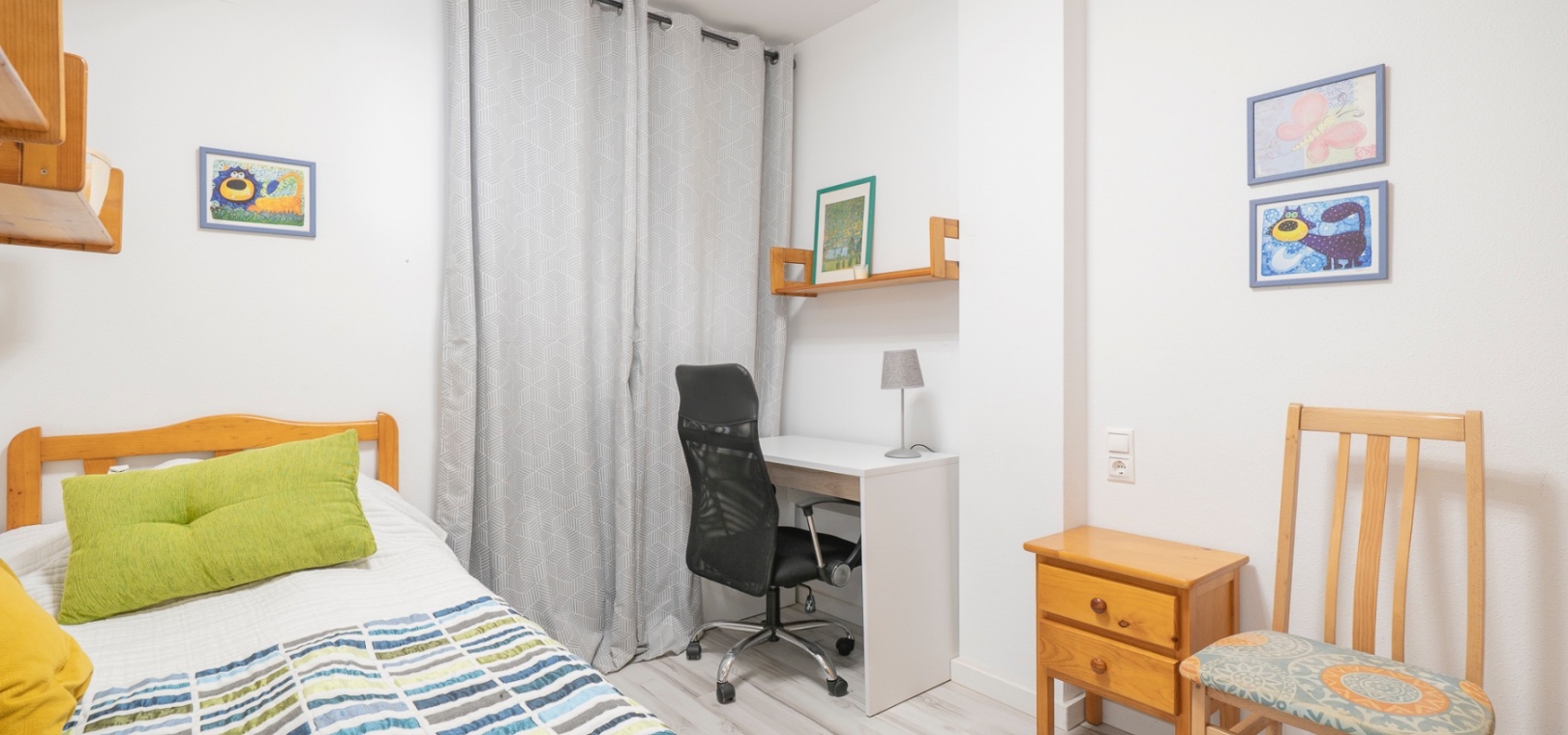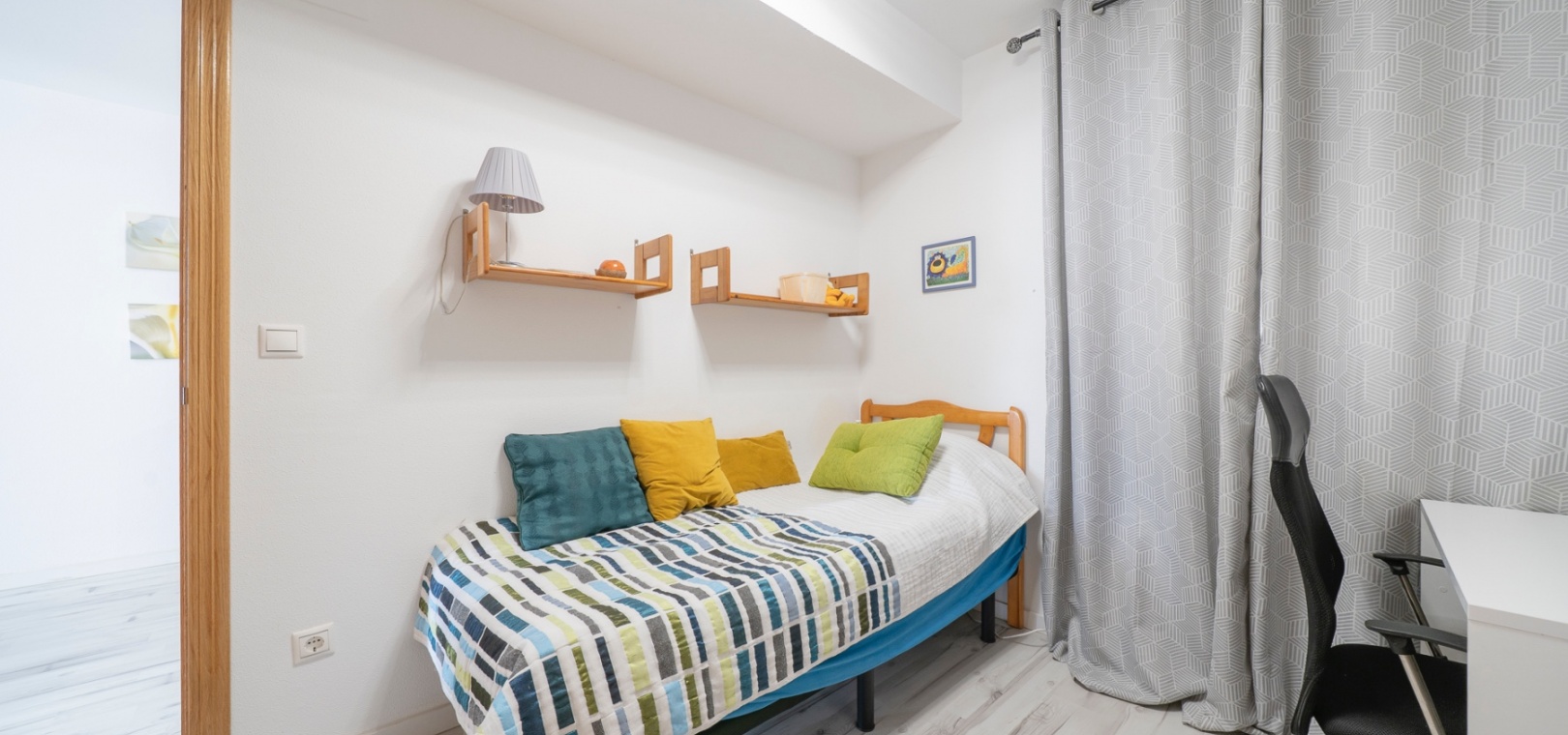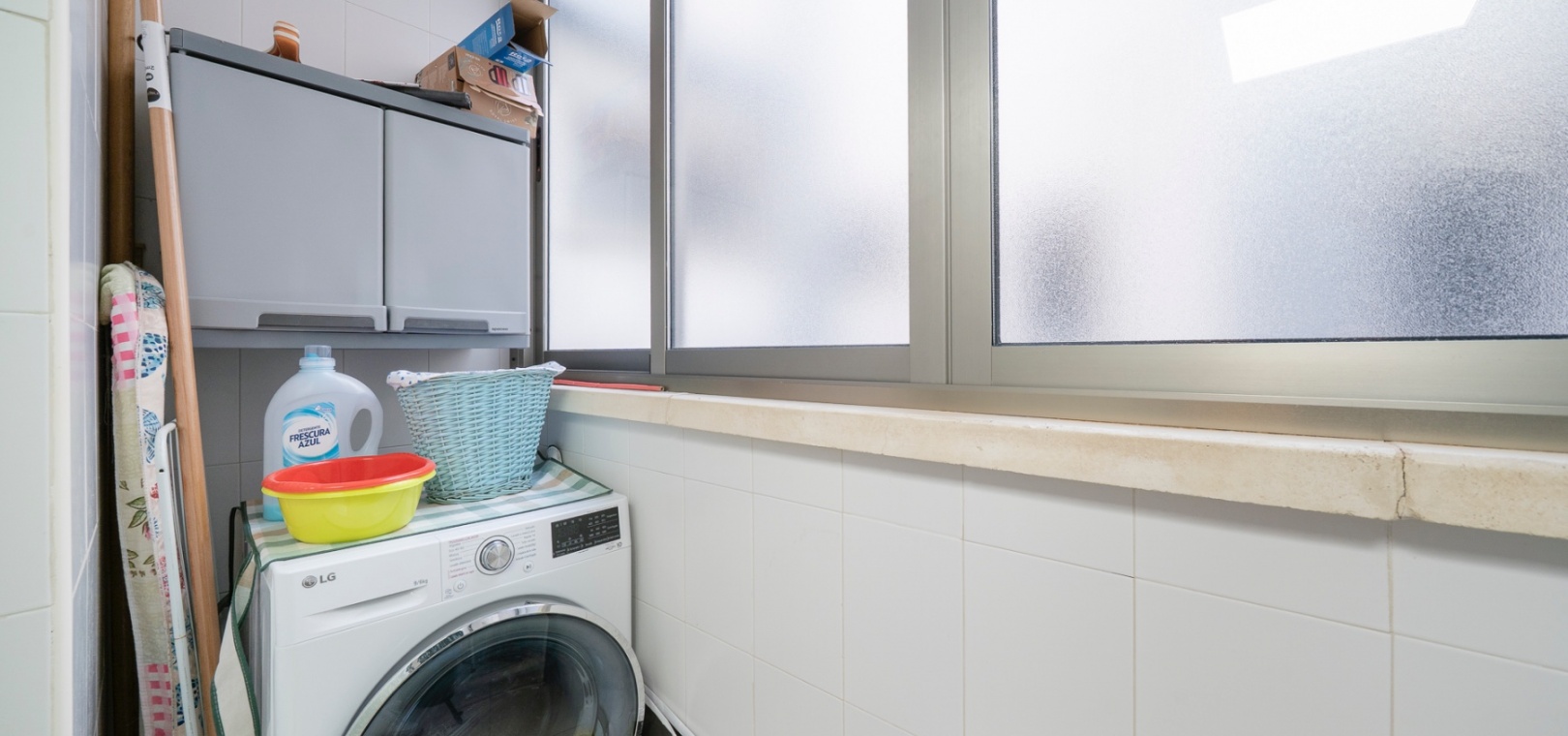 Situé au troisième étage avec ascenseur, cet appartement comprend deux chambres avec placards intégrés, une salle de bains et un espace de vie lumineux et ouvert avec cuisine équipée. Une buanderie séparée, accessible directement depuis la cuisine, offre un espace de rangement supplémentaire et un aspect pratique.