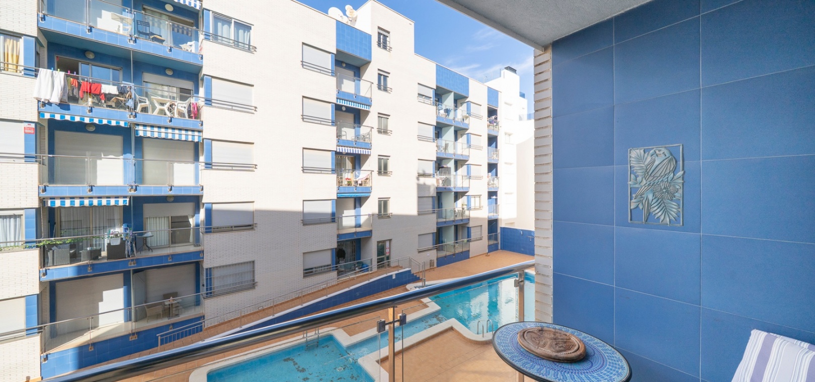 Cet appartement de deux chambres est situé dans un complexe résidentiel de première ligne très prisé à Playa de los Locos, Torrevieja, offrant un excellent style de vie côtier avec un accès immédiat à la plage et aux commodités locales.