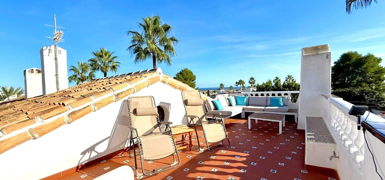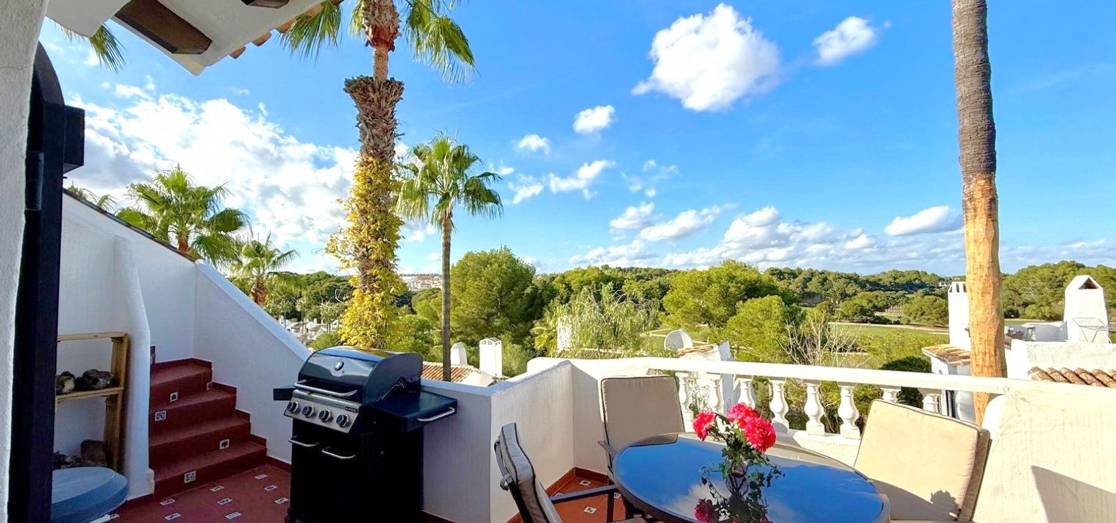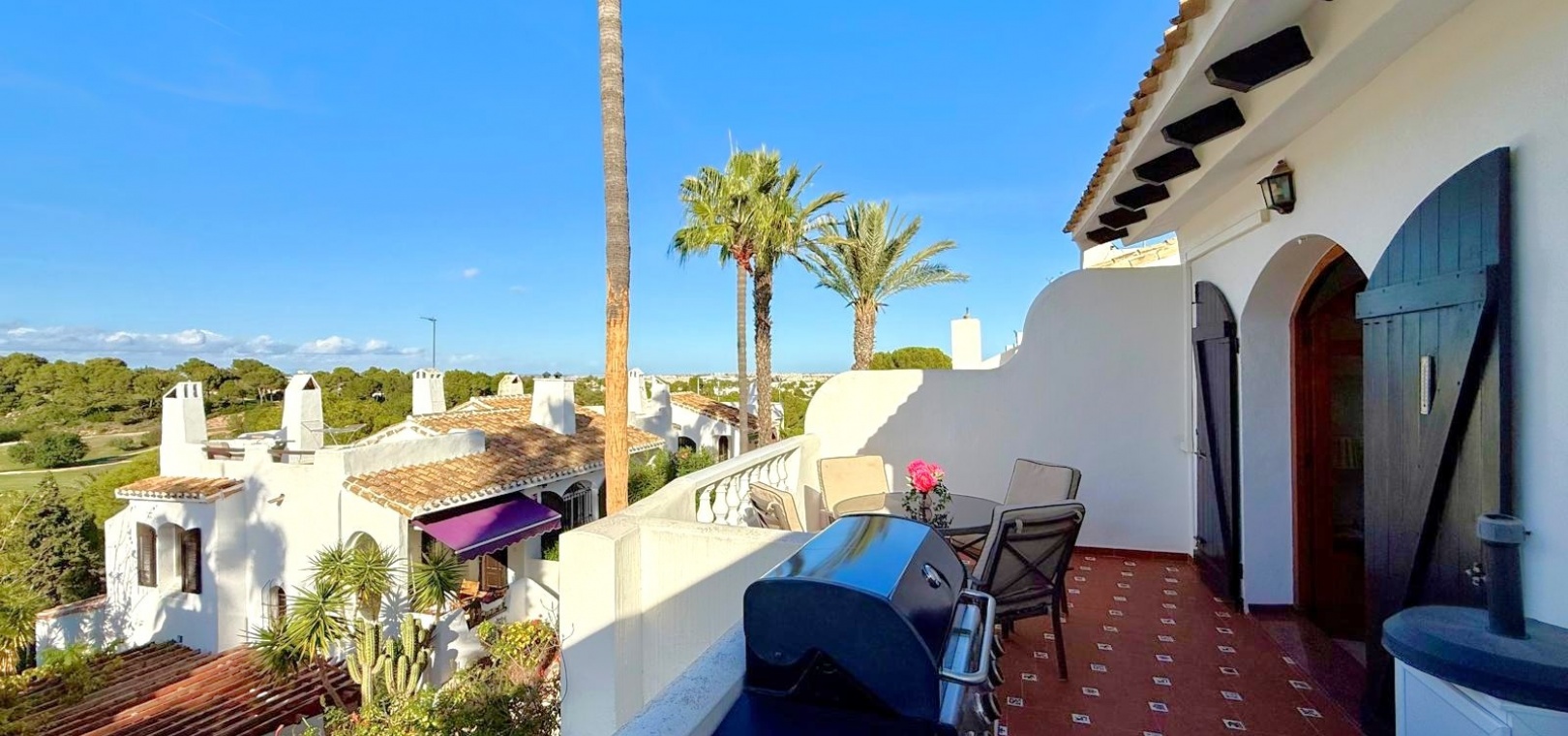 L'un des atouts majeurs de la propriété est son solarium, un espace de détente offrant une vue imprenable sur les environs, notamment la mer et le golf de Villamartin. Parmi les autres espaces extérieurs, on trouve une terrasse de petit-déjeuner exposée à l'est, idéale pour profiter du soleil matinal, et un balcon surplombant le golf et offrant un panorama exceptionnel.