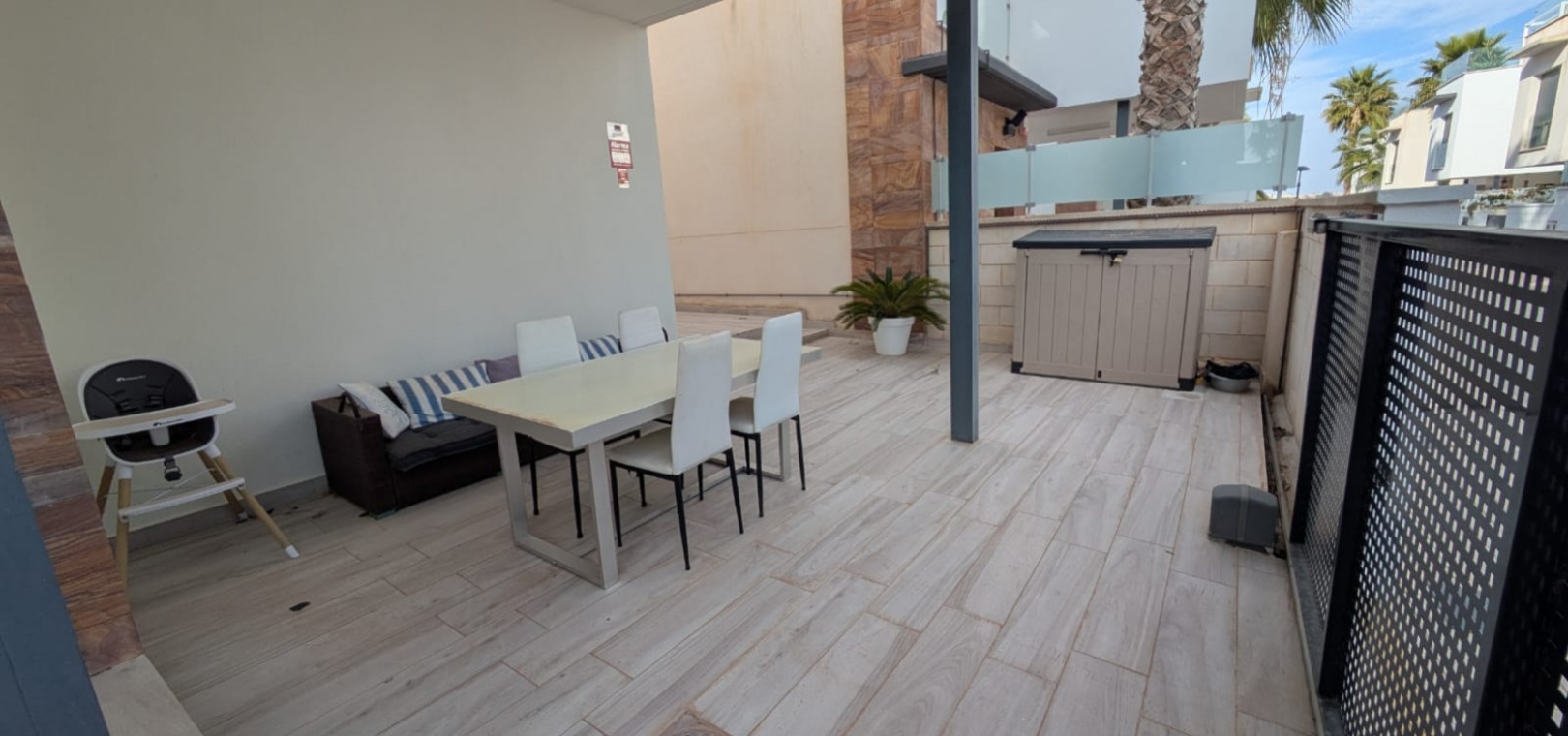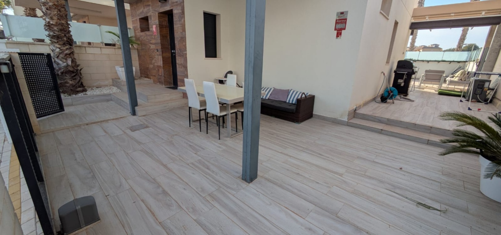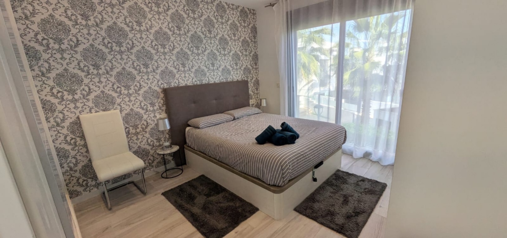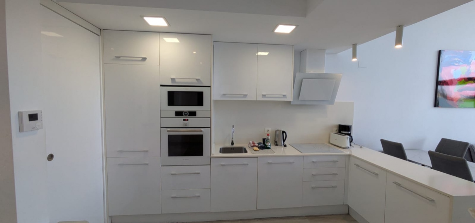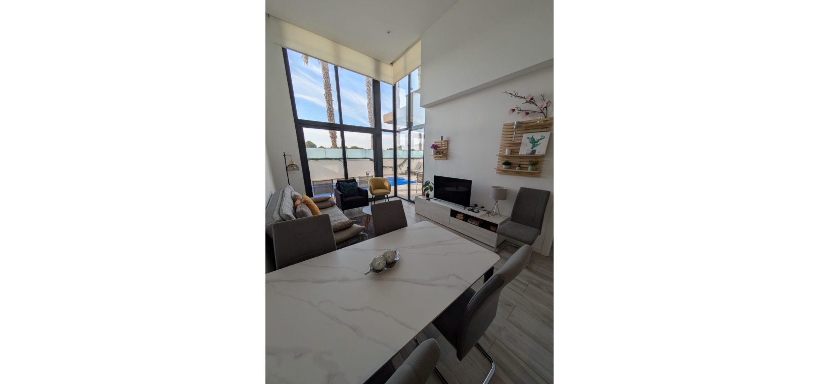 Cette propriété comprend trois chambres spacieuses et deux salles de bains élégantes, idéales pour les familles ou ceux qui recherchent plus d'espace. Le séjour et la salle à manger impressionnent par leurs hauts plafonds et leurs grandes fenêtres qui inondent l'espace de lumière naturelle, créant une atmosphère lumineuse et accueillante.