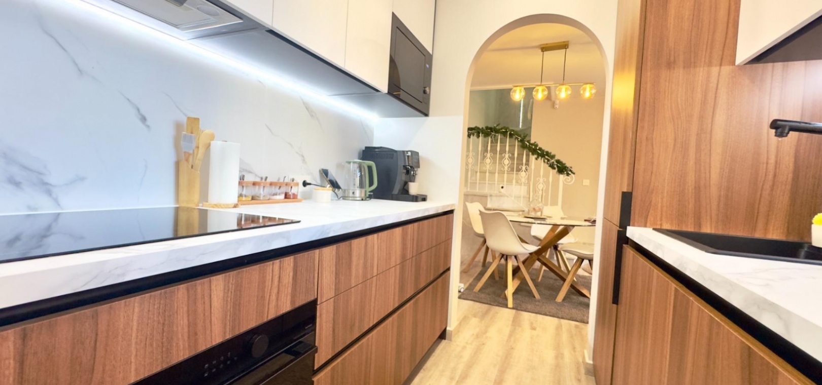 La maison est répartie sur deux étages et a été rénovée avec des matériaux de haute qualité, offrant un cadre de vie confortable et moderne, prête à être habitée immédiatement.