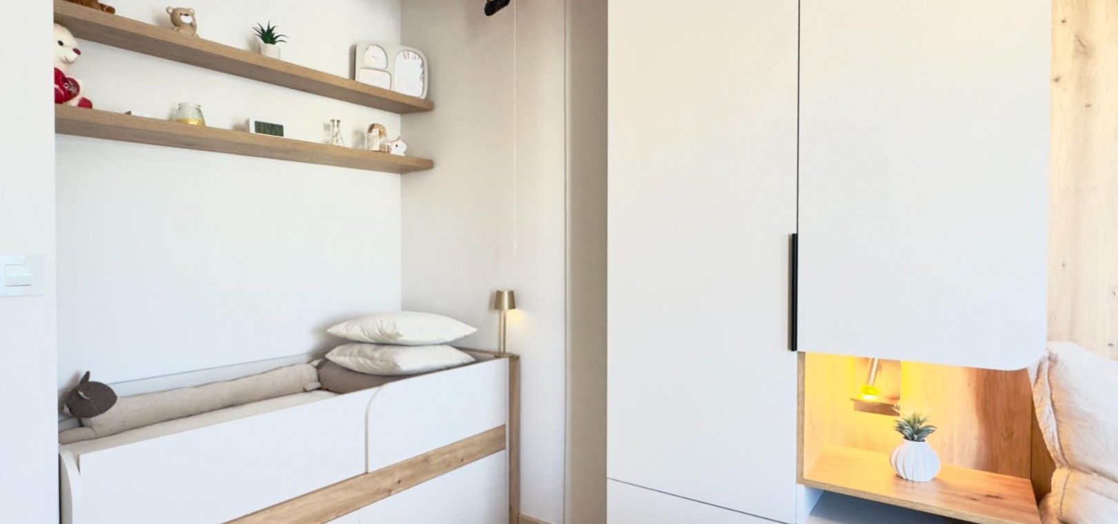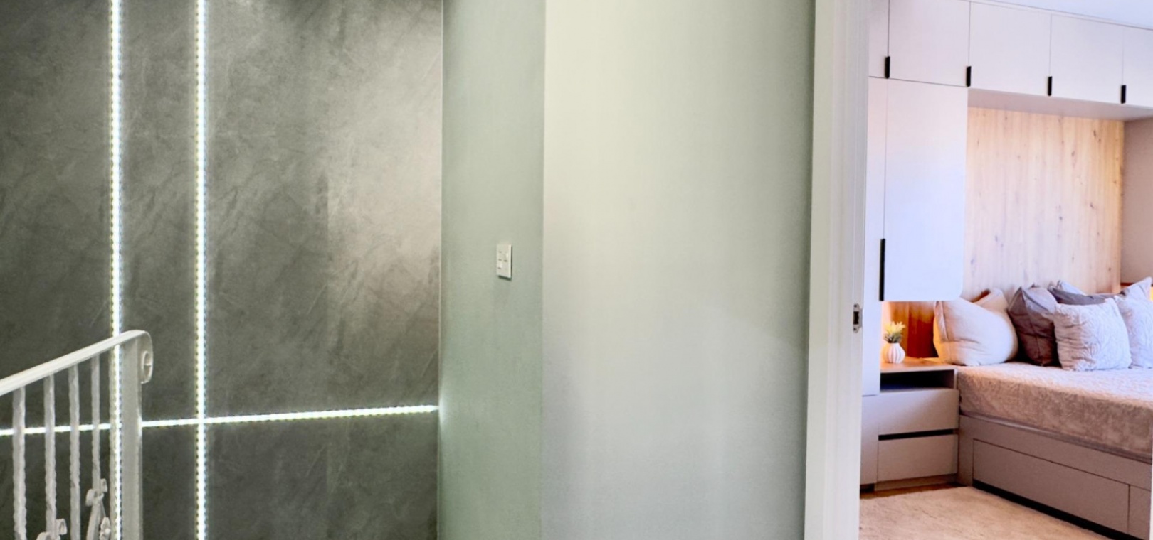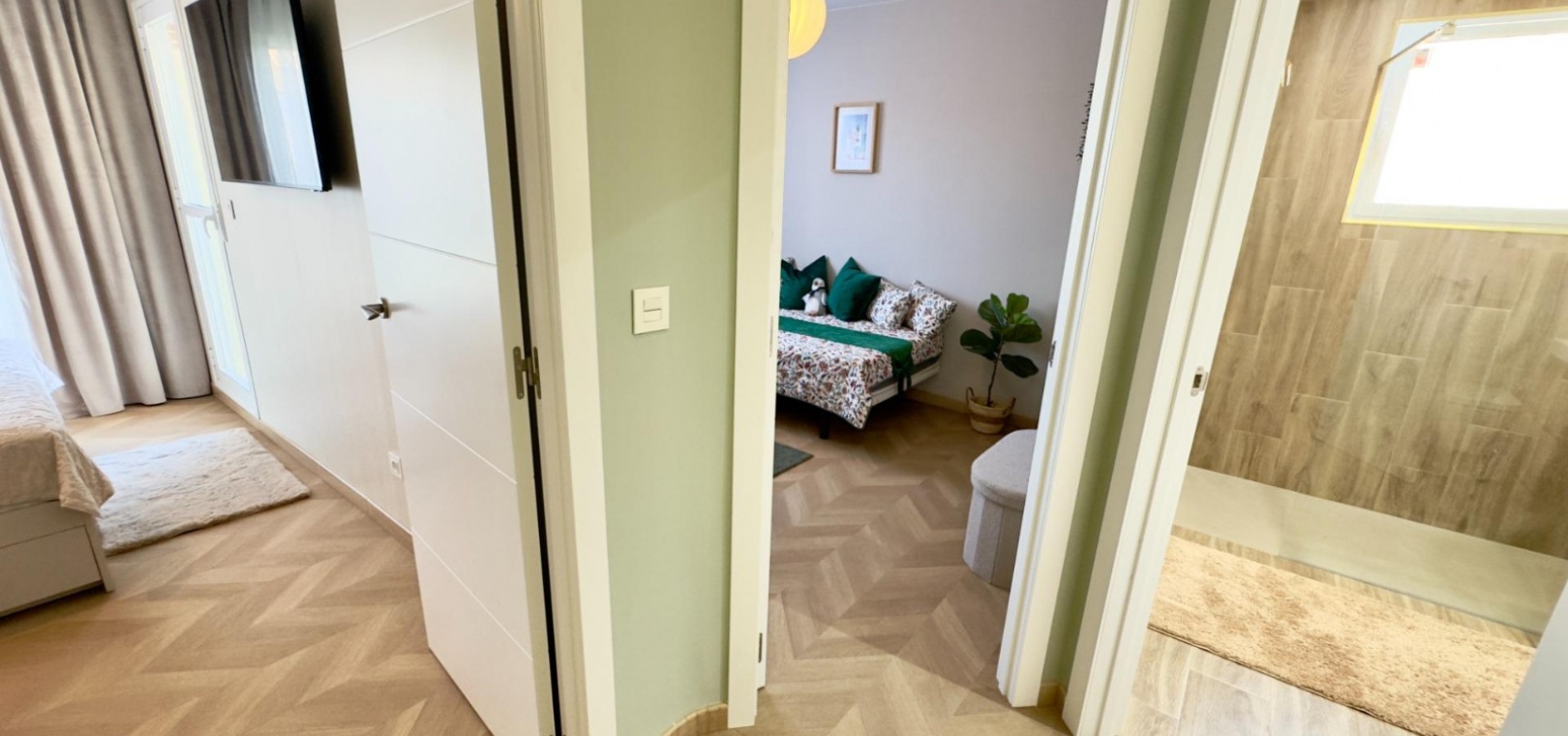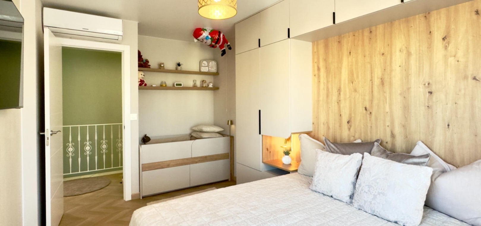 Au rez-de-chaussée, la propriété comprend un salon accueillant, une cuisine aménagée sur mesure avec placards et cellier intégrés, une chambre et une salle de bains. À l'étage, on trouve la suite parentale avec accès à un balcon privatif de 6,56 m², une deuxième chambre et une seconde salle de bains. Toutes les salles de bains bénéficient d'un chauffage au sol, garantissant un confort optimal en toute saison.