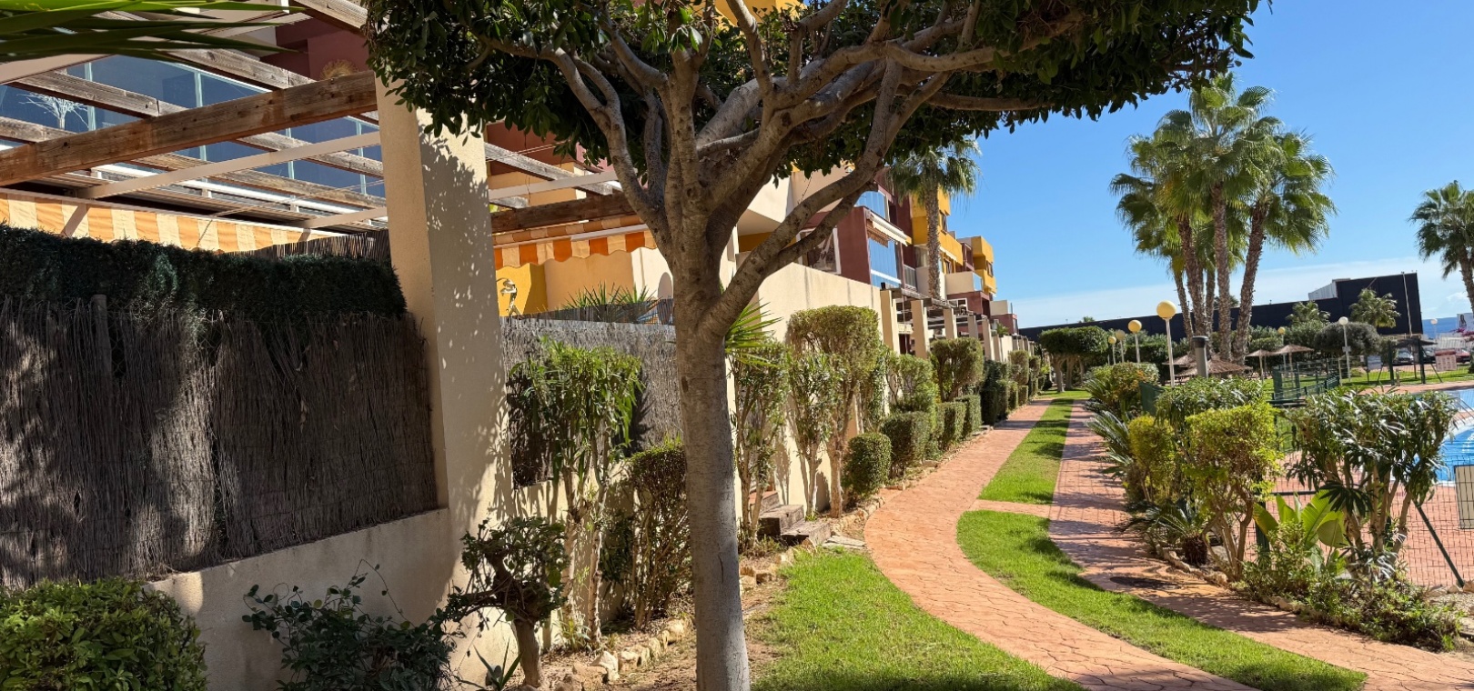 Le complexe comprend des jardins magnifiquement entretenus et une piscine commune dont les résidents peuvent profiter.