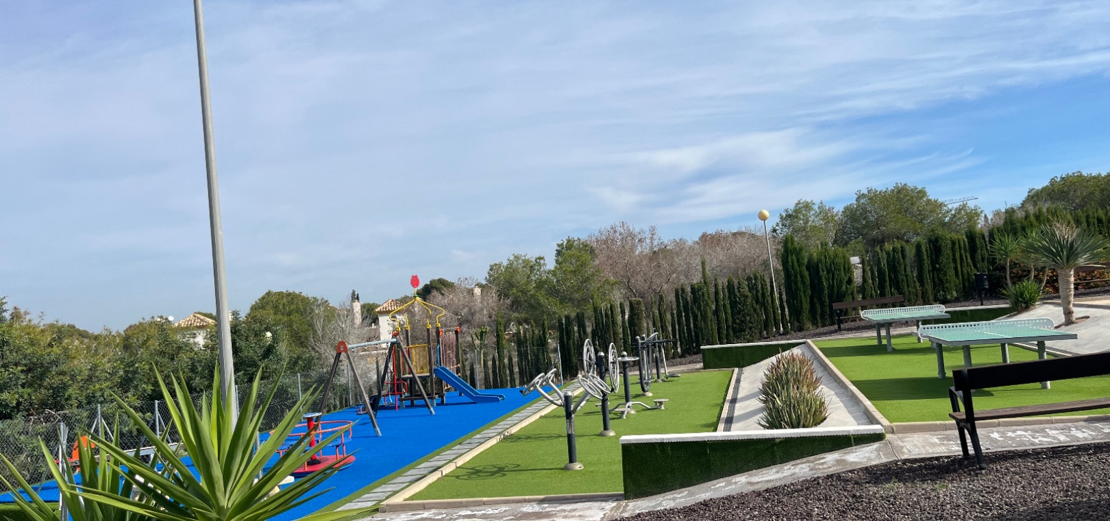 Grands espaces verts avec équipements de fitness en plein air, terrain de pétanque et aire de jeux pour enfants Activités hebdomadaires incluant des cours d'art, des jeux de société, des échanges de livres et un café-rencontre