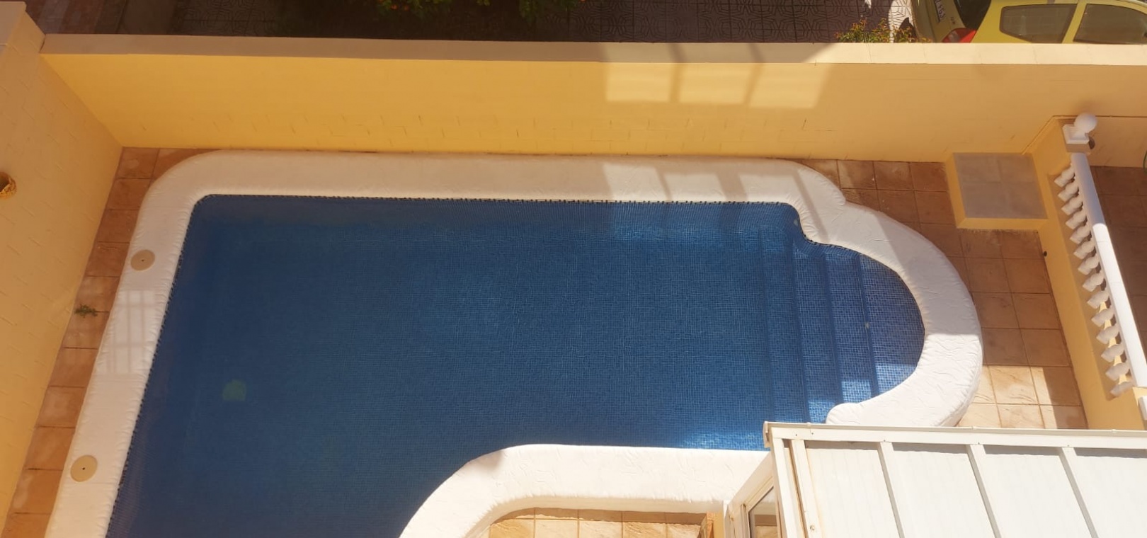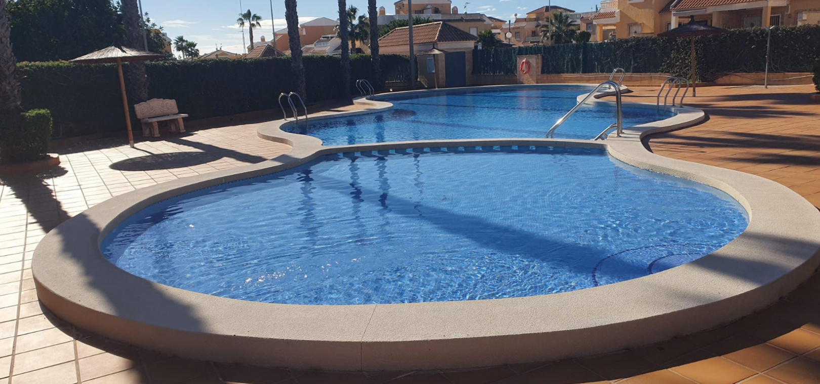 3 chambres doubles au premier étage Chambre principale avec placards intégrés et balcon vitré Salon/salle à manger lumineux avec accès direct à une terrasse vitrée à l'avant. Cuisine aménagée séparée 1,5 salle de bain – salle de bain familiale à l'étage et toilettes pour invités au rez-de-chaussée Solarium privé spacieux , partiellement vitré, Jardin carrelé avec piscine privée Accès à une piscine commune au sein du complexe résidentiel Parking hors route