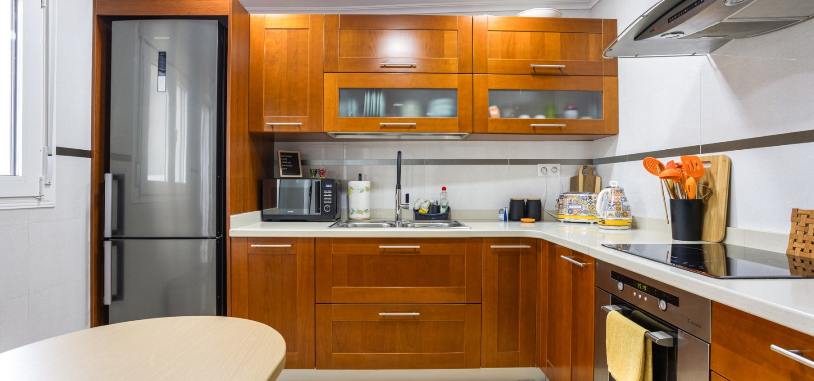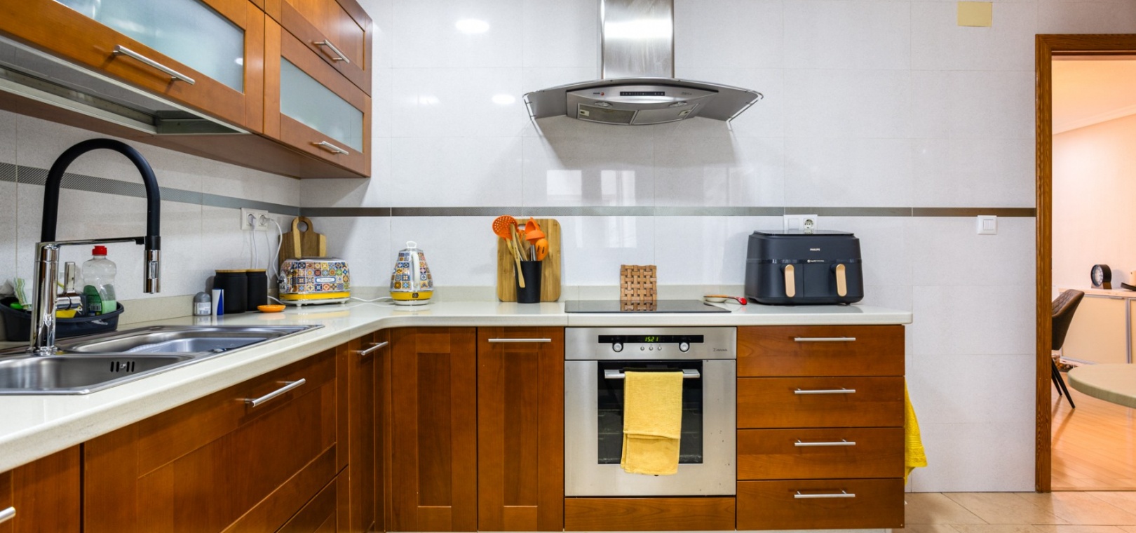 La cuisine séparée, entièrement équipée, présente un design pratique et moderne, tout comme la buanderie indépendante, pour un confort et une organisation optimaux au quotidien.