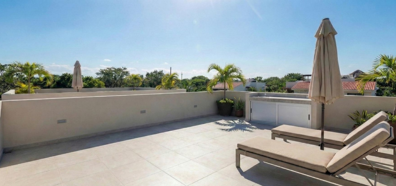 Les acheteurs peuvent choisir entre des appartements au rez-de-chaussée avec 3 chambres et 2 salles de bains, dont une en suite, avec une terrasse à l'avant et un jardin privé à l'arrière avec cuisine d'été. Les appartements au dernier étage offrent quant à eux 2 chambres et 2 salles de bains, dont une en suite, une terrasse à l'avant et un grand solarium privé avec cuisine d'été, parfait pour profiter du soleil toute l'année. Chaque agencement a été soigneusement conçu pour maximiser la vie en plein air et la lumière naturelle.