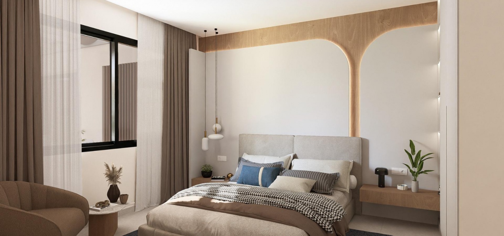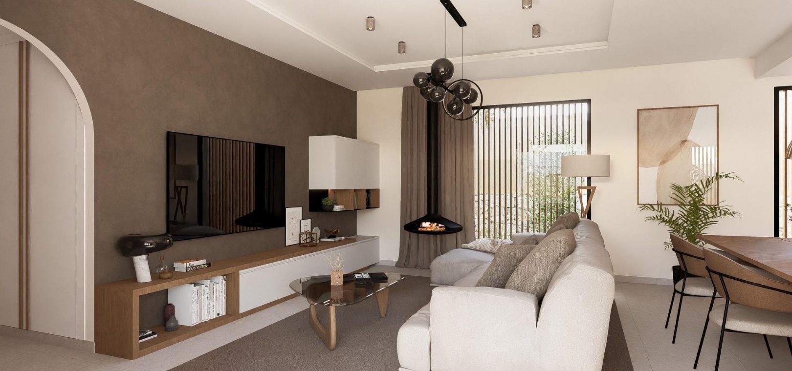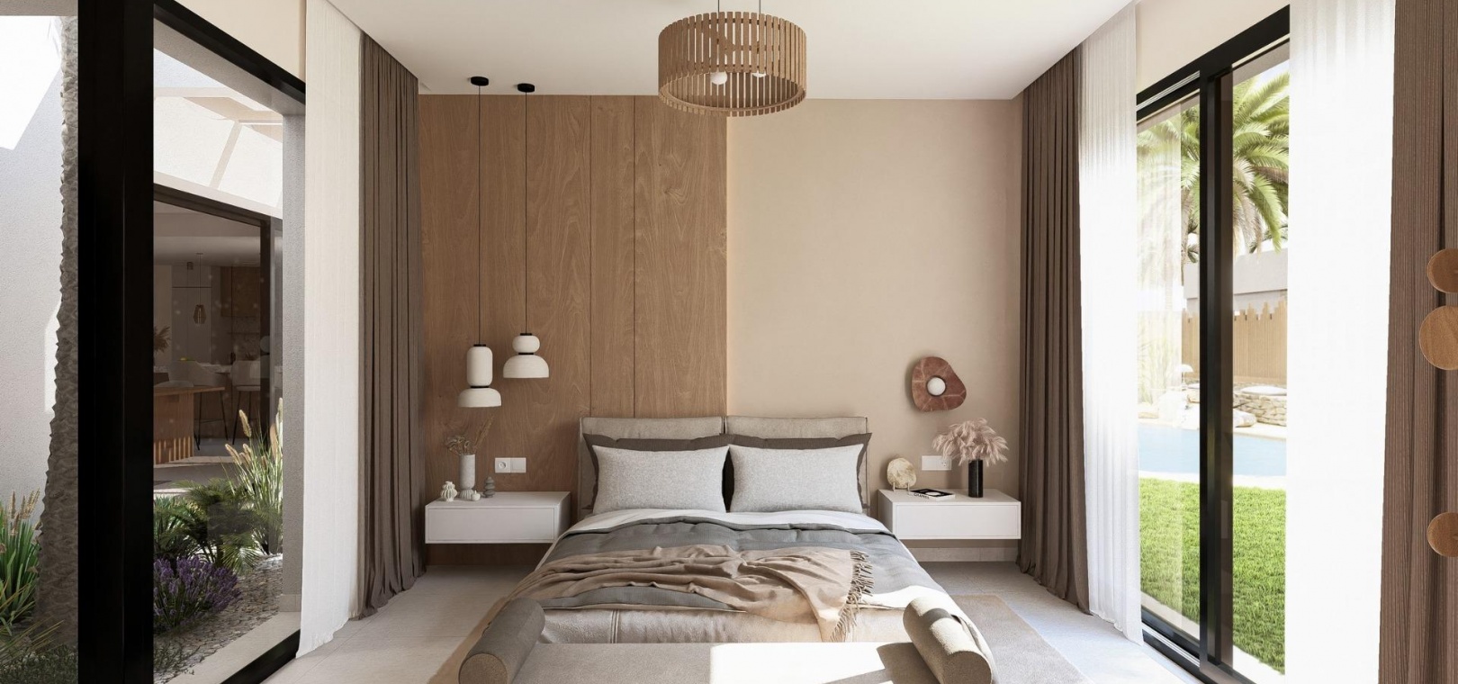 Ces élégantes villas sont conçues de plain-pied pour un maximum de confort et de fonctionnalité. Les acheteurs peuvent choisir entre 2, 3 ou 4 chambres et 2 ou 3 salles de bains, plus des toilettes pour invités. Chaque maison dispose d'une cuisine ouverte et d'un salon qui communiquent directement avec la terrasse extérieure et le jardin paysager privé avec piscine. Une place de parking privée est incluse dans la parcelle, garantissant commodité et intimité.