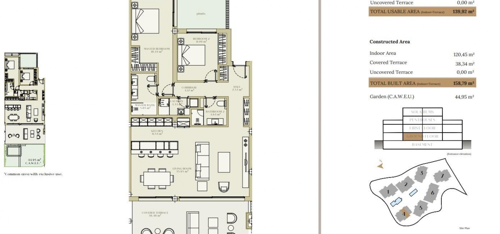 Le projet se compose de sept bâtiments élégants, de trois étages chacun, soigneusement positionnés pour maximiser les vues sur la mer et la lumière naturelle. Les appartements sont disponibles en configurations de 2, 3 et 4 chambres, avec des intérieurs magnifiquement conçus et des finitions de haute qualité. Les unités du rez-de-chaussée disposent de vastes jardins privés, tandis que les penthouses sont dotés de solariums et de piscines privés. Tous les appartements sont équipés de cuisines modernes Modulnova, alliant style et fonctionnalité.