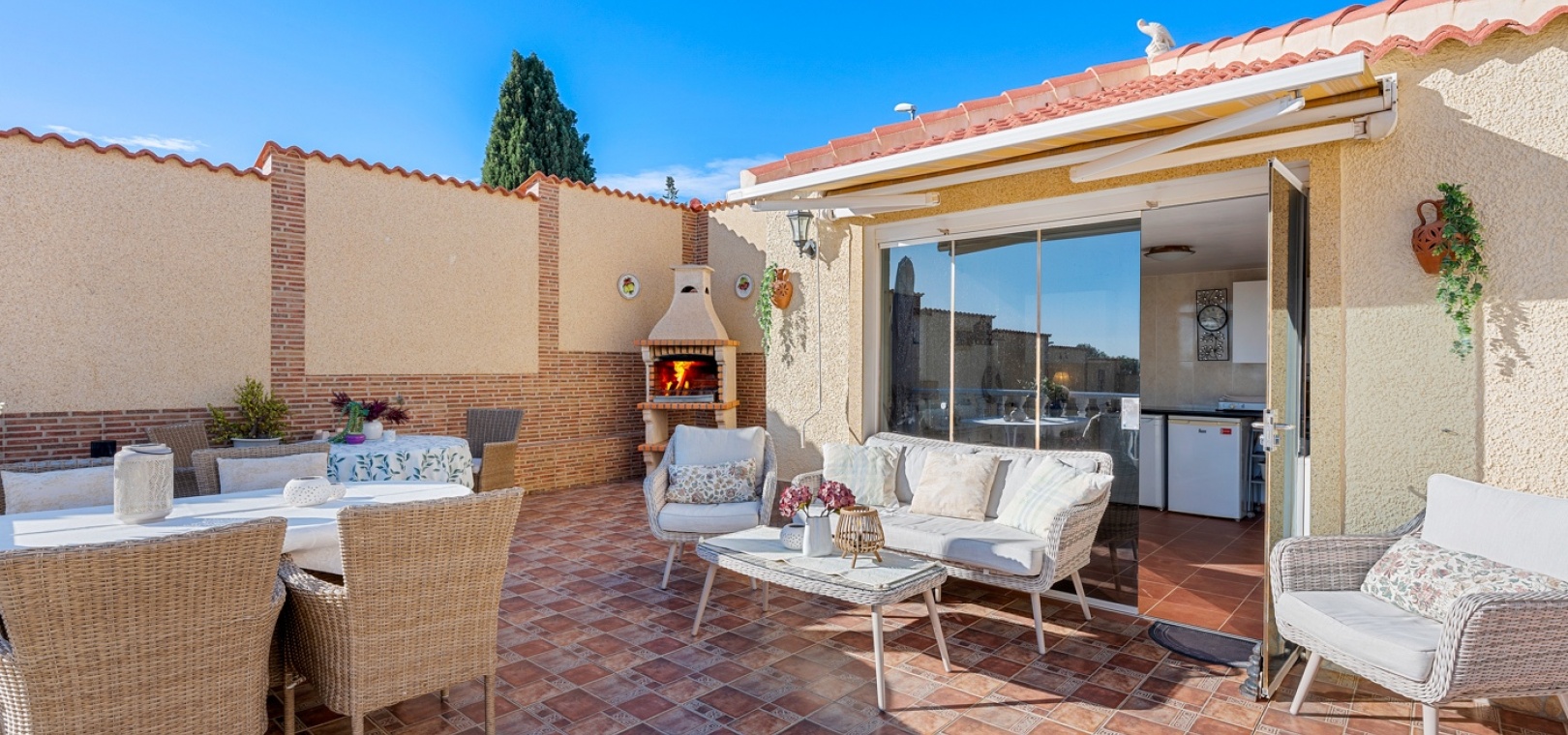 À l’extérieur, la propriété révèle tout son charme : piscine privée, douche extérieure, espace barbecue et plusieurs terrasses conçues pour en profiter toute l’année. Un grand solarium bénéficie d’un ensoleillement permanent, tandis que les stores offrent de l’ombre pendant les mois les plus chauds. Le jardin privé paysagé et le parking sur la parcelle assurent confort et intimité.