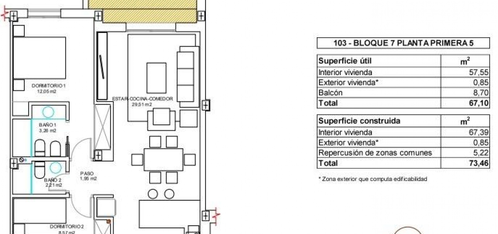 Construit: 73m2