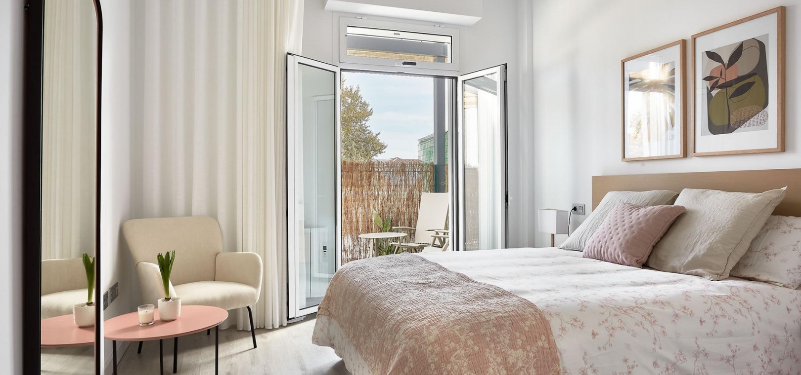 Les typologies sont rez-de-chaussée avec deux jardins privés, un dans chaque orientation, ce qui vous permet de profiter du soleil ou de l'ombre quand vous le souhaitez selon l'heure de la journée ou la saison de l'année. Les premiers étages disposent de terrasses et les penthouses de grands solariums.