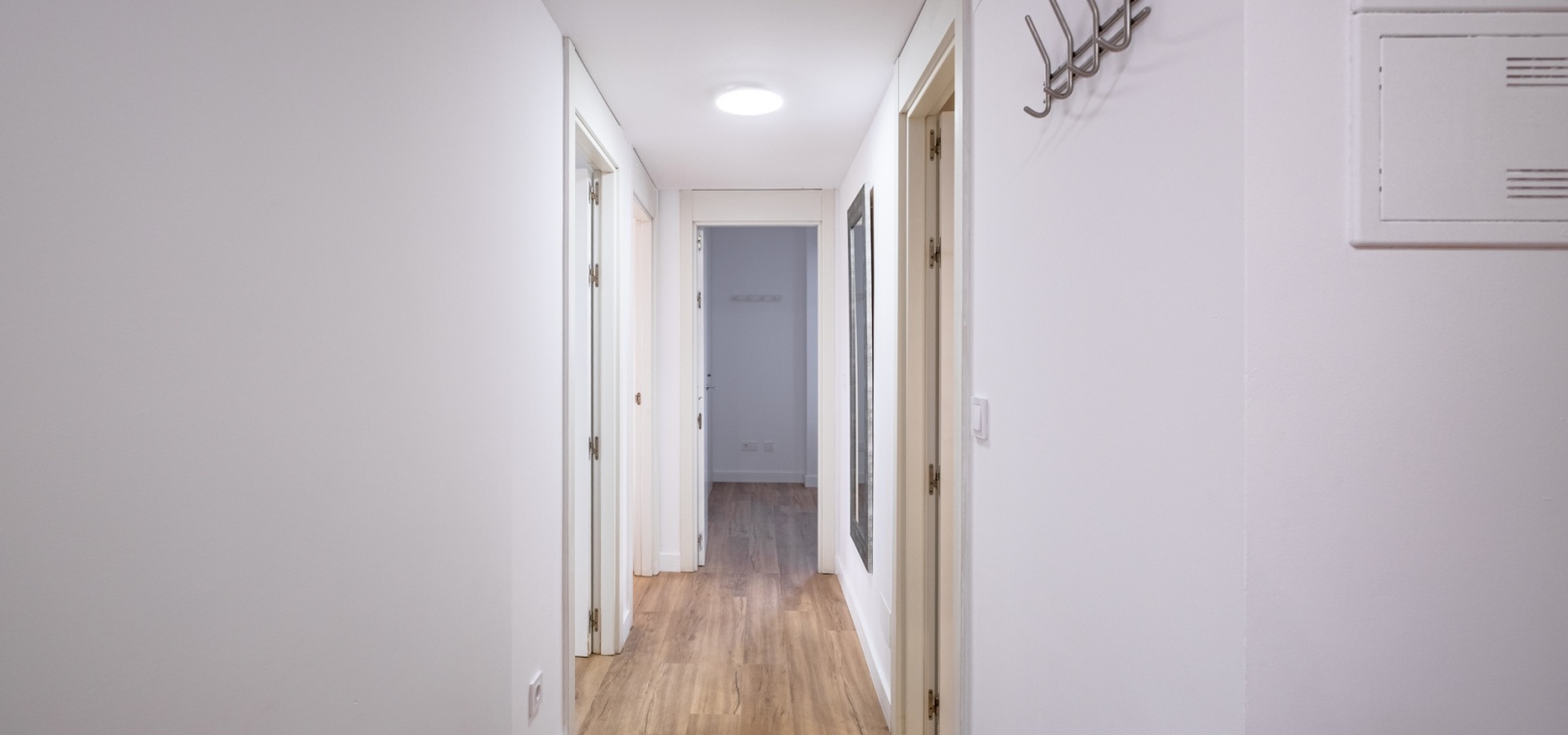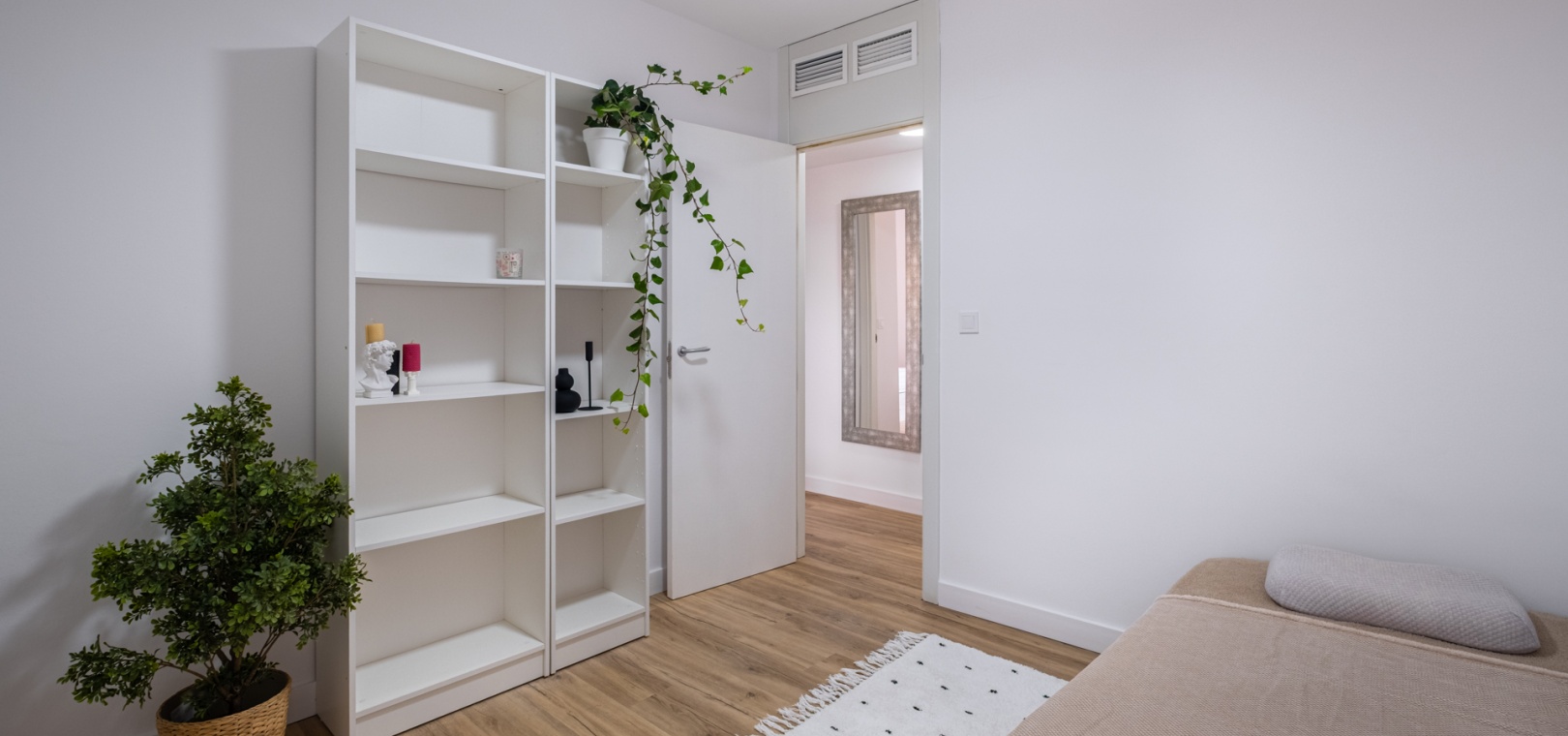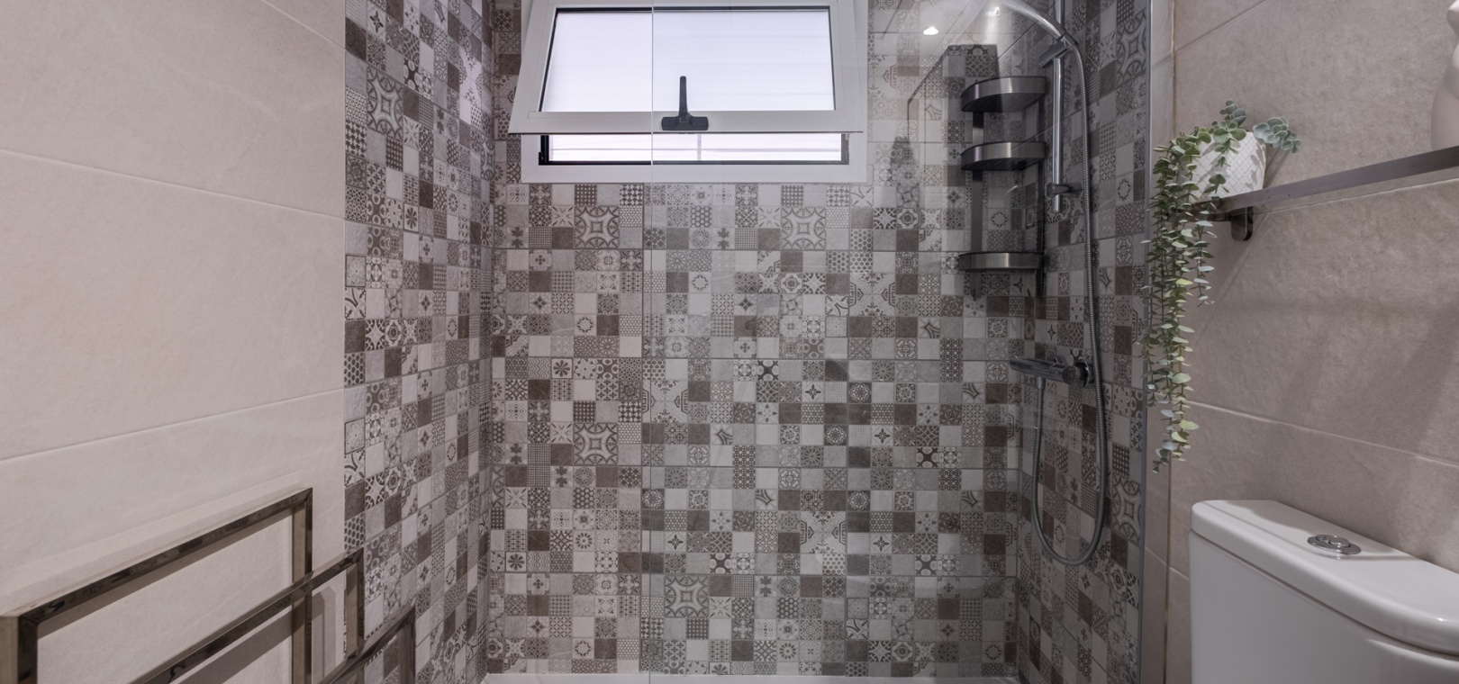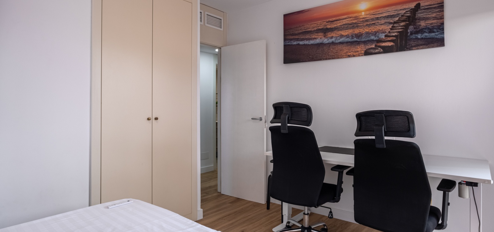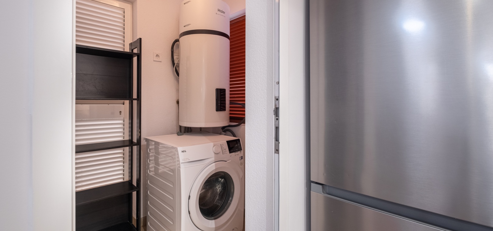 Ce bien comprend trois chambres spacieuses et deux salles de bains modernes, dont une attenante à la chambre principale. Une buanderie séparée offre un confort supplémentaire. Un parking privé juste devant l'entrée, ainsi que deux espaces de rangement sécurisés à côté de l'appartement, garantissent un confort exceptionnel et un espace de rangement appréciable.