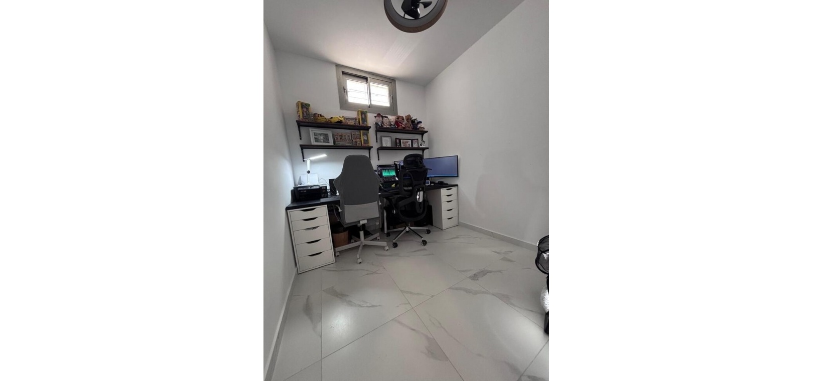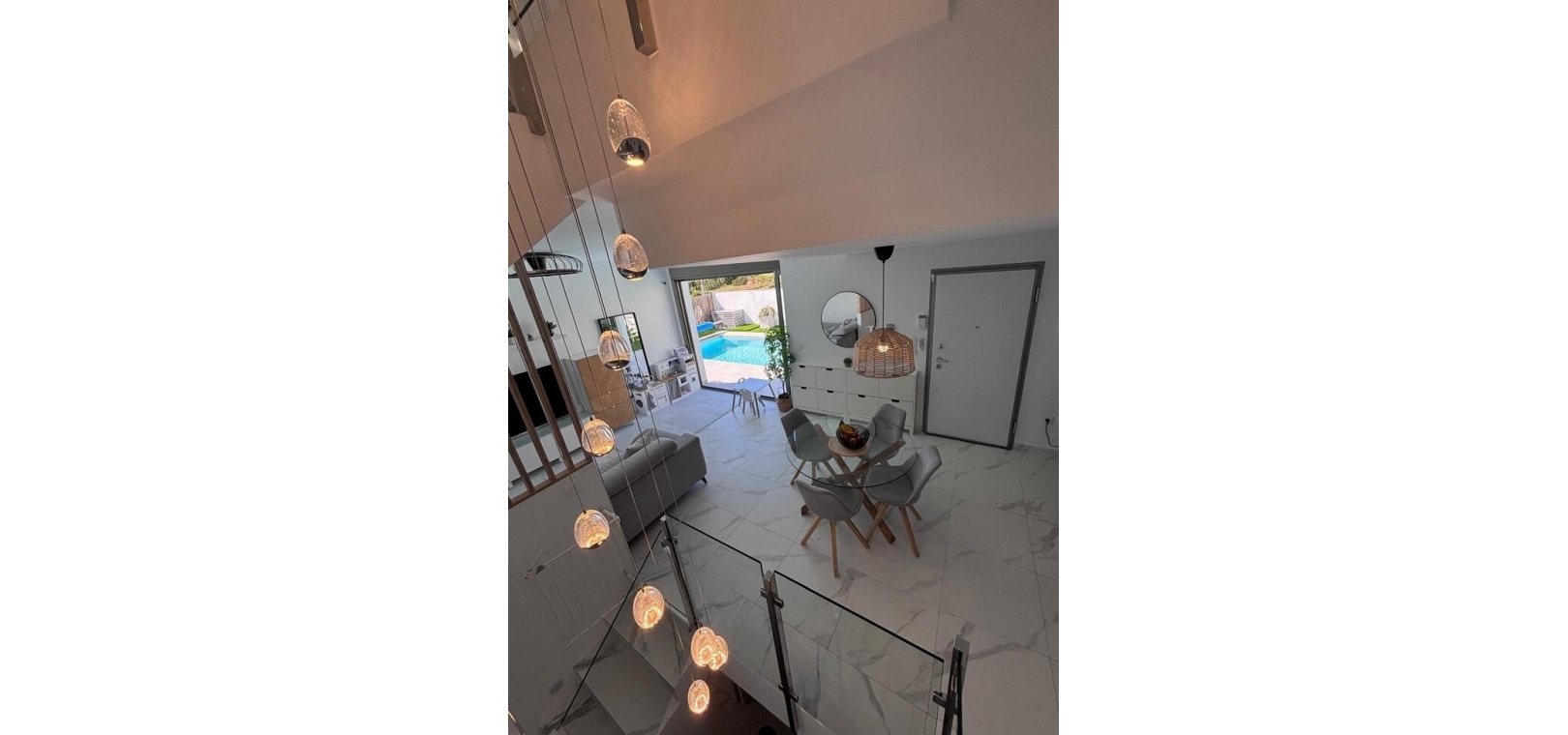 À l'extérieur, le jardin paysager invite à la détente et au style de vie méditerranéen. Une piscine privée est agrémentée de terrasses ensoleillées et d'espaces ombragés, parfaits pour se relaxer ou recevoir des invités. Une aire de jeux dédiée aux enfants rend cette maison particulièrement attrayante pour les familles.