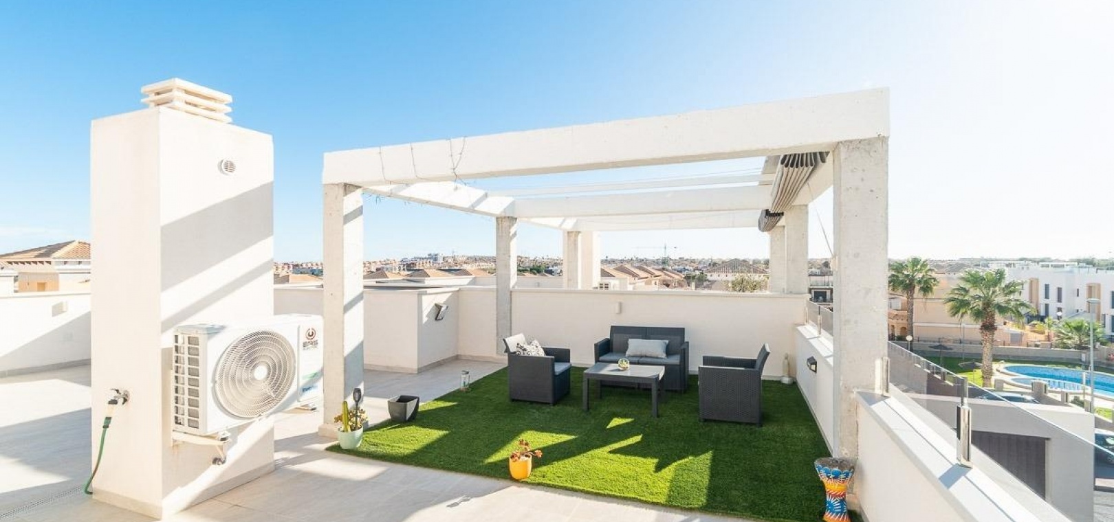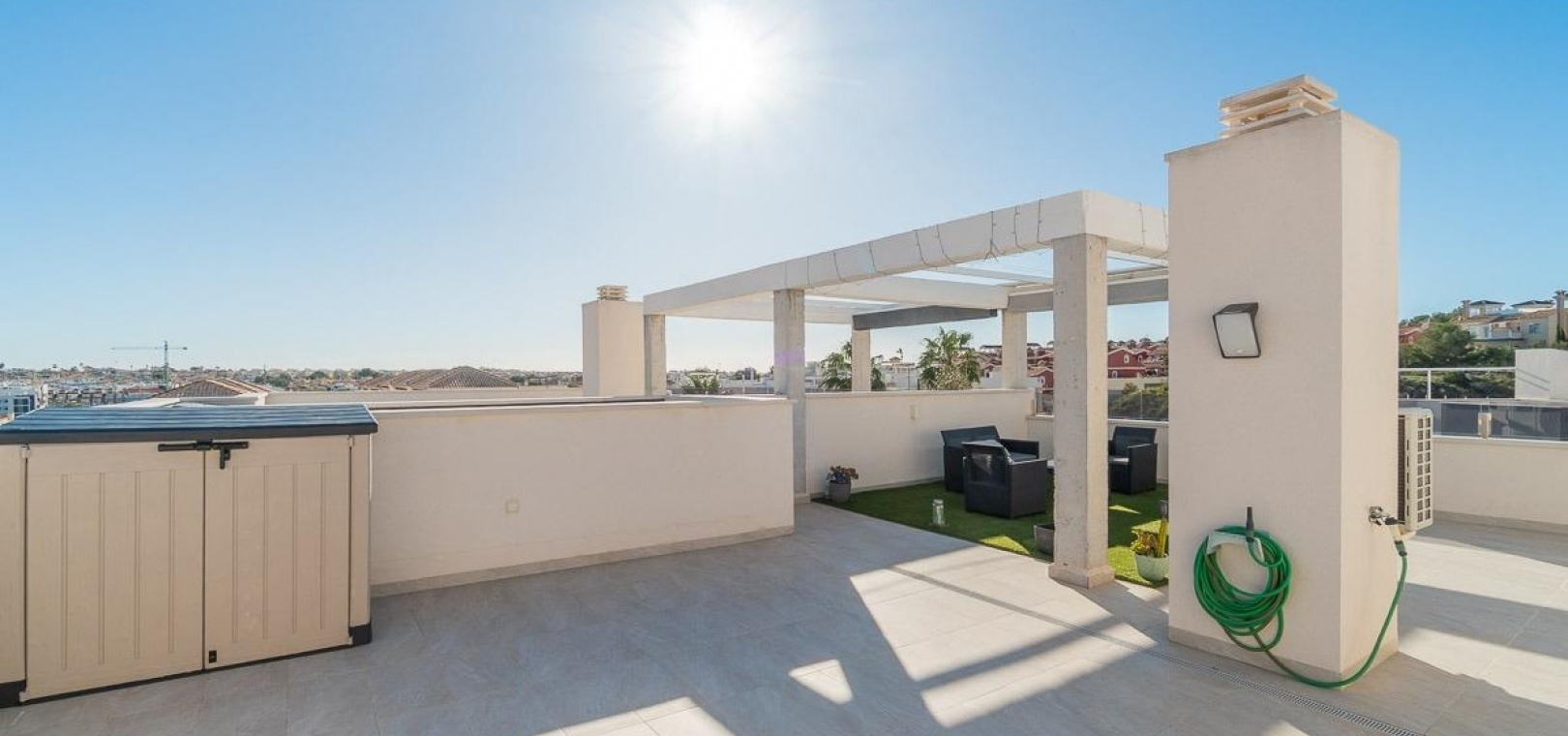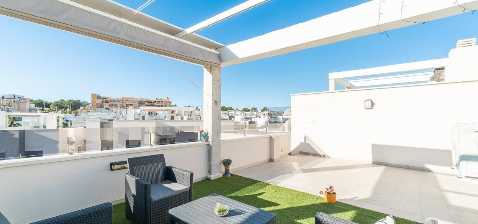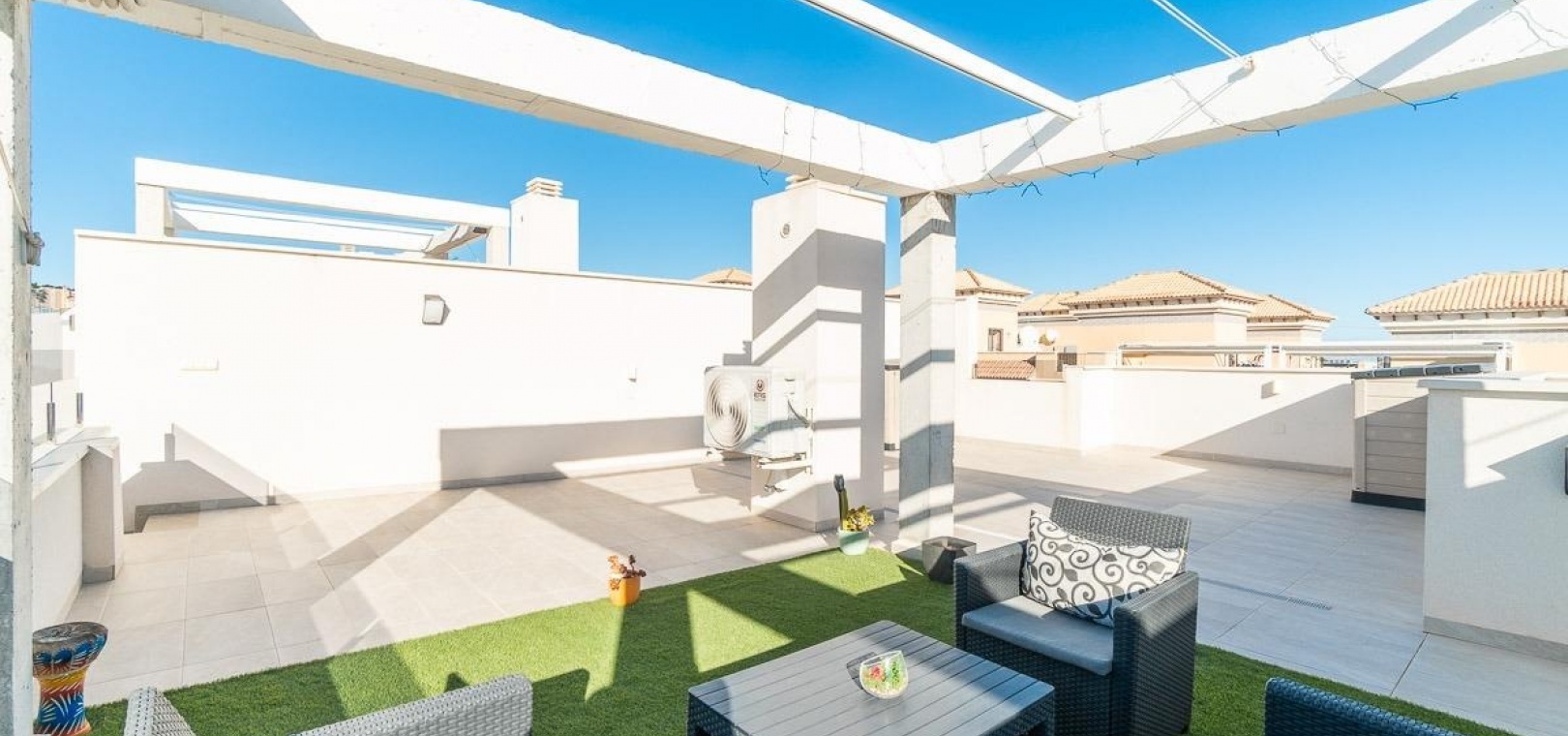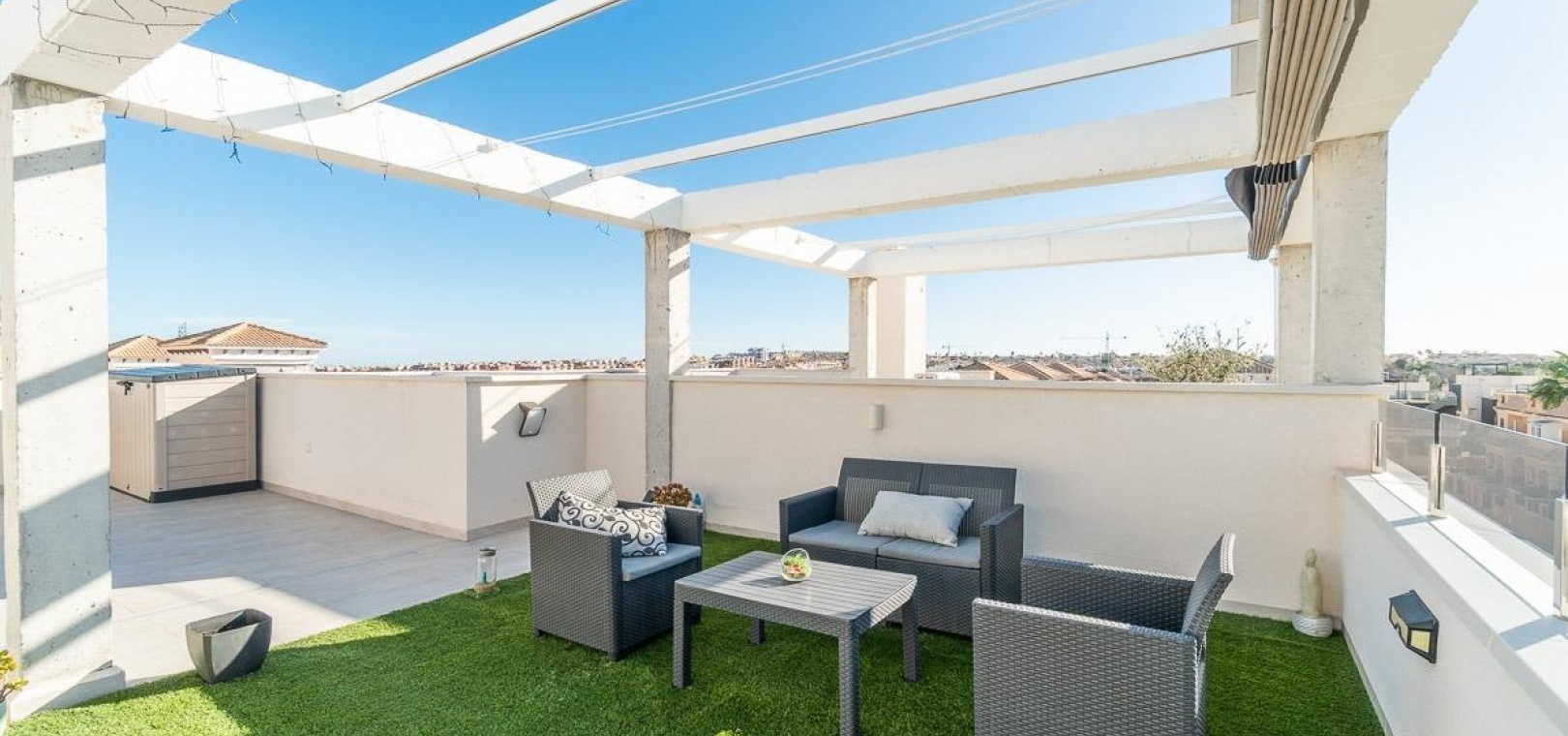 L'un des atouts majeurs est l'impressionnant solarium privé sur le toit, offrant un vaste espace extérieur idéal pour se détendre, recevoir des invités ou créer son propre espace de détente tout en profitant du climat méditerranéen.