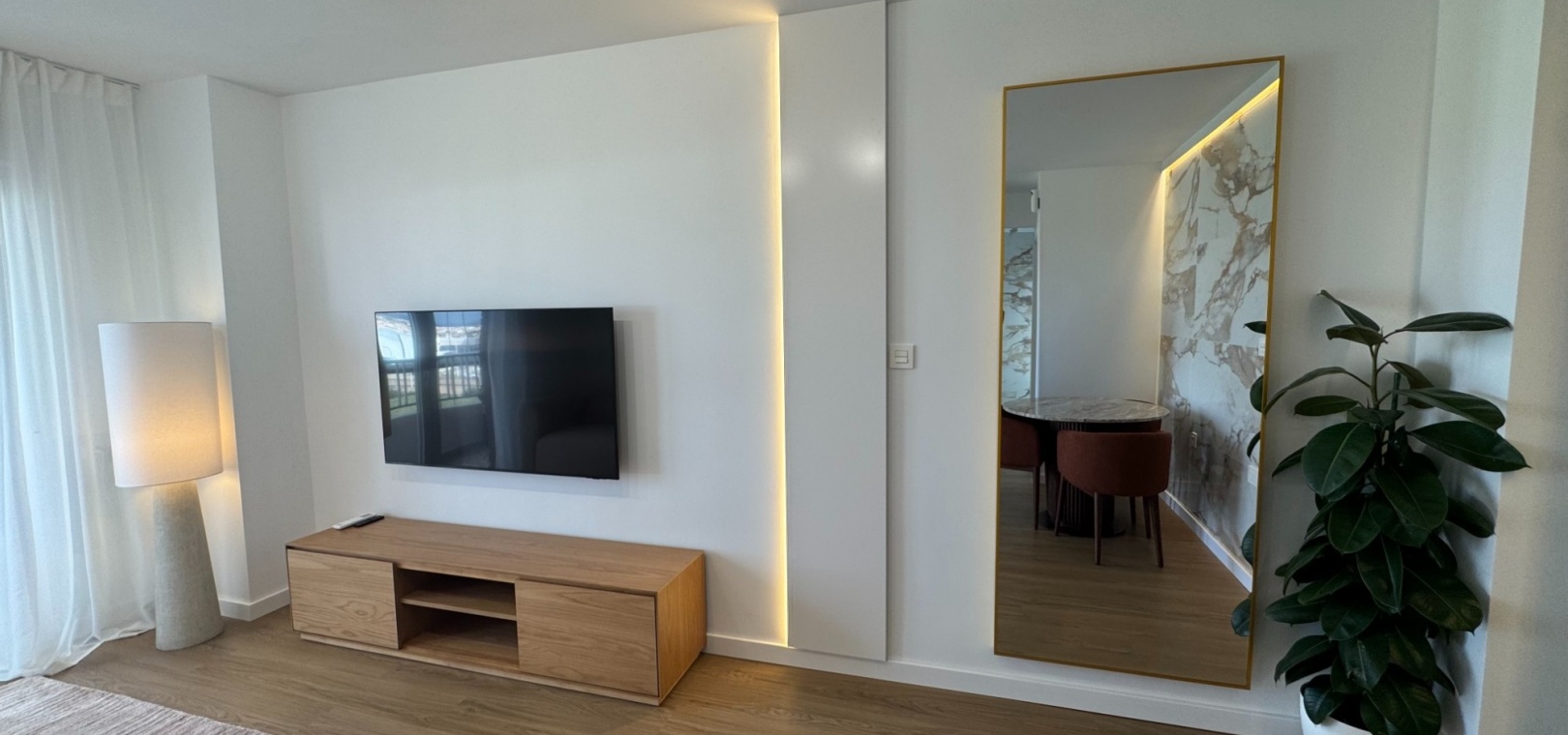 2 chambres spacieuses, 1 salle de bain moderne Appartement d'angle avec vue panoramique sur la mer et la ville Grande terrasse avec accès direct depuis toutes les chambres Entièrement meublé et prêt à emménager Cuisine moderne avec électroménager, plaque à induction Climatisation Inverter, contrôlée par Wi-Fi Ascenseur, parking commun sécurisé, piscine commune Licence de location touristique incluse Rénovation de la façade déjà payée