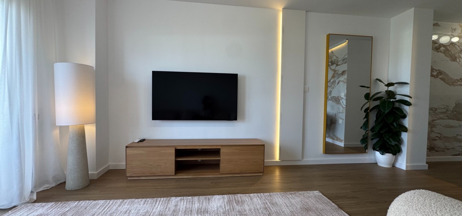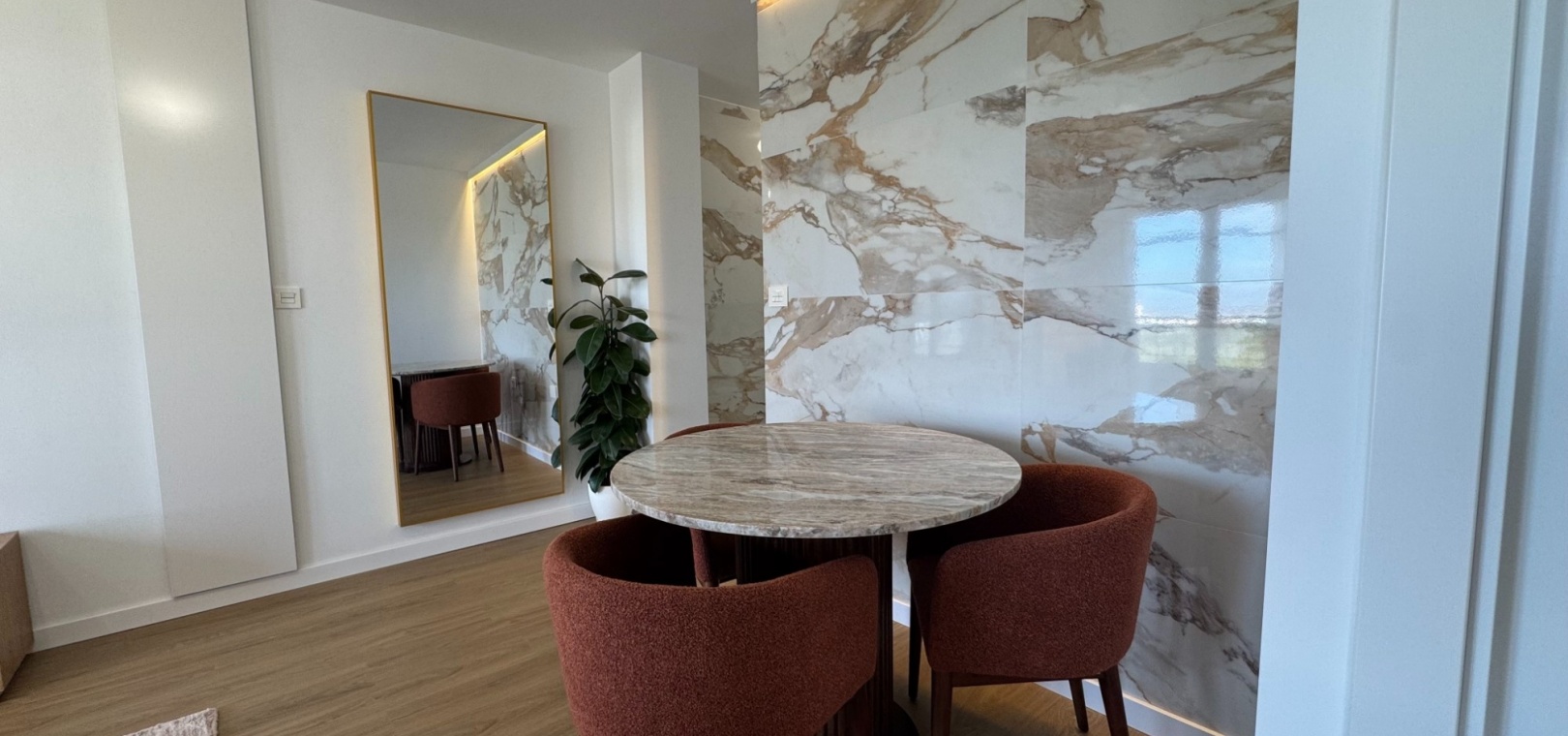 Cet appartement a été rénové avec soin et un souci du détail, offrant des finitions de grande qualité, notamment un carrelage en porcelaine grand format, des éléments en pierre naturelle et un mobilier design. La cuisine moderne est équipée d'une plaque à induction, tandis que la climatisation réversible avec contrôle Wi-Fi garantit un confort optimal toute l'année. Parmi les autres atouts, citons une chaudière programmable, un système de sécurité complet et des fenêtres panoramiques à isolation phonique performante.