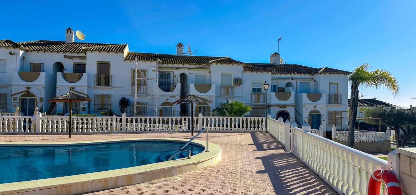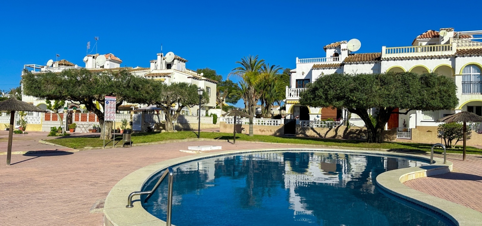Située au sein d'un quartier résidentiel bien entretenu, cette propriété bénéficie d'un environnement paisible, de jardins paysagers et d'un accès à plusieurs piscines communes. Le complexe offre une atmosphère relaxante et de beaux espaces extérieurs.