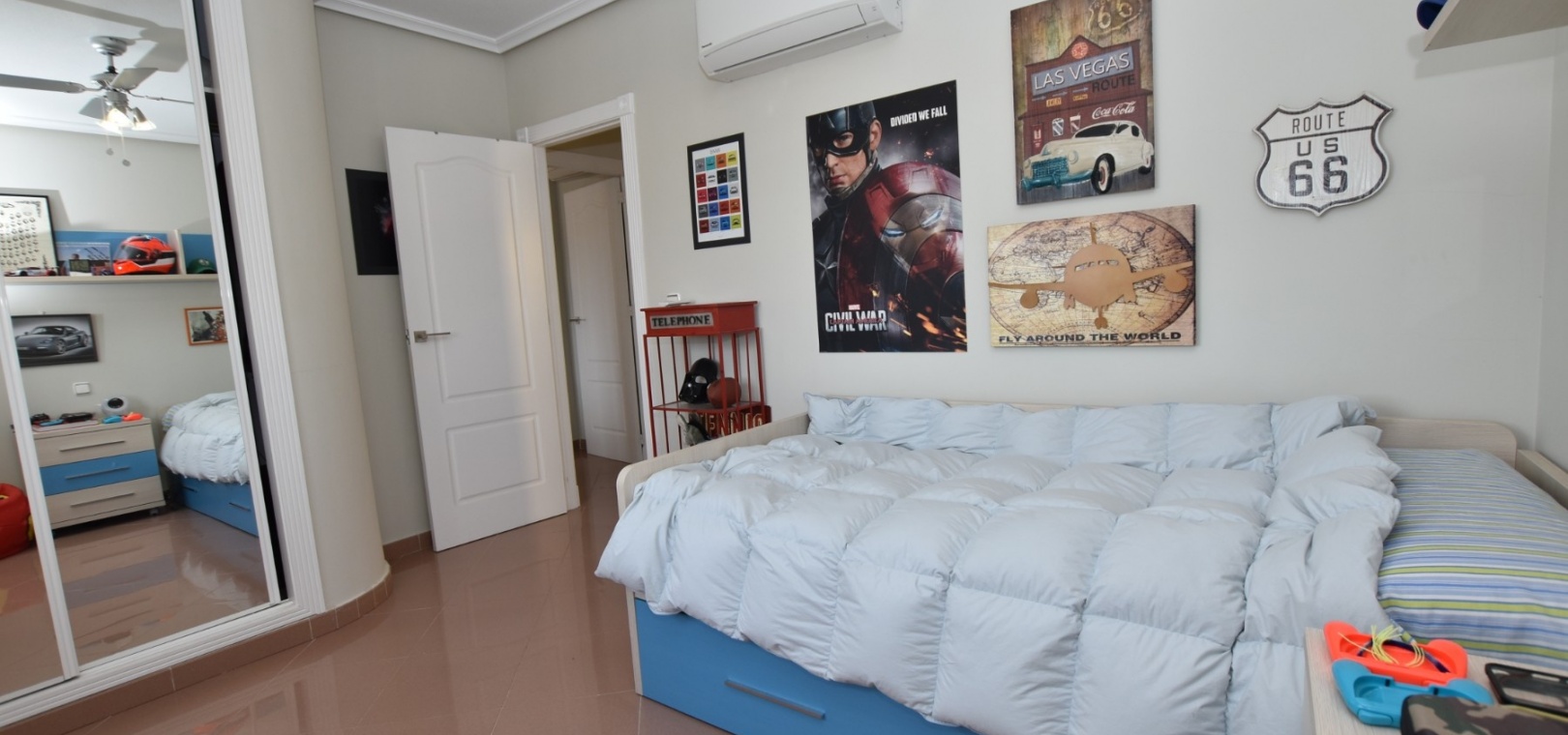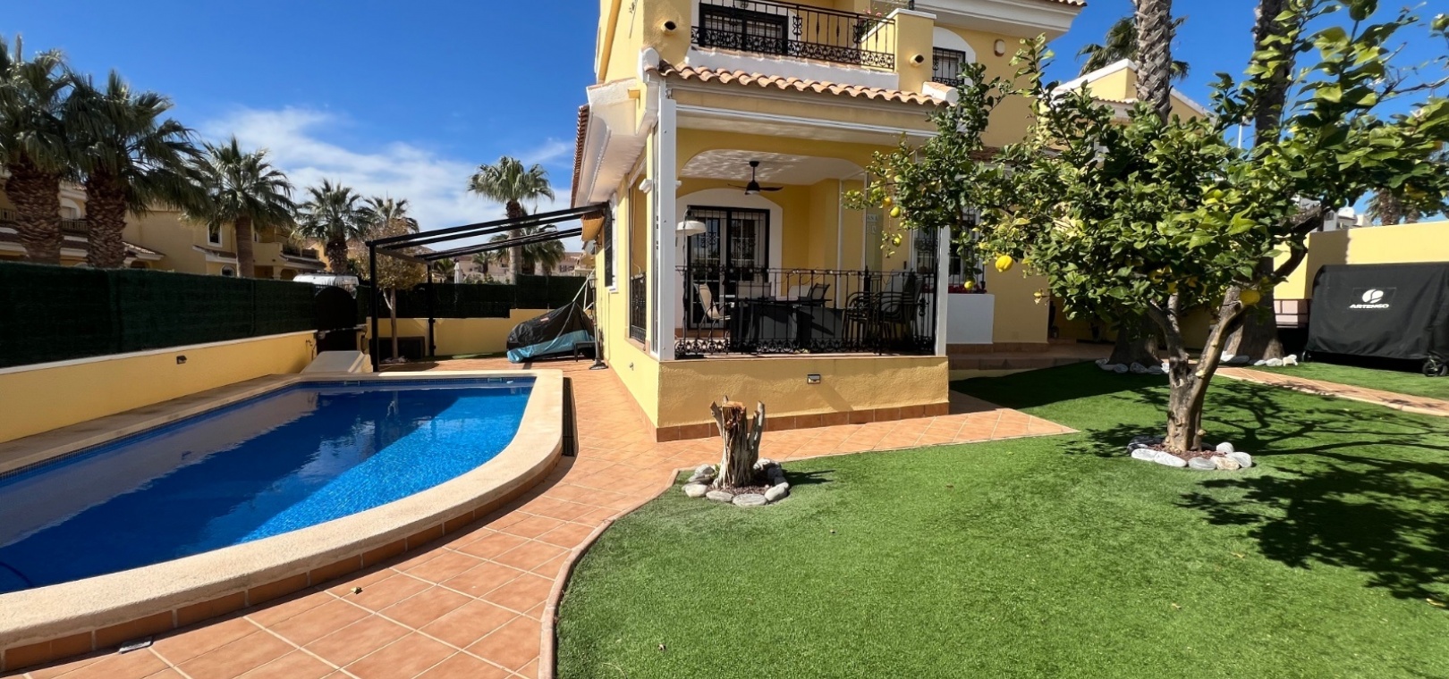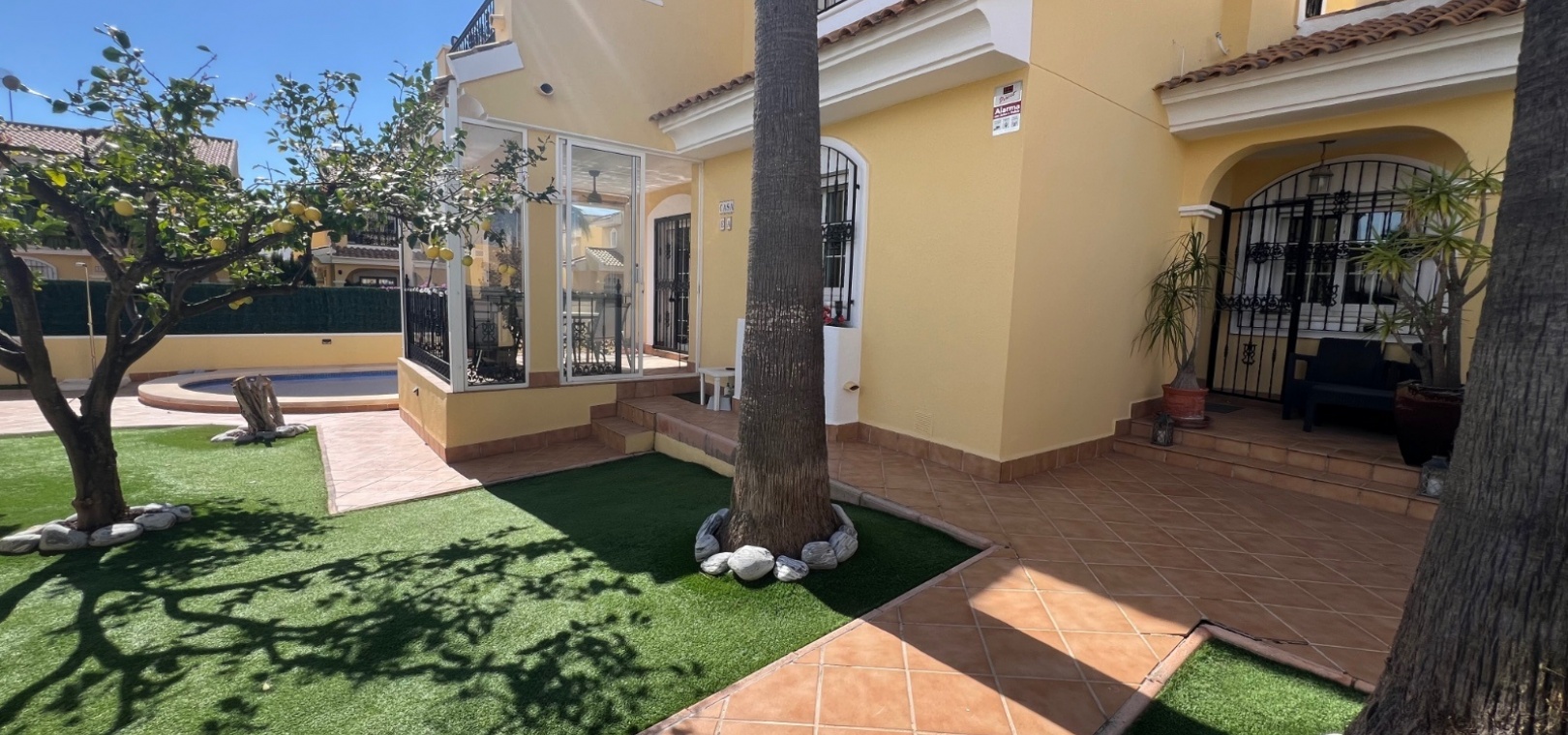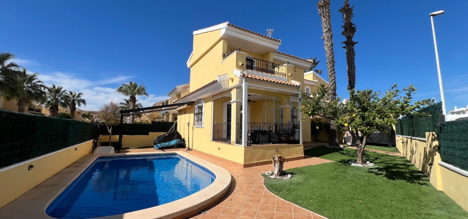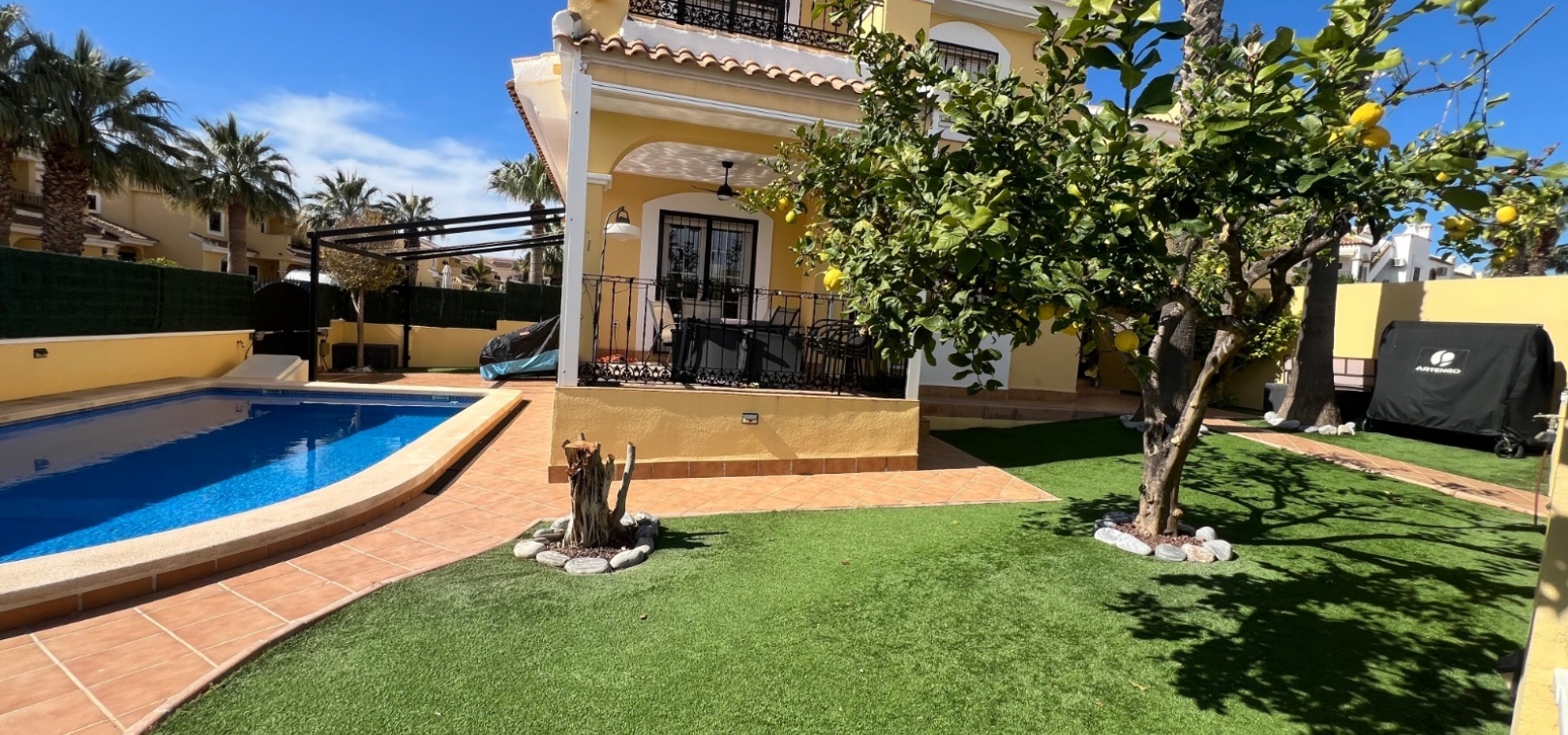 Cette magnifique villa individuelle à Los Dolses bénéficie d'un emplacement idéal sur un terrain d'angle très recherché, dans l'un des meilleurs quartiers du lotissement. Présentée en excellent état, la propriété a été récemment repeinte en extérieur et est prête à être habitée. Elle est équipée d'une climatisation Panasonic neuve.