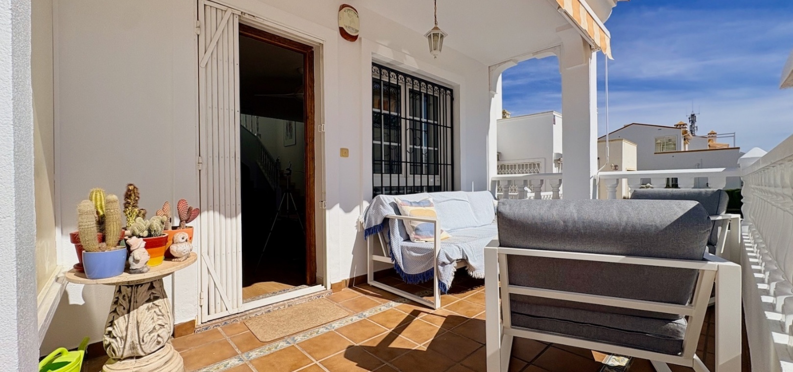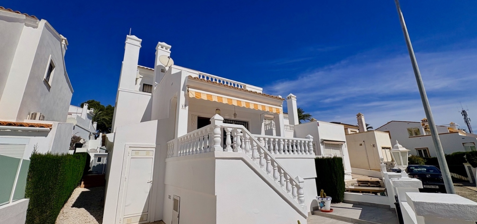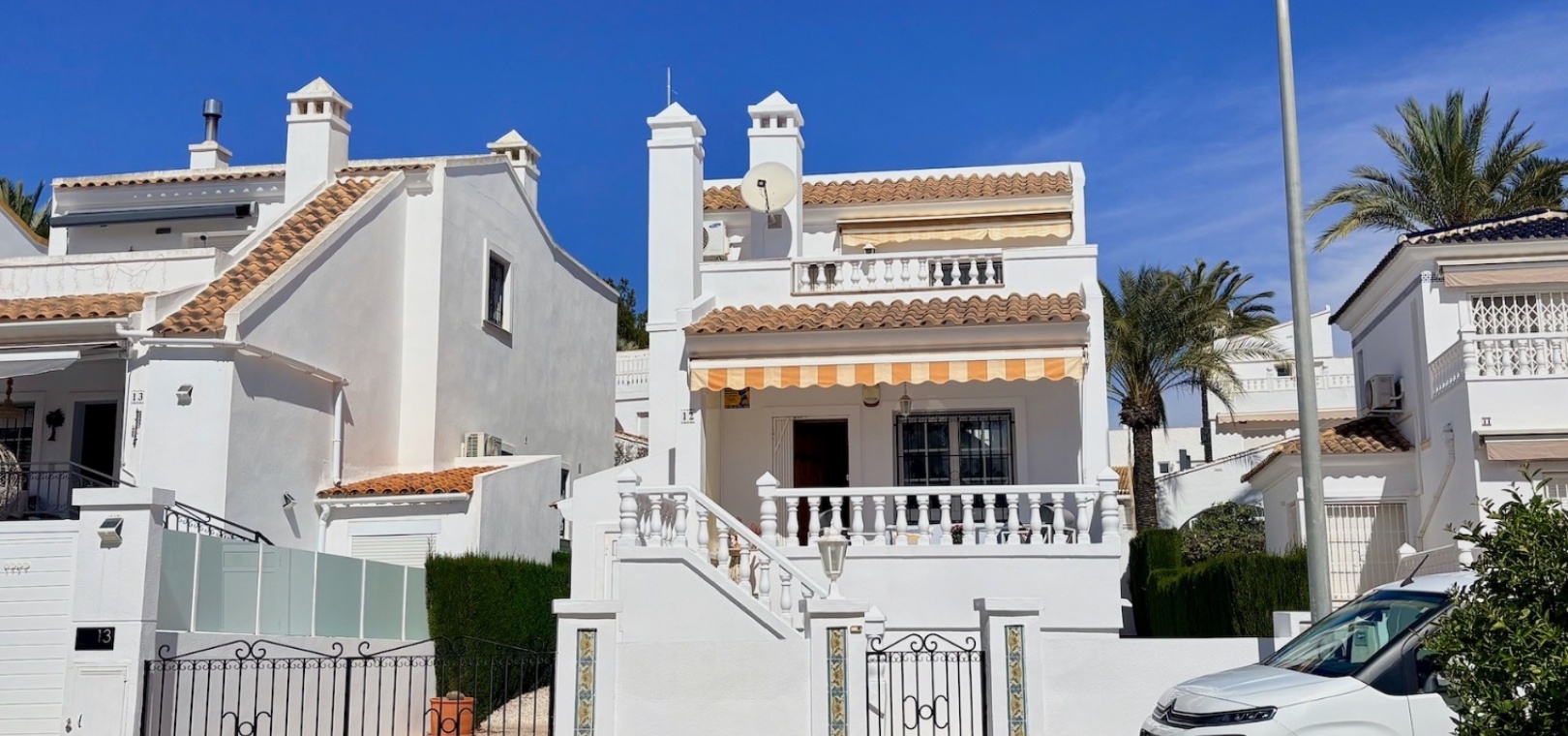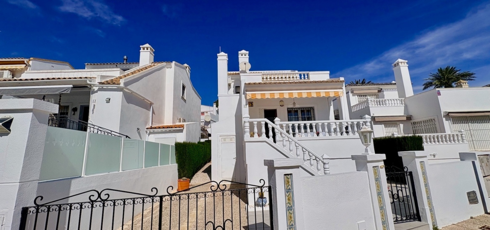 Découvrez cette charmante maison de style « Carmen » située dans le complexe résidentiel exclusif de Rioja, au sein du prestigieux quartier de golf de Villamartín à Orihuela Costa, l'un des endroits les plus prisés de la Costa Blanca.