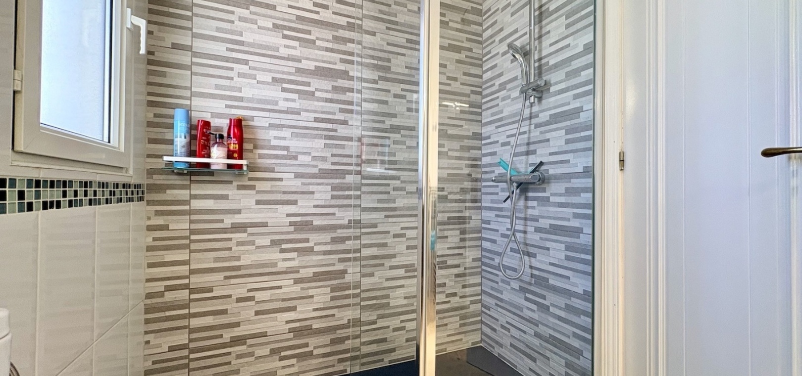 L'étage mansardé abrite une troisième chambre avec salle de bains privative, créant un espace privé et modulable idéal pour une suite parentale ou un logement d'invités.
