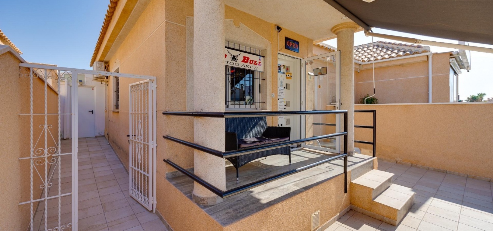 Présentation de cette magnifique maison indépendante située dans le quartier prisé de La Zenia, à quelques pas des services essentiels sur la belle Costa d'Orihuela. Actuellement opérationnel en tant que studio de tatouage, ce bien a été entièrement rénové et est prêt à servir soit comme résidence secondaire ou principale ????. S'étendant sur un espace fonctionnel de 57 m², il dispose de deux chambres confortables et d'une salle de bain moderne ainsi qu'un salon-cuisine ouvert ????️. Profitez de votre propre patio intérieur privé équipé pour la buanderie ????et détendez-vous sur le spacieux solarium mesurant 30 m²—dont 10 m² sont fermés pour une utilisation potentielle comme chambre invitée ????. Le jardin avant offre amplement d'espace pour se garer ???? tout en fournissant un accès facile aux commodités locales ???? y compris bars et restaurants accessibles à pied ☕????ou faites des promenades tranquilles jusqu'à la plage Playa de la Zenia—à seulement 1 km ! De plus, le centre commercial La Zenia Boulevard n'est qu'à cinq minutes à pied ????de votre porte ! Ne manquez pas cette incroyable opportunité; saisissez-la maintenant!~