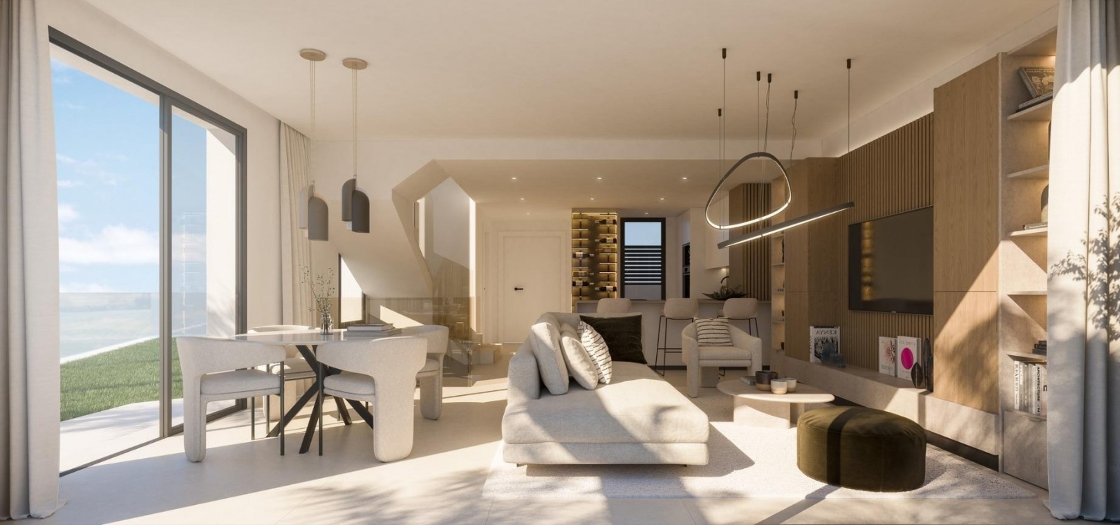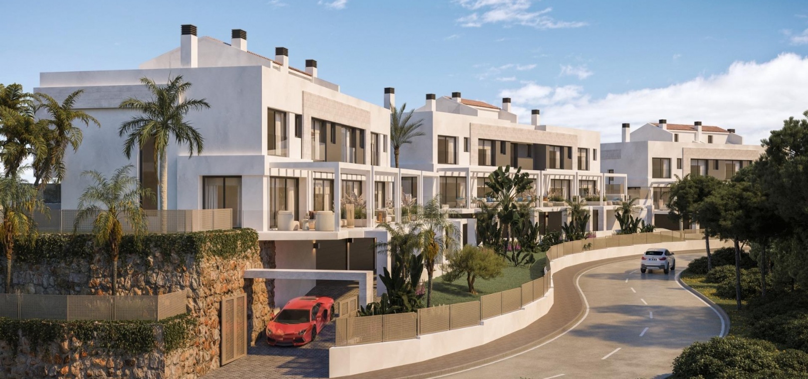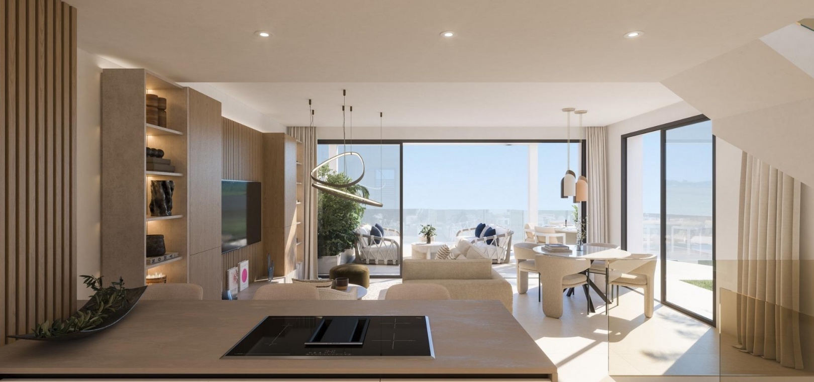 Les maisons de ville sont conçues pour prolonger les espaces de vie à l'extérieur avec de généreuses terrasses idéales pour dîner, se détendre ou profiter de la brise marine. Les intérieurs ouverts relient la cuisine, la salle à manger et le salon avec un accès direct aux terrasses, créant des espaces lumineux et aérés avec une vue imprenable sur la mer. Certaines maisons comprennent également des jardins privés au rez-de-chaussée.