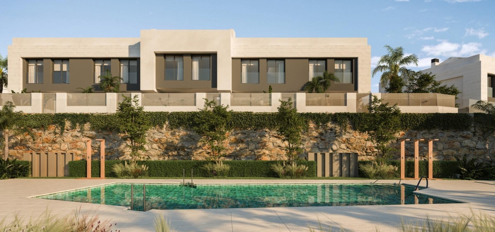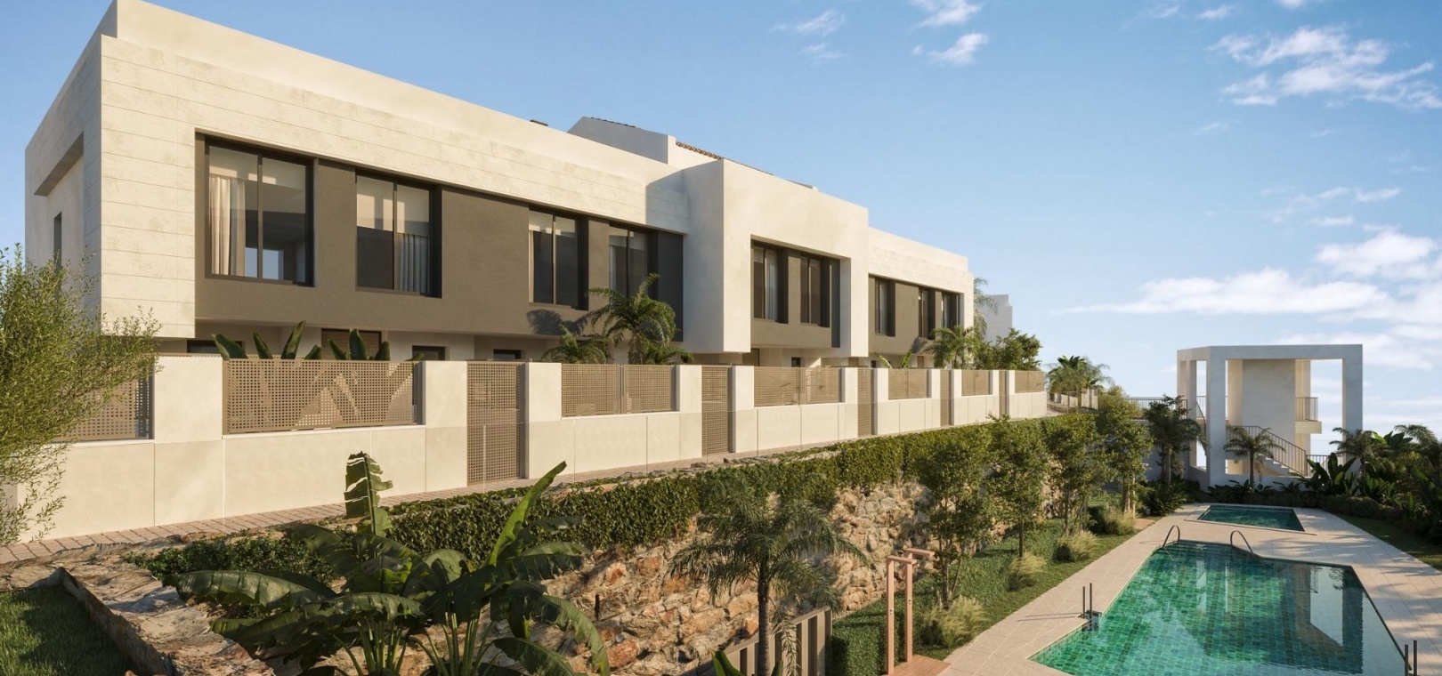 Maisons de ville neuves avec vue sur la mer près du golf Miraflores à Calahonda