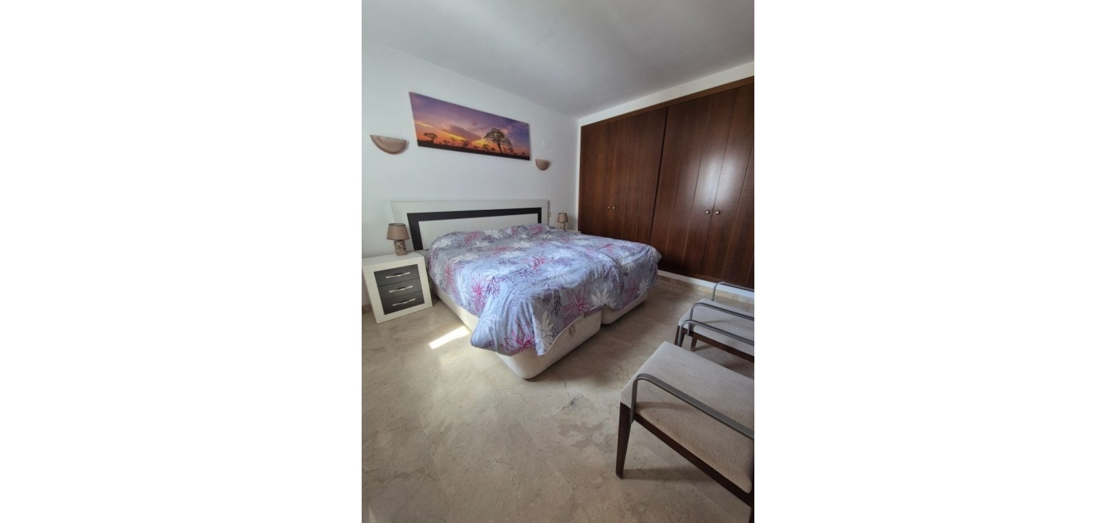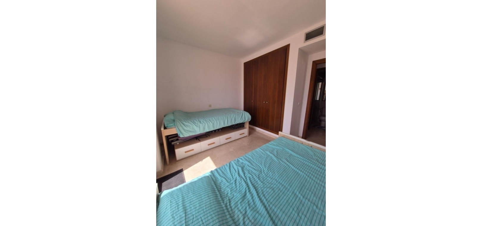 Ce penthouse comprend deux chambres spacieuses et deux salles de bains. La chambre principale dispose d'une salle de bains attenante avec douche à l'italienne, tandis que la seconde salle de bains est équipée d'une baignoire. L'appartement bénéficie de finitions haut de gamme et comprend la climatisation, une connexion Wi-Fi et un système d'alarme intégré pour un confort et une sécurité optimaux.