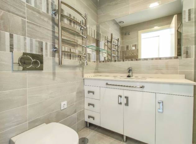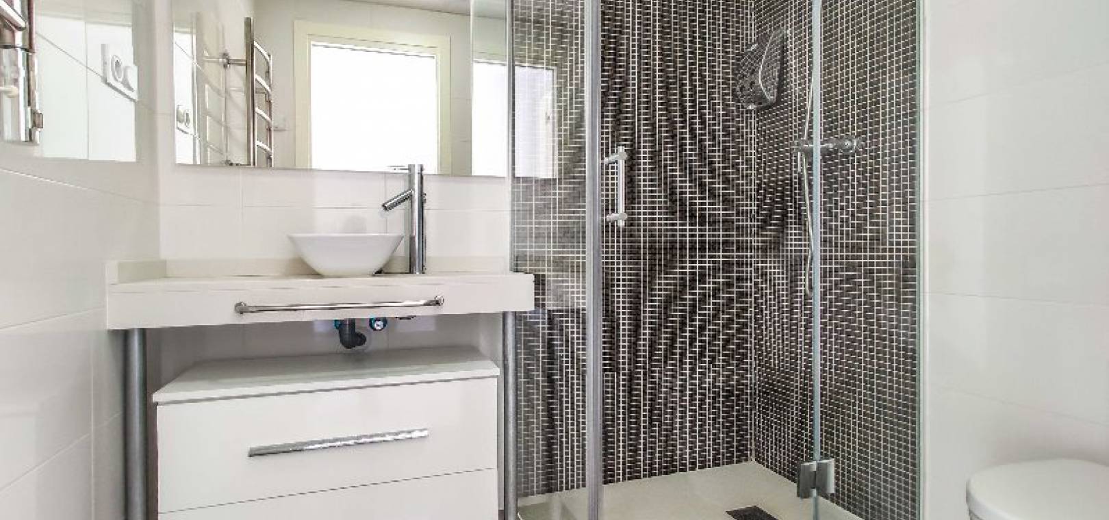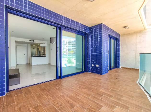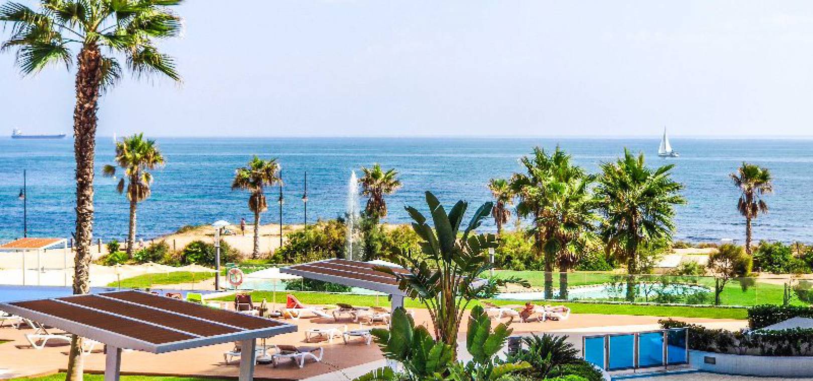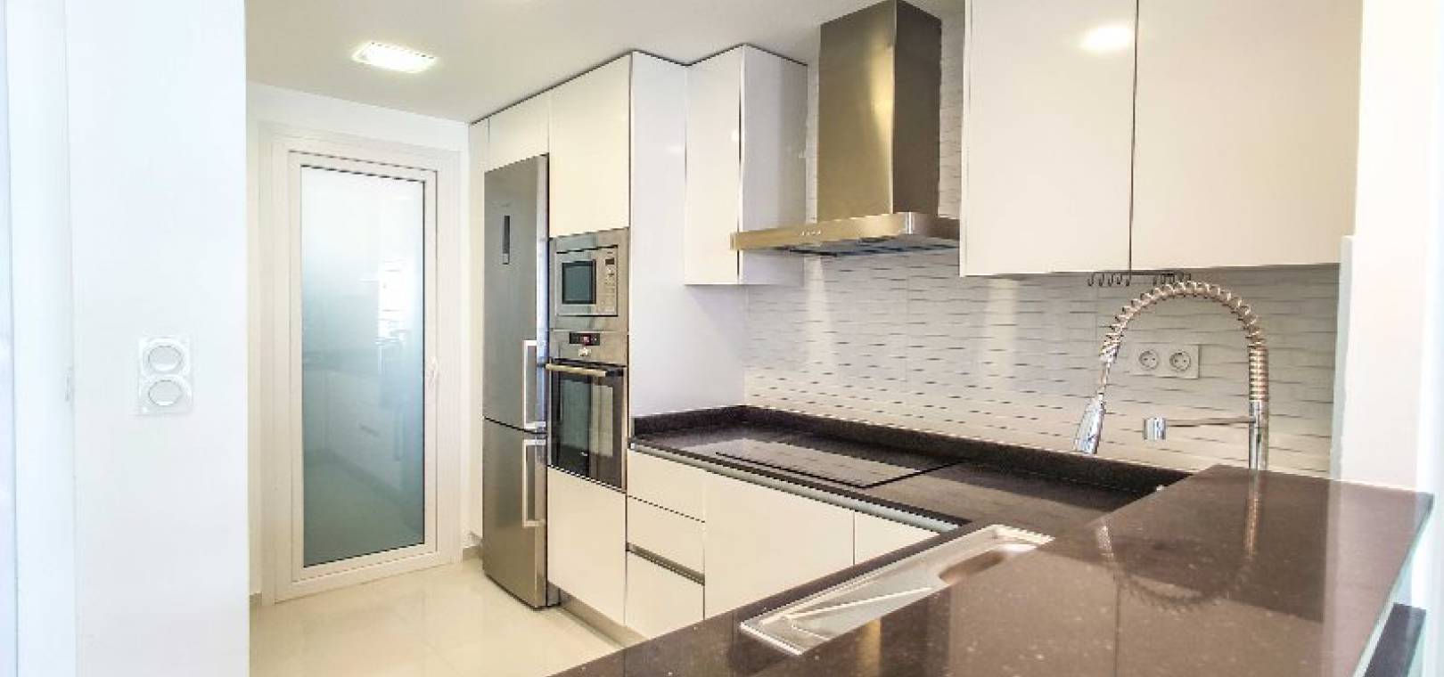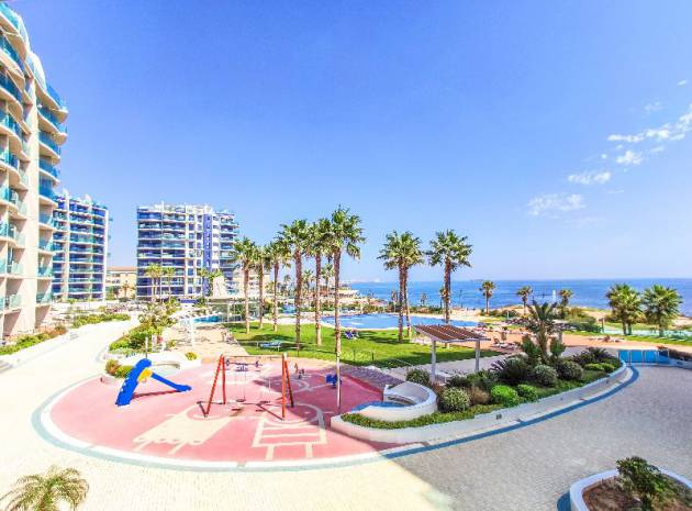 Un appartement avec 2 chambres et 2 salles de bains en première ligne avec vue sur la mer et vue sur la mer situé à Res. Sea Senses, Punta Prima, Costa Blanca.