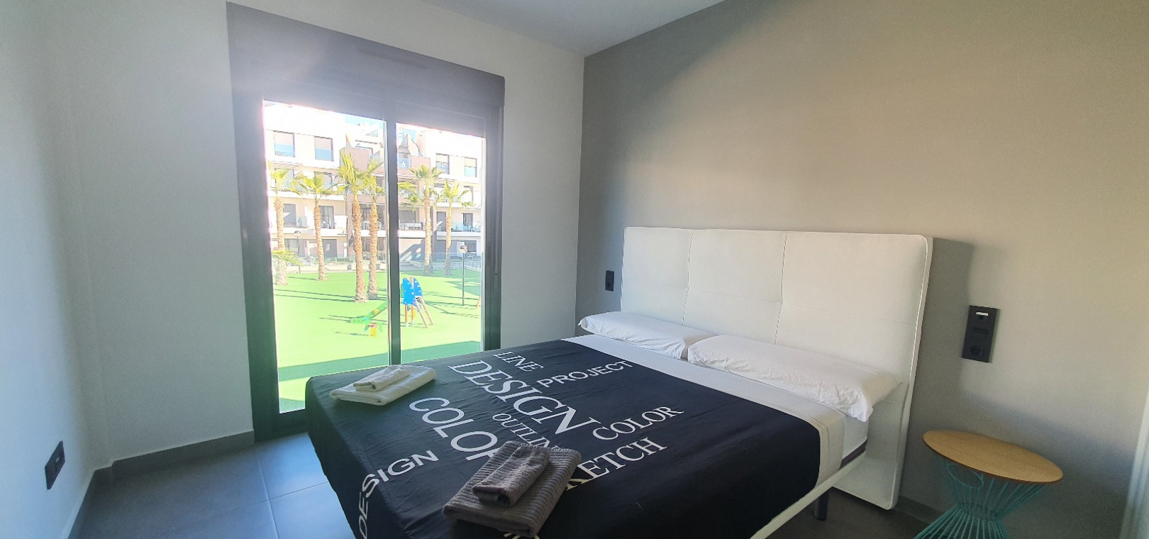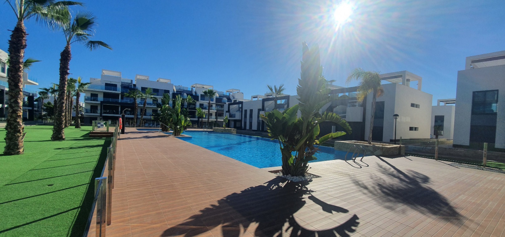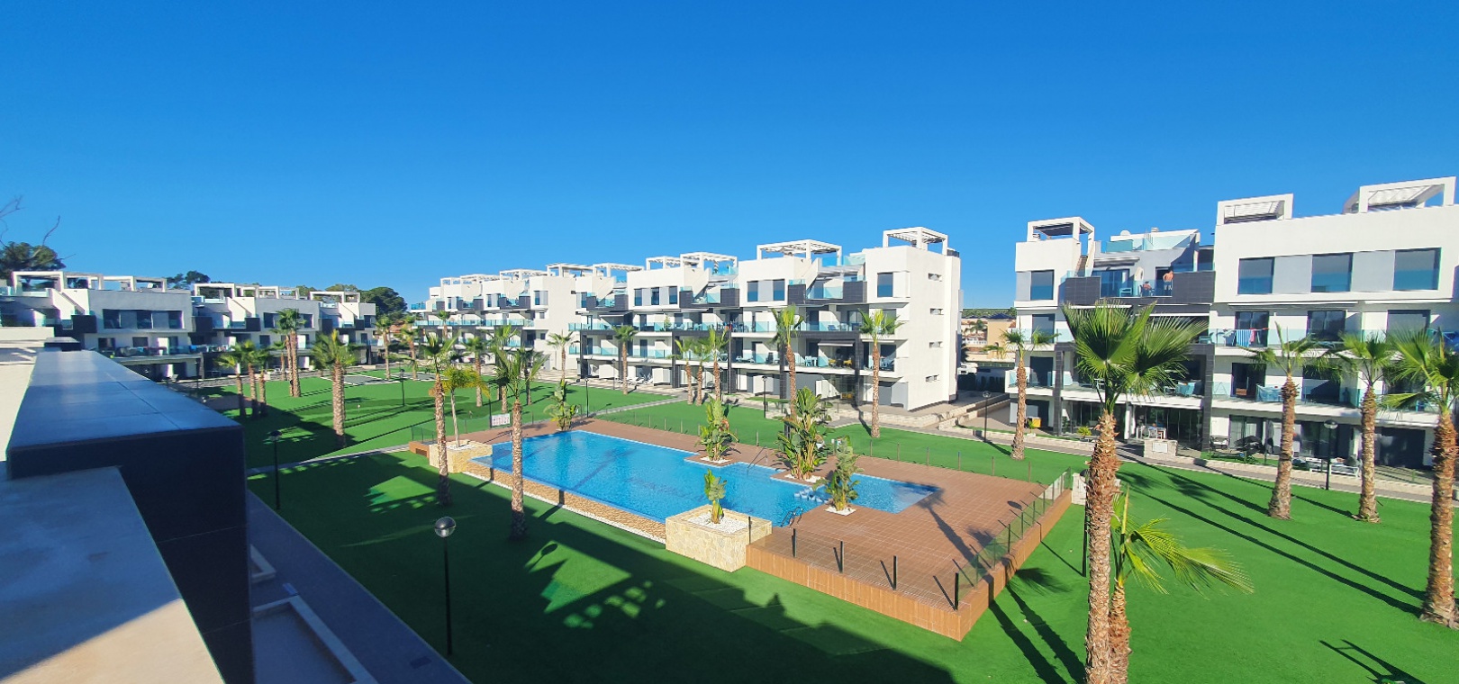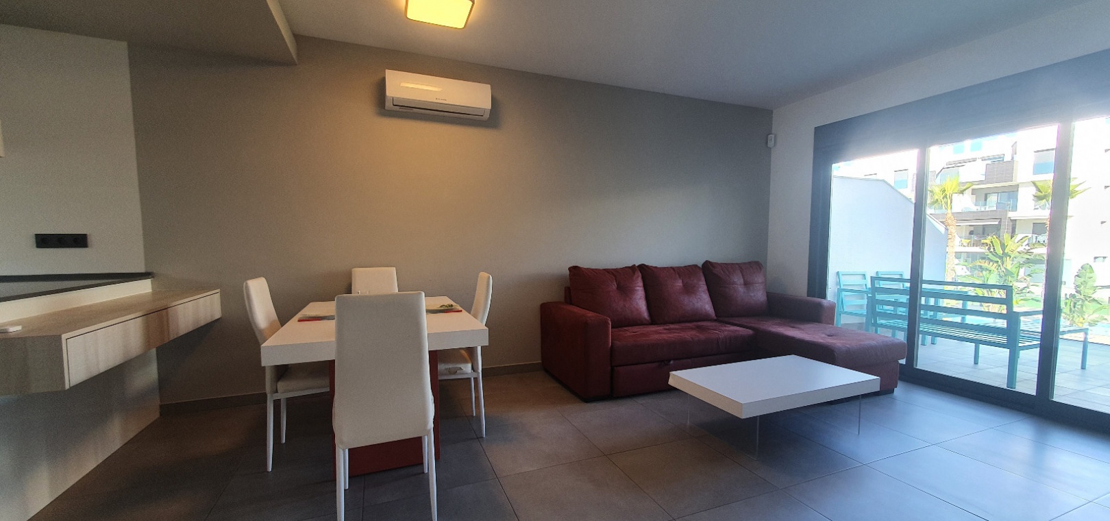 Grote woon / eetkamer, open volledig ingerichte keuken, 3 x dubbele slaapkamers, master met een en-suite badkamer met douche, familie badkamer, balkon met uitzicht over het gemeenschappelijke zwembad en tuinen, groot privé solarium, ondergrondse parkeerplaats met een berging , ultramodern design, eersteklas bouwmaterialen, volledig gemeubileerd, warme en koude airconditioning en nog veel meer.