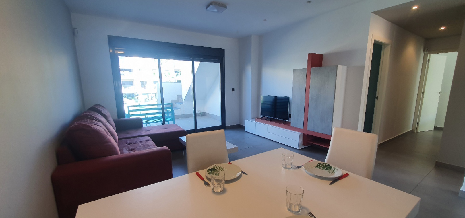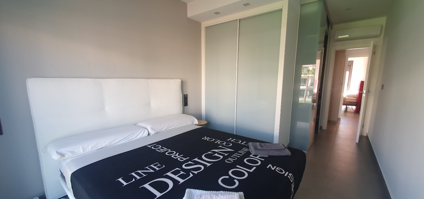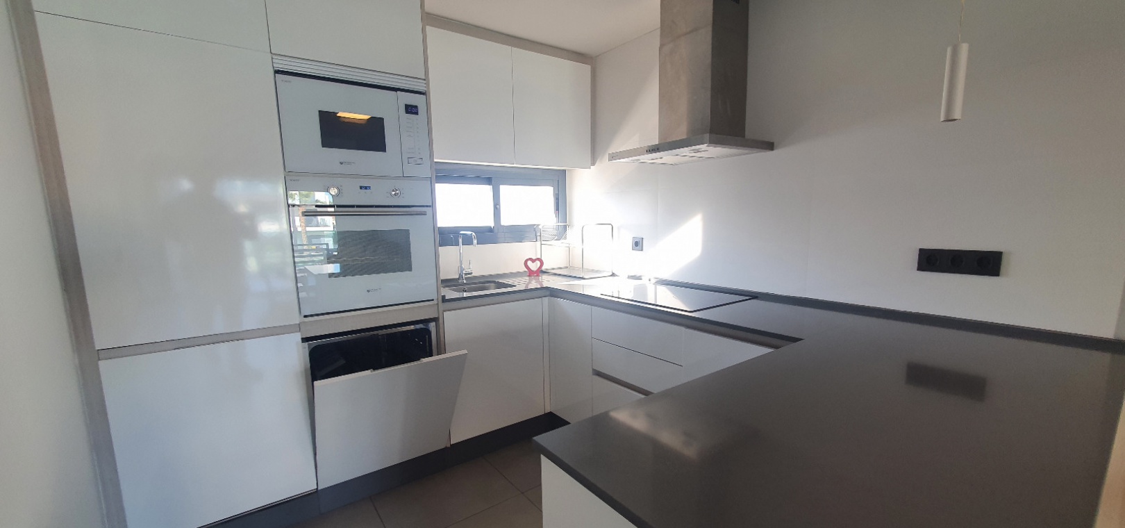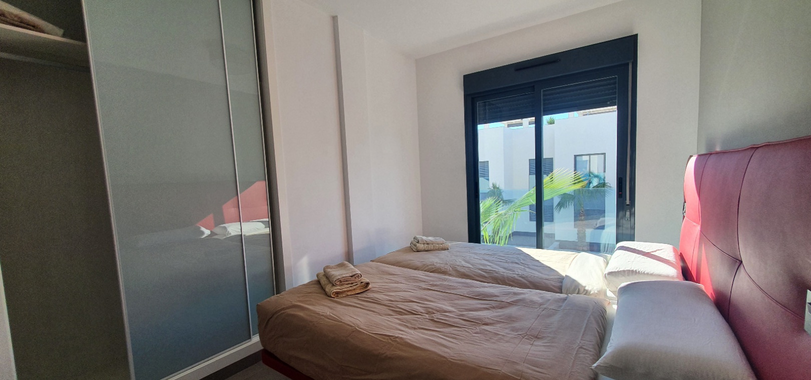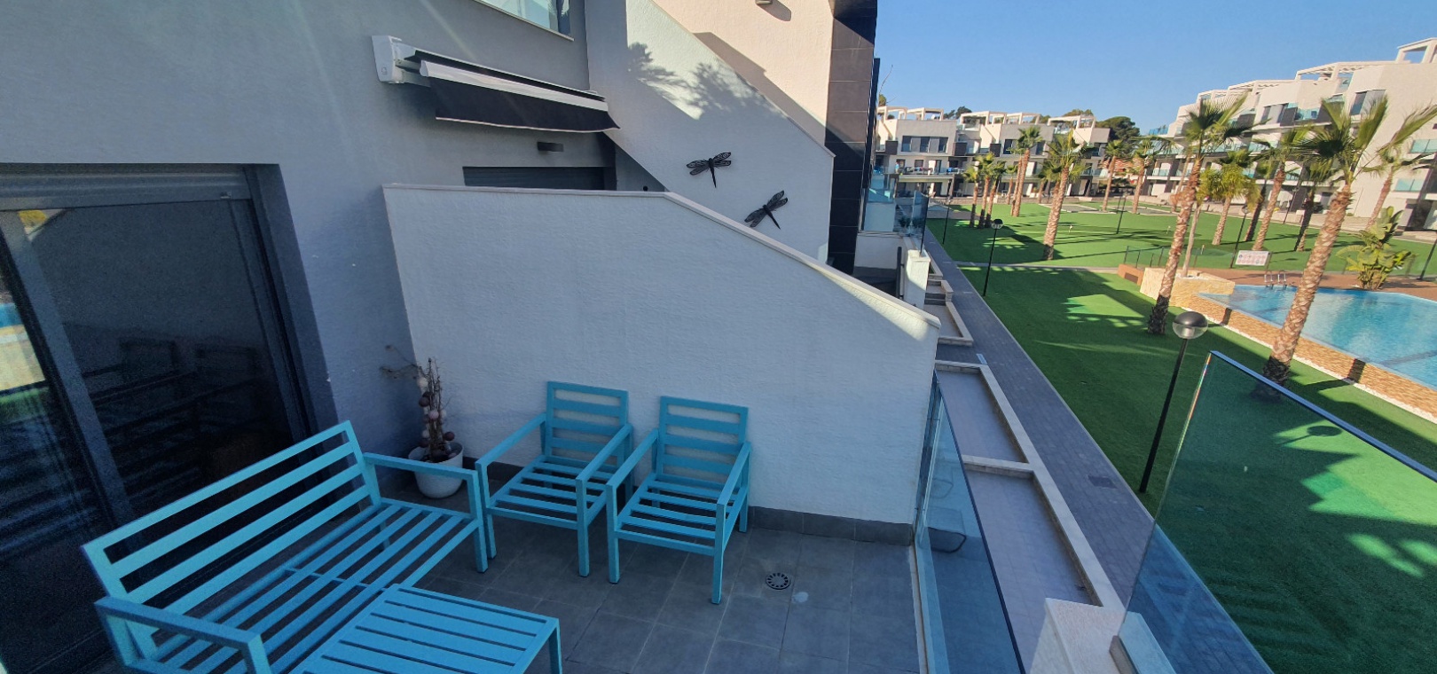 Grote woon / eetkamer, open volledig ingerichte keuken, 3 x dubbele slaapkamers, master met een en-suite badkamer met douche, familie badkamer, balkon met uitzicht over het gemeenschappelijke zwembad en tuinen, groot privé solarium, ondergrondse parkeerplaats met een berging , ultramodern design, eersteklas bouwmaterialen, volledig gemeubileerd, warme en koude airconditioning en nog veel meer.