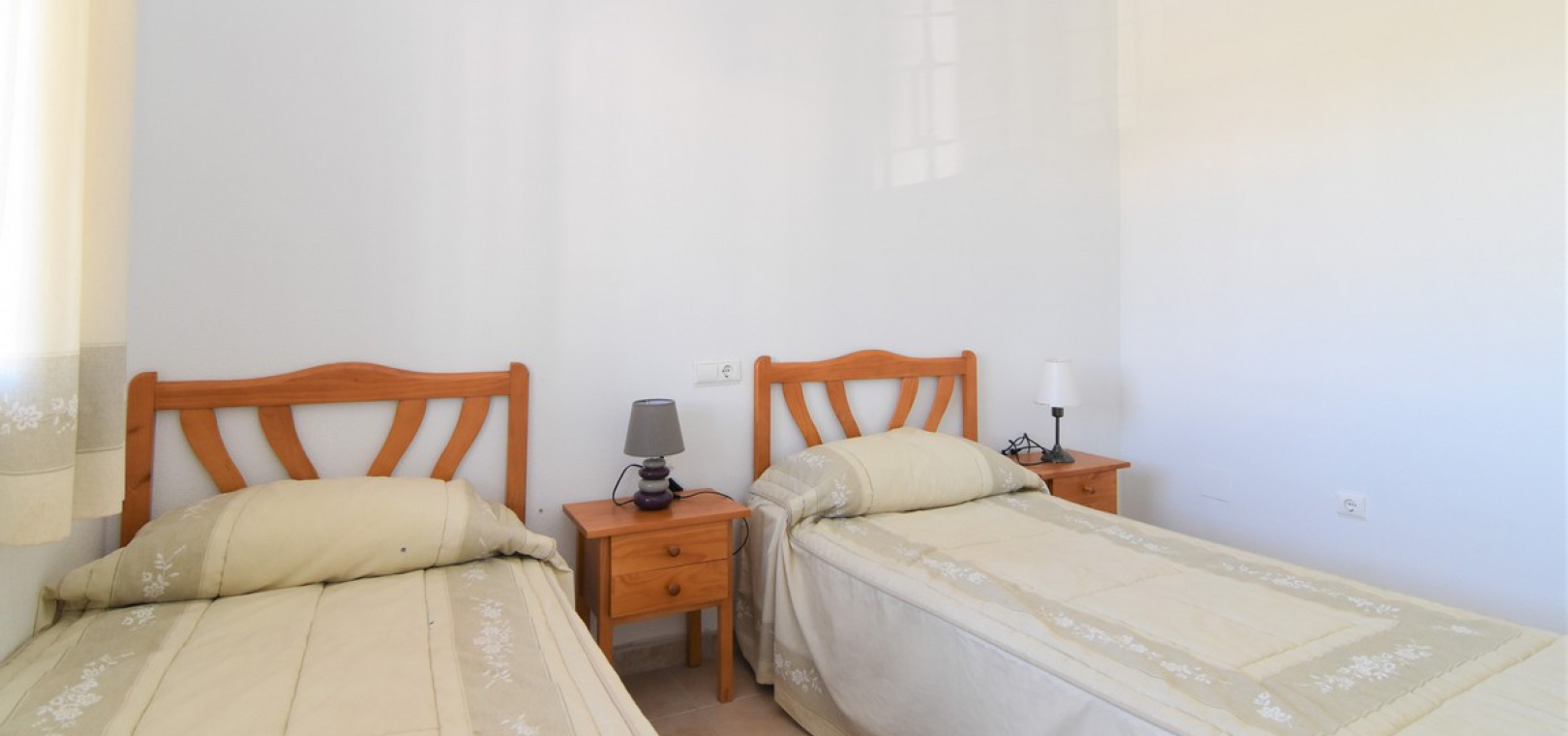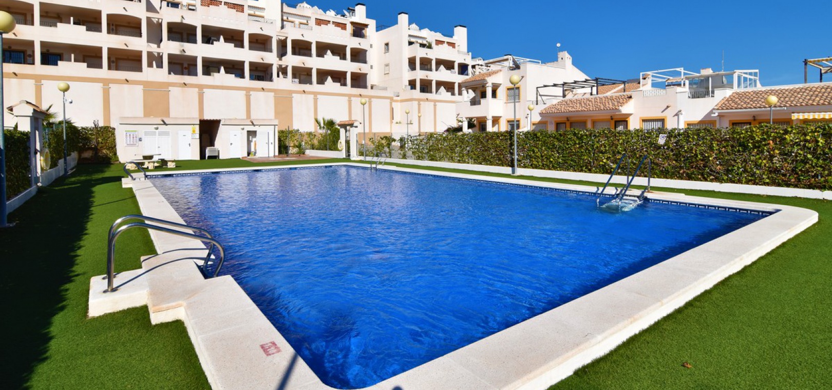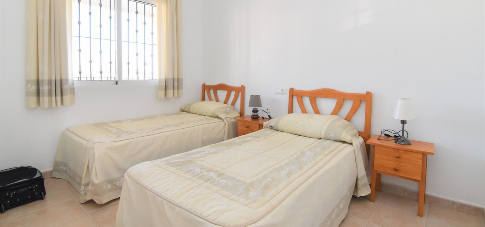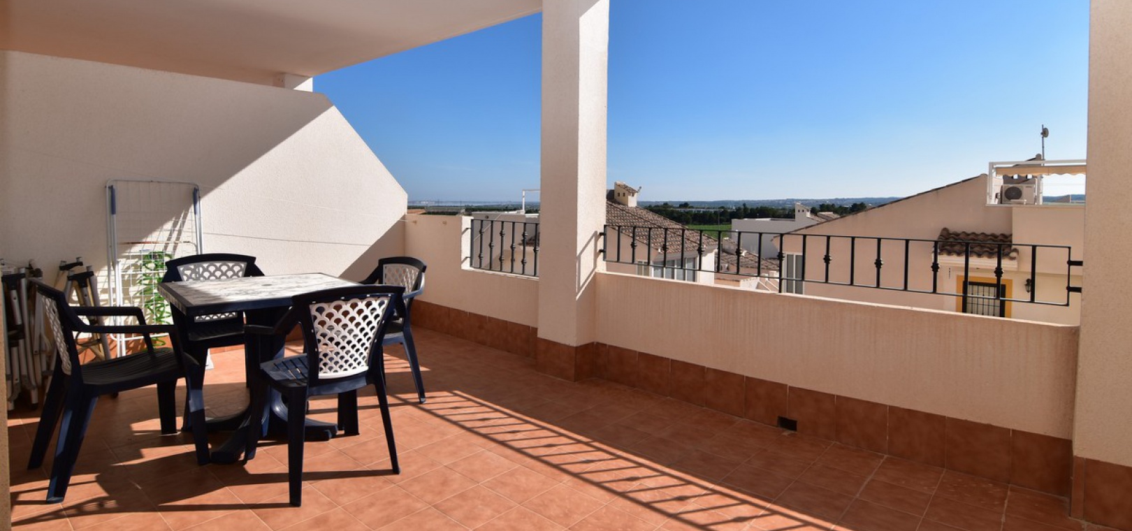 Een bungalow met 2 slaapkamers en 2 badkamers en een eigen dakterras in Laguna Green (Vistabella Golf), Los Montesinos, Costa Blanca.