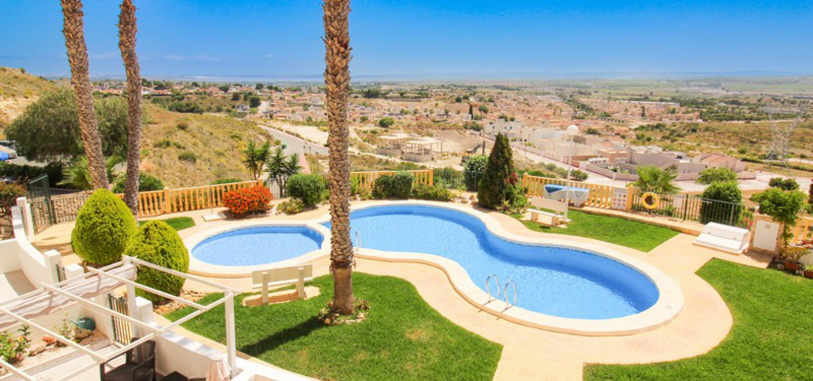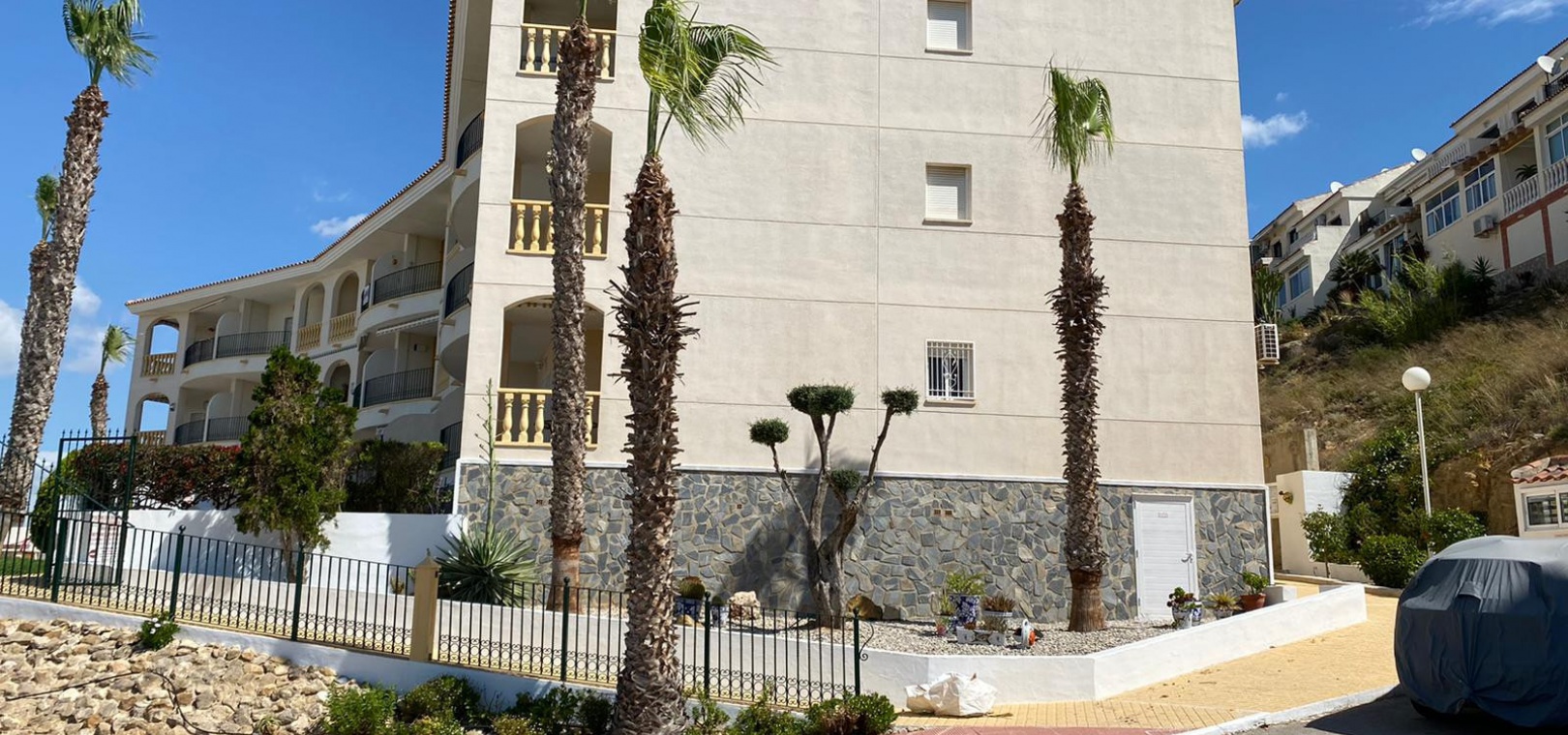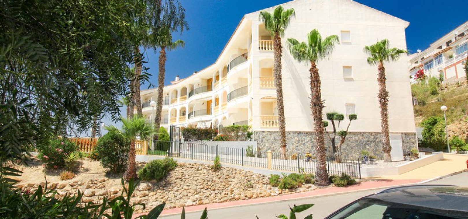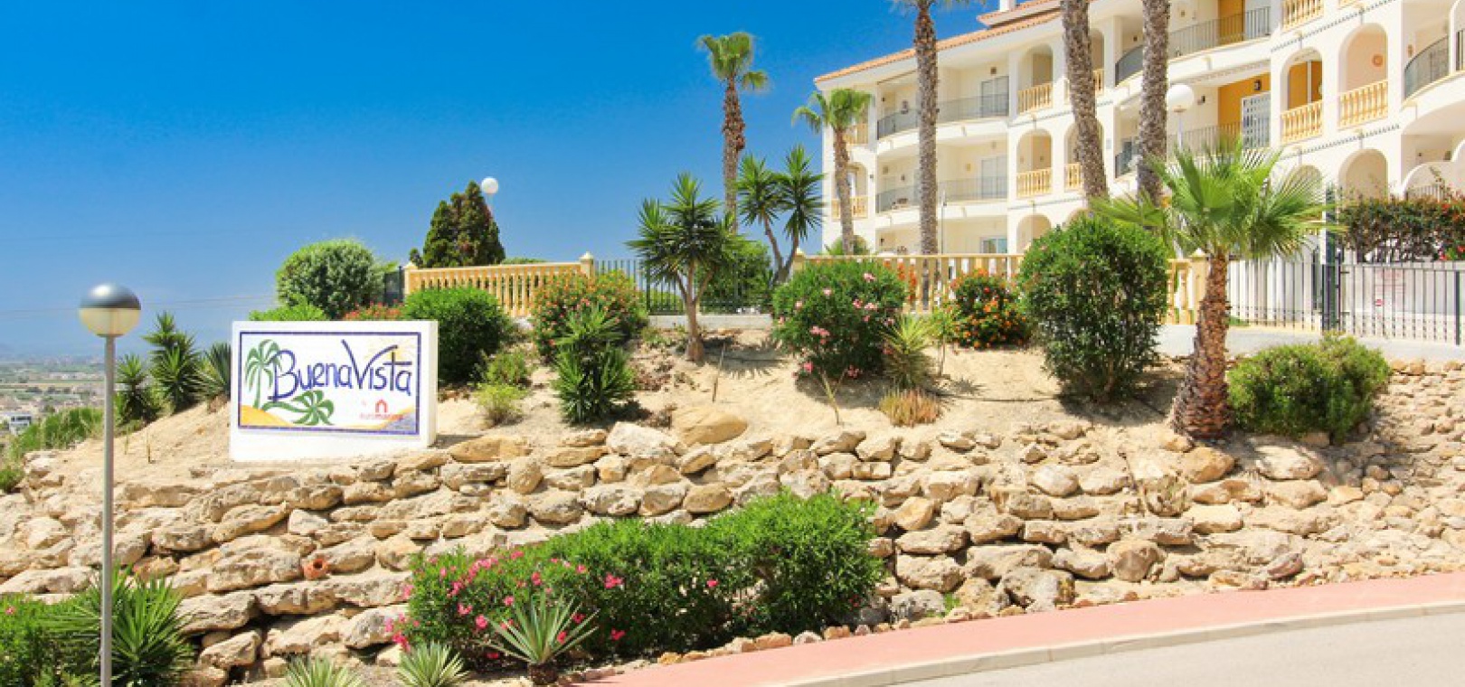 Een op het westen gelegen appartement met 2 slaapkamers en 1 badkamer op de bovenste verdieping met uitzicht op het gemeenschappelijke zwembad in Res.Buena Vista, Ciudad Quesada, Costa Blanca.