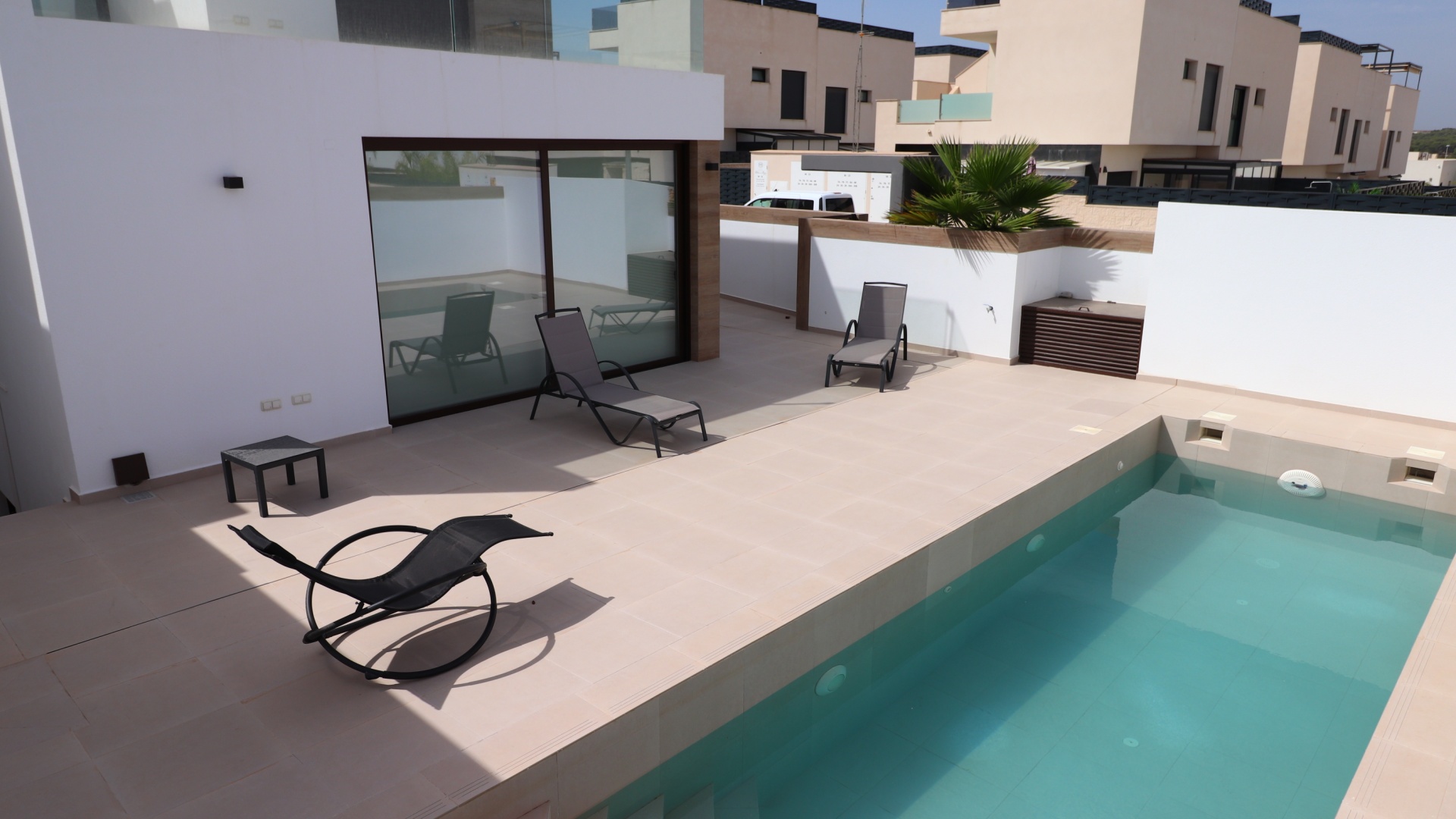 Deze hoek, modern en stijlvol, zo nieuw als vrijstaande villa met drie slaapkamers in Benijofar, ligt in het hart van deze bruisende en traditionele Spaanse stad, tussen Ciudad Quesada en Rojales. Gelegen op een paar minuten lopen van veel van de aangeboden voorzieningen en faciliteiten, met alles wat u nodig zou kunnen hebben, terwijl de dichtstbijzijnde stranden en zeefronten op slechts 12 minuten rijden liggen in Guardamar del Segura. Dit pand gebouwd in 2022, bestaat op de begane grond uit een open volledig ingerichte keuken met ontbijtbar; woon-/eetkamer met toegang naar de voorzijde, betegelde, mooie, onderhoudsvriendelijke tuin met off-road parking en privézwembad; een slaapkamer met tweepersoonsbed; en een familiedoucheruimte; op de eerste verdieping zijn er nog twee tweepersoonsslaapkamers, de master met toegang tot het grote terras, evenals de overloop; en een tweede doucheruimte, met Juliette-toegang. Een interne trap leidt naar de zeer ruime en inpandige onderbouw met veel mogelijkheden voor extra opslagruimte, woonruimte, speelkamer, bioscoopkamer, enz..., die al profiteert van een installatie- en bijkeuken. Veel extra's zijn onder meer inbouwkasten, overal airconditioning, elektrische rolluiken, aerothermisch systeem, privézwembad, parkeerplaats, gemotoriseerde poort, binnen- en buitenverlichting, afgewerkte onderbouw, witgoed en een super cool eindproduct. Simply Amazing, beschikbaar vanaf € 440.000!