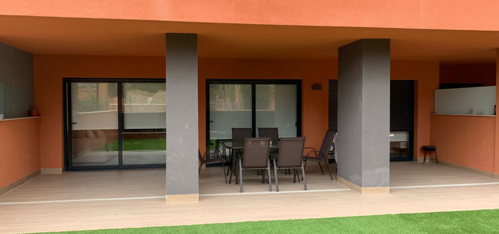 Grote woon / eetkamer, open keuken, 2 x tweepersoons slaapkamers, de hoofdslaapkamer heeft een eigen badkamer met douche en vloerverwarming, 1 x gasten doucheruimte met vloerverwarming, overdekt terras, tuin is smaakvol bedekt met kunstgras, topkwaliteit bouwmaterialen, gemeenschappelijk zwembad en tuinen, parkeerplaats, warme en koude airconditioning en nog veel meer.