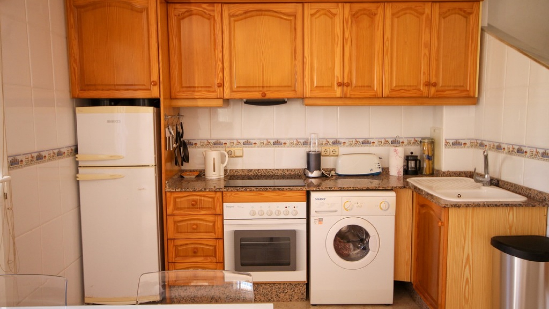 Een half vrijstaande woning met 3 slaapkamers en 2 badkamers met uitzicht op het gemeenschappelijke zwembad gelegen in El Galan, Villamartin, Costa Blanca.