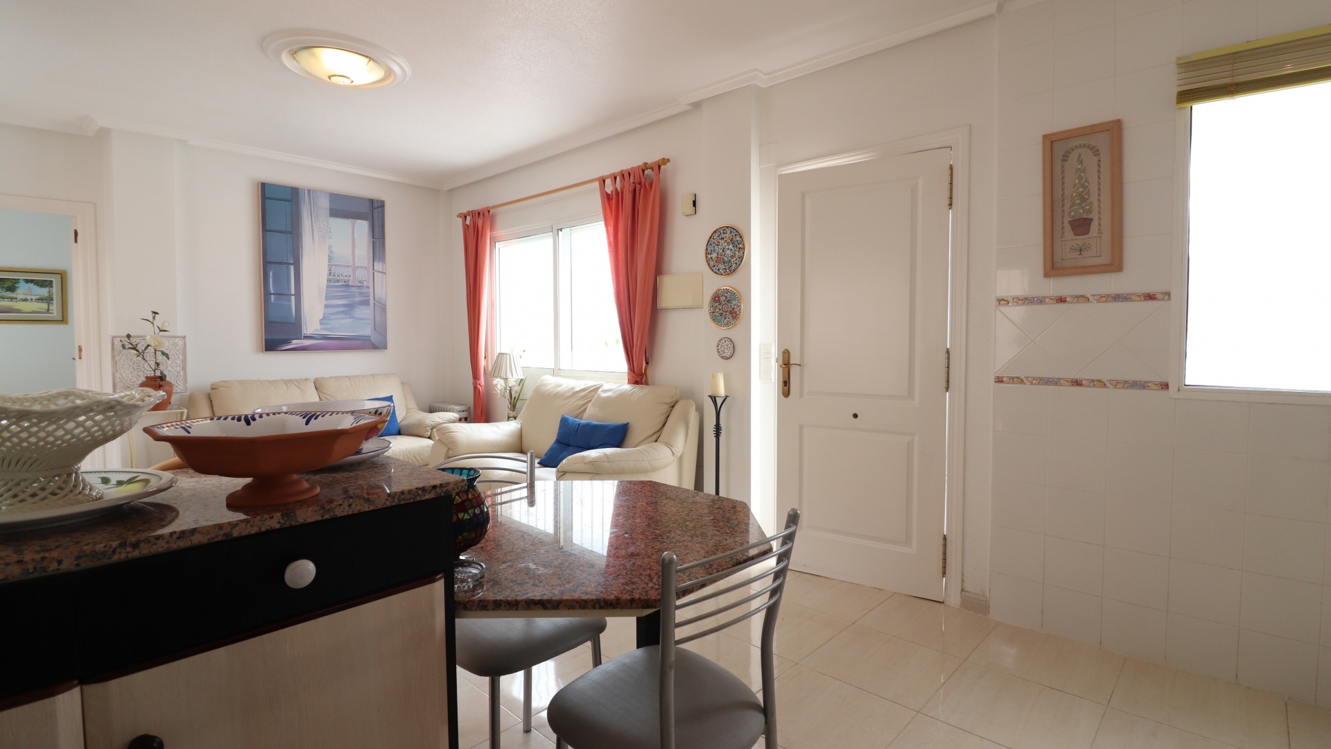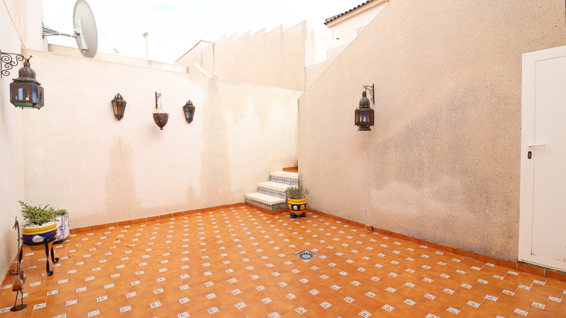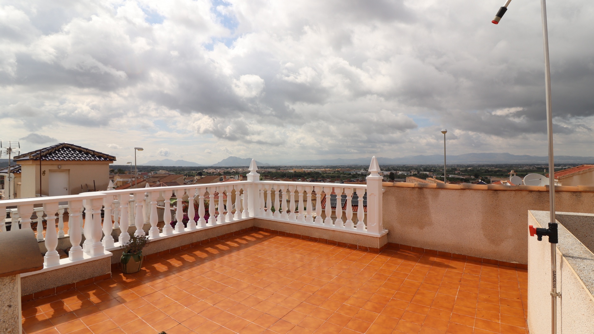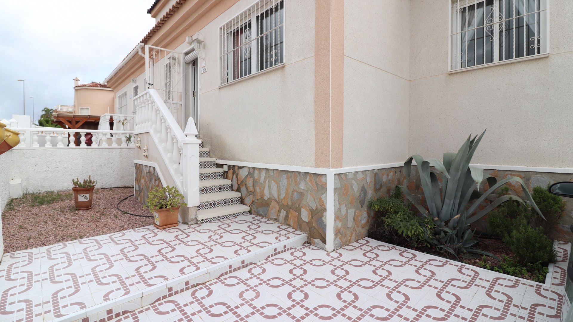 Deze exclusieve vierpersoonsvilla met twee slaapkamers in Benimar II ligt op een populaire locatie, met open panoramisch uitzicht op de bergen, tussen Rojales en Benijofar. Gelegen op vijf minuten lopen van de voorzieningen en faciliteiten van Benimar en op slechts 12 minuten rijden van de dichtstbijzijnde blauwe vlag-stranden van Guardamar del Segura. Dit prachtige pand op een van de beste locaties, bestaat uit een open volledig ingerichte keuken; woon- / eetkamer met toegang tot voortuin met off-road parking of de interne privébinnenplaats, perfect om buiten te eten; twee dubbele slaapkamers; en een familiebadkamer.. Een buitentrap vanaf de binnenplaats leidt naar het zonovergoten solarium op het dak met open ruimte en uitzicht op de bergen in de verte, ideaal voor entertainment, BBQ's, zonnebaden en meer... De buitentuin is betegeld en grind voor weinig onderhoud. Extra's zijn inbouwkasten, roosters, airconditioning in de hoofdslaapkamer, een berging op het solarium, aparte bijkeuken en meer... Goed gepositioneerd, wat een prijs!!! Deze blijft niet lang hangen!!! Gemeenschappelijk zwembad slechts 3 deuren verderop!