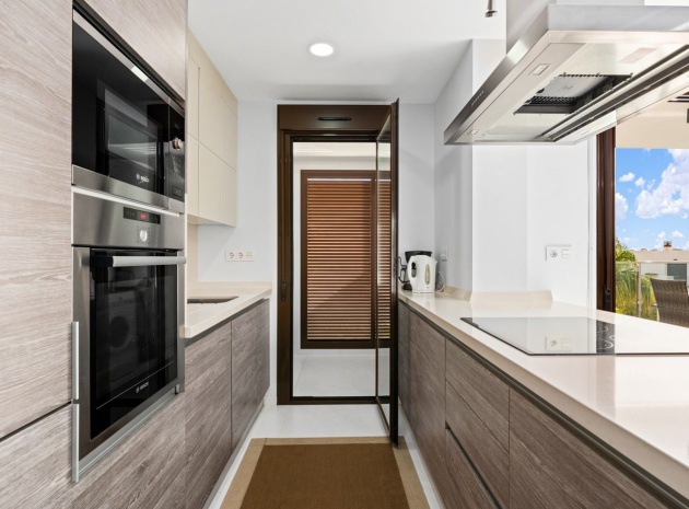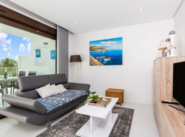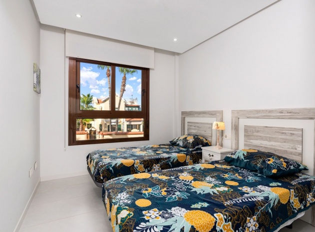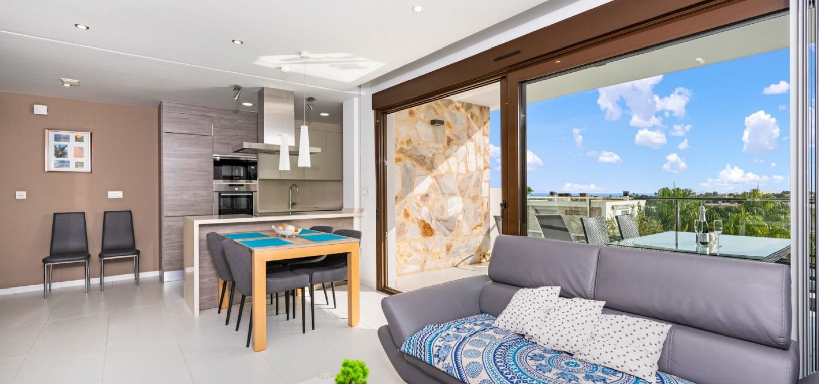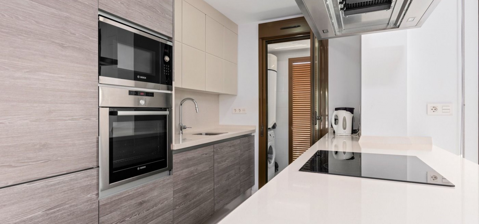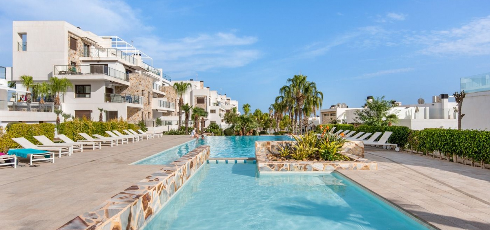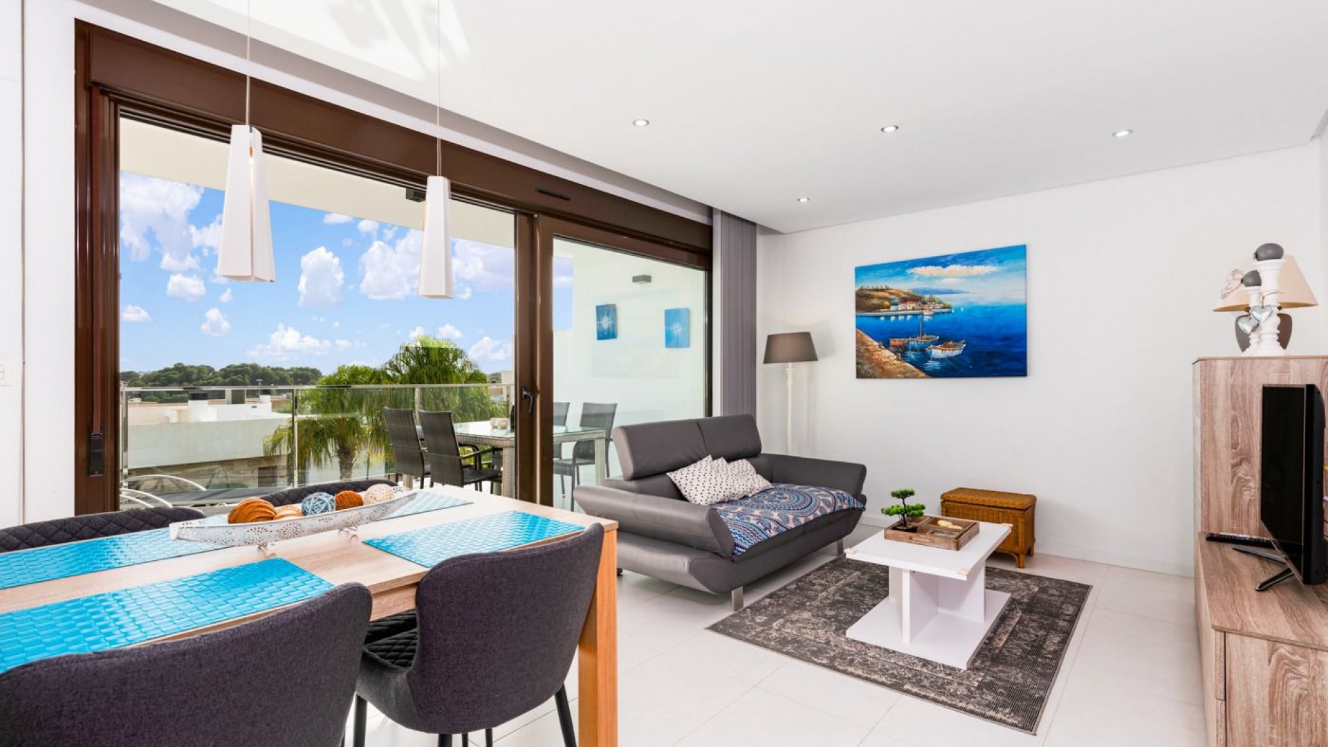 Grote woon/eetkamer, open volledig ingerichte keuken, aparte bijkeuken, 2 x tweepersoonsslaapkamers met inbouwkasten, de hoofdslaapkamer heeft een eigen doucheruimte, 1 x gastendoucheruimte, 22 m2 privéterras met uitzicht op het gemeenschappelijke zwembad en de tuinen met verre uitzicht op zee, beveiligde gated community, ondergrondse parkeerplaats met opslagruimte, overal geleide airconditioning, gemeubileerd verkocht en nog veel meer.