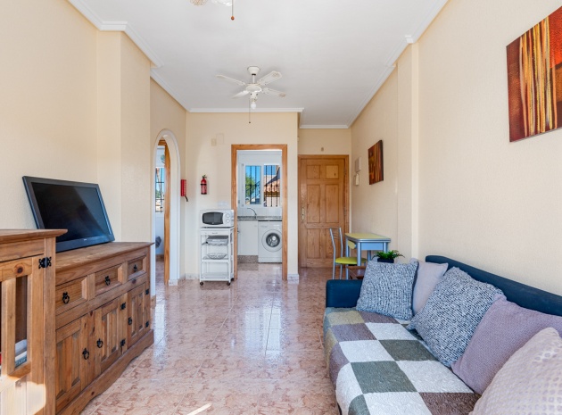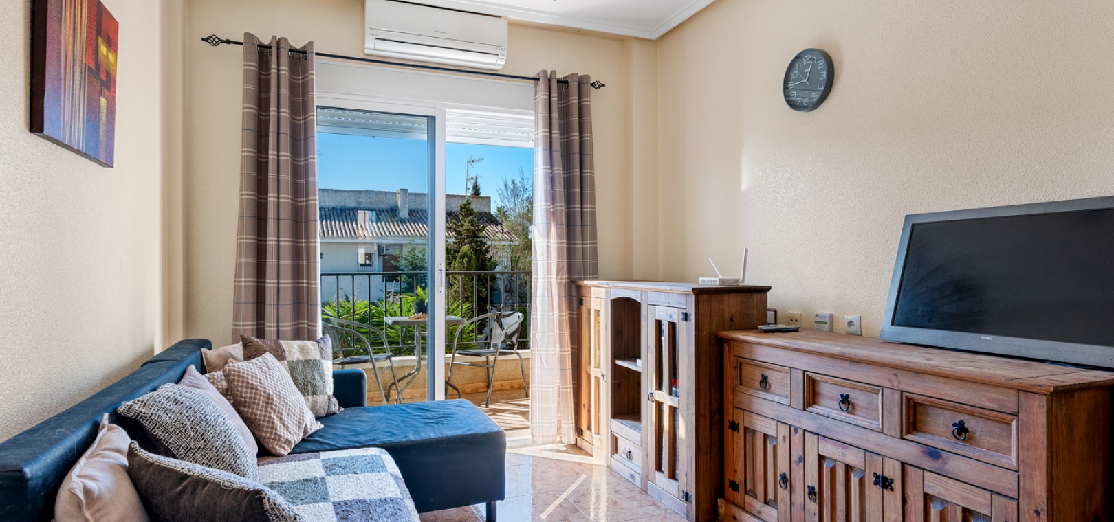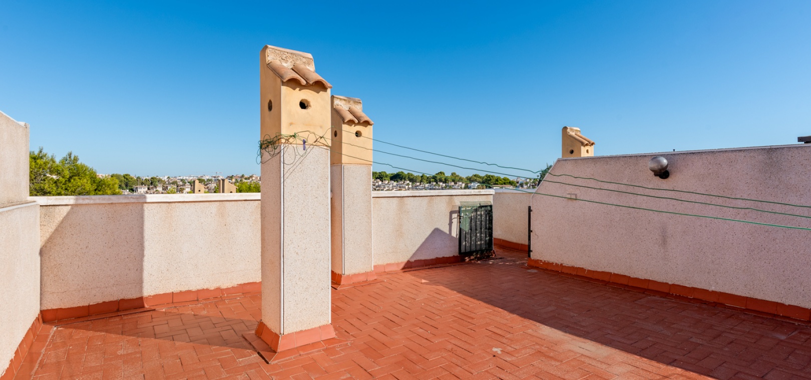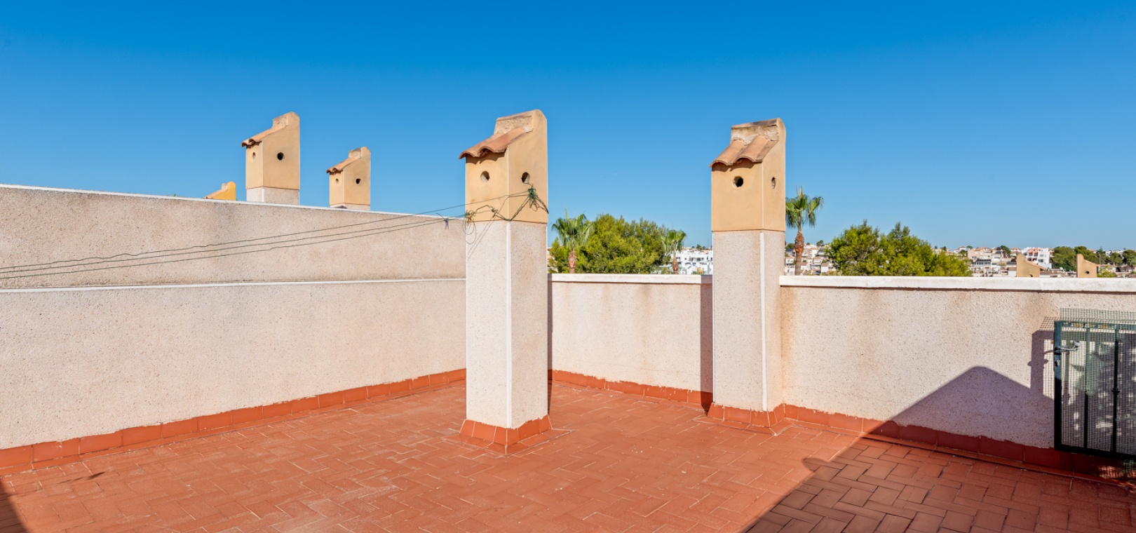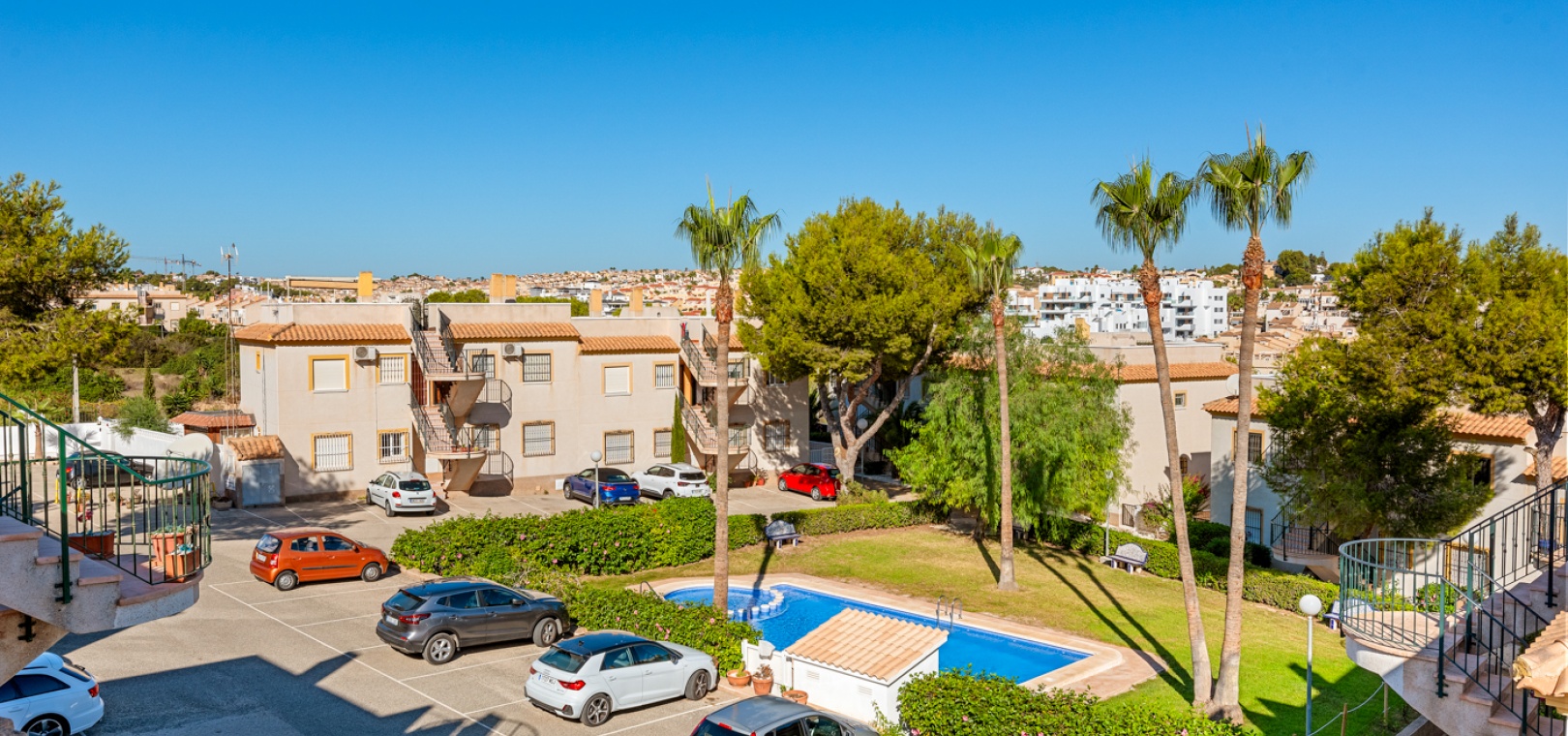 Een op het oosten gelegen appartement op de bovenste verdieping met 2 slaapkamers en 1 badkamer en een privésolarium gelegen in St James Park, Villamartin, Costa Blanca.