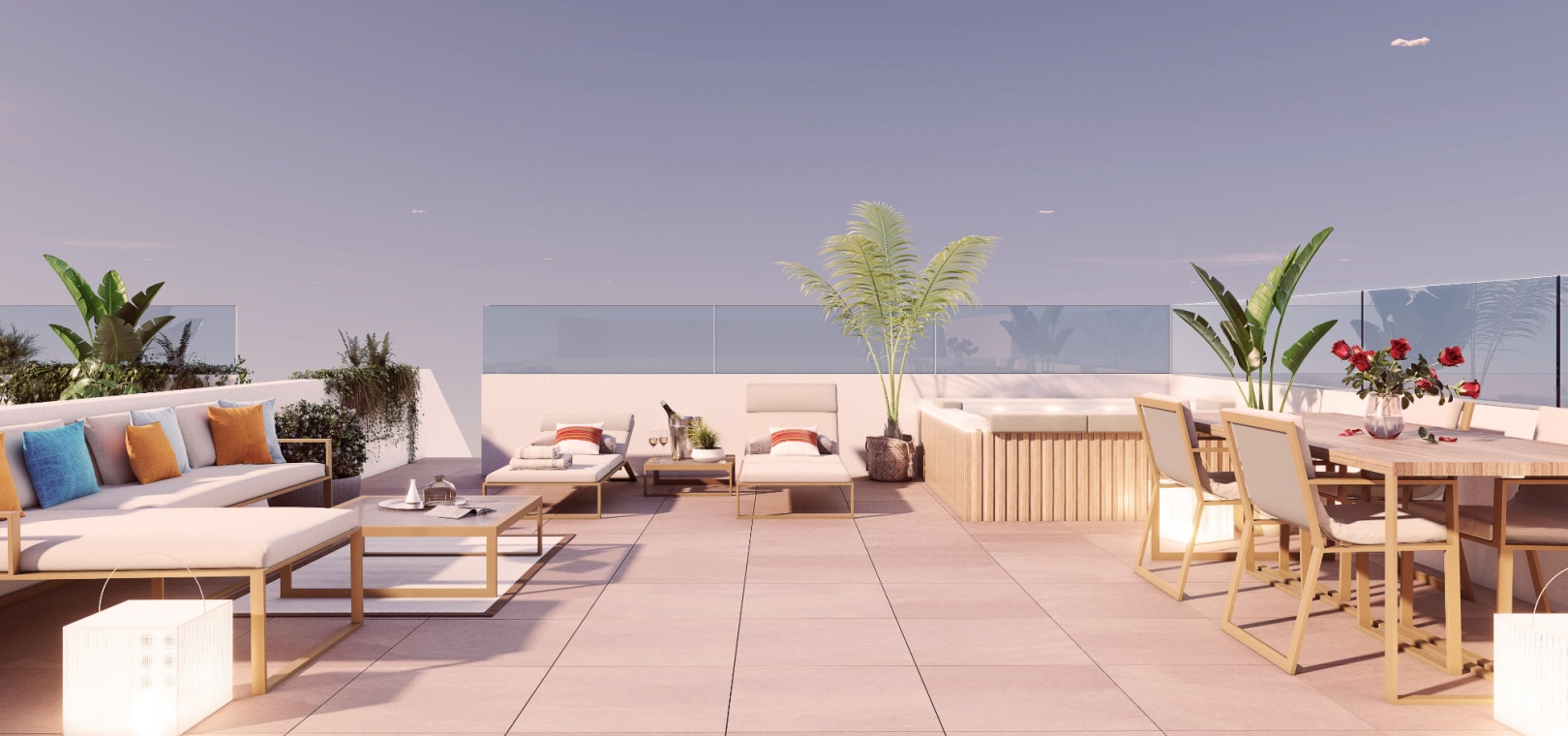 Woningen op de bovenste verdieping met een balkon en een privésolarium op het dak