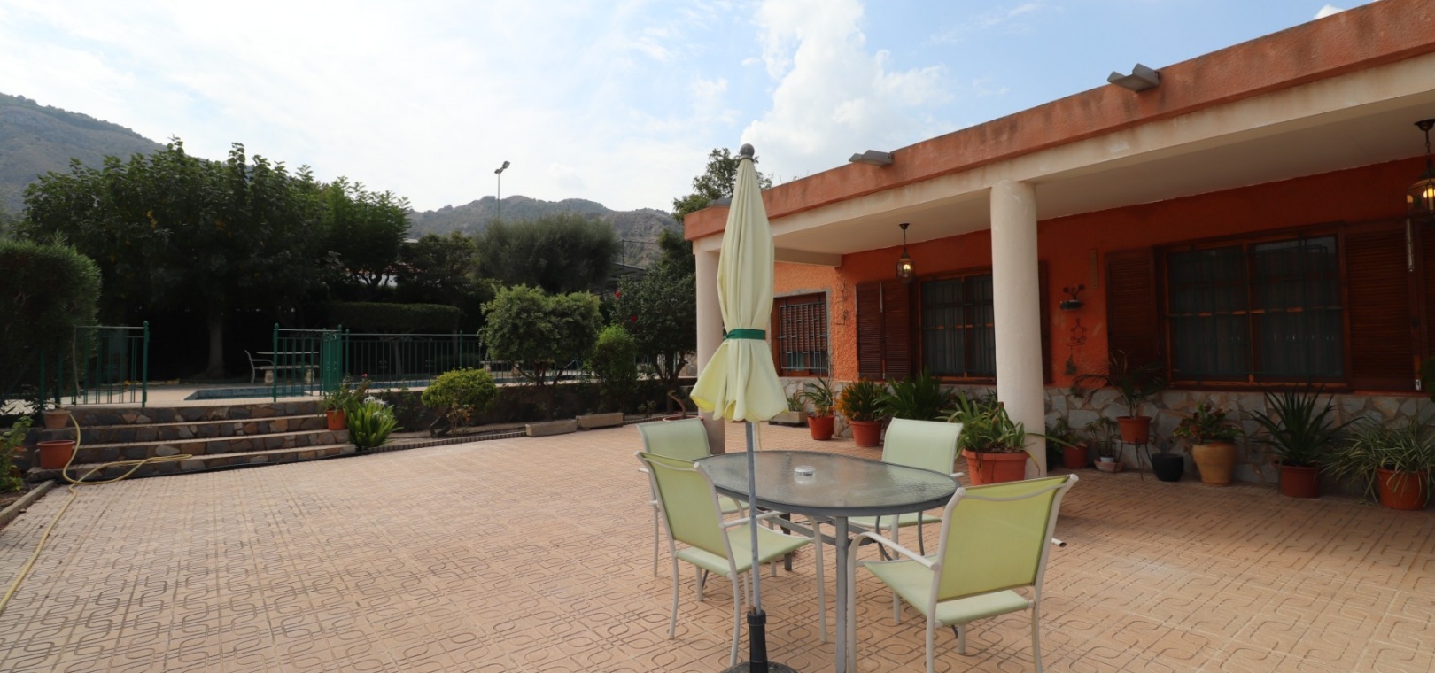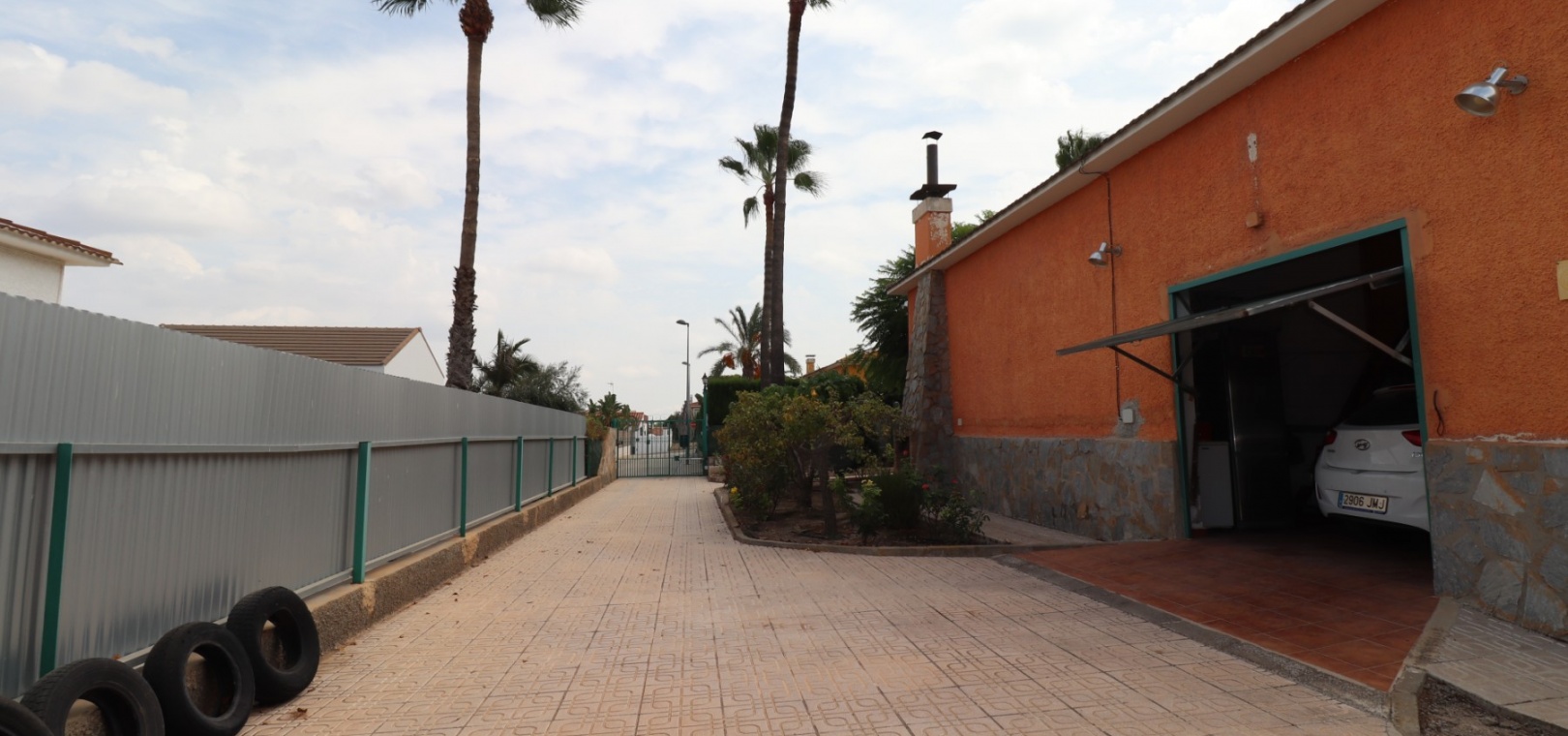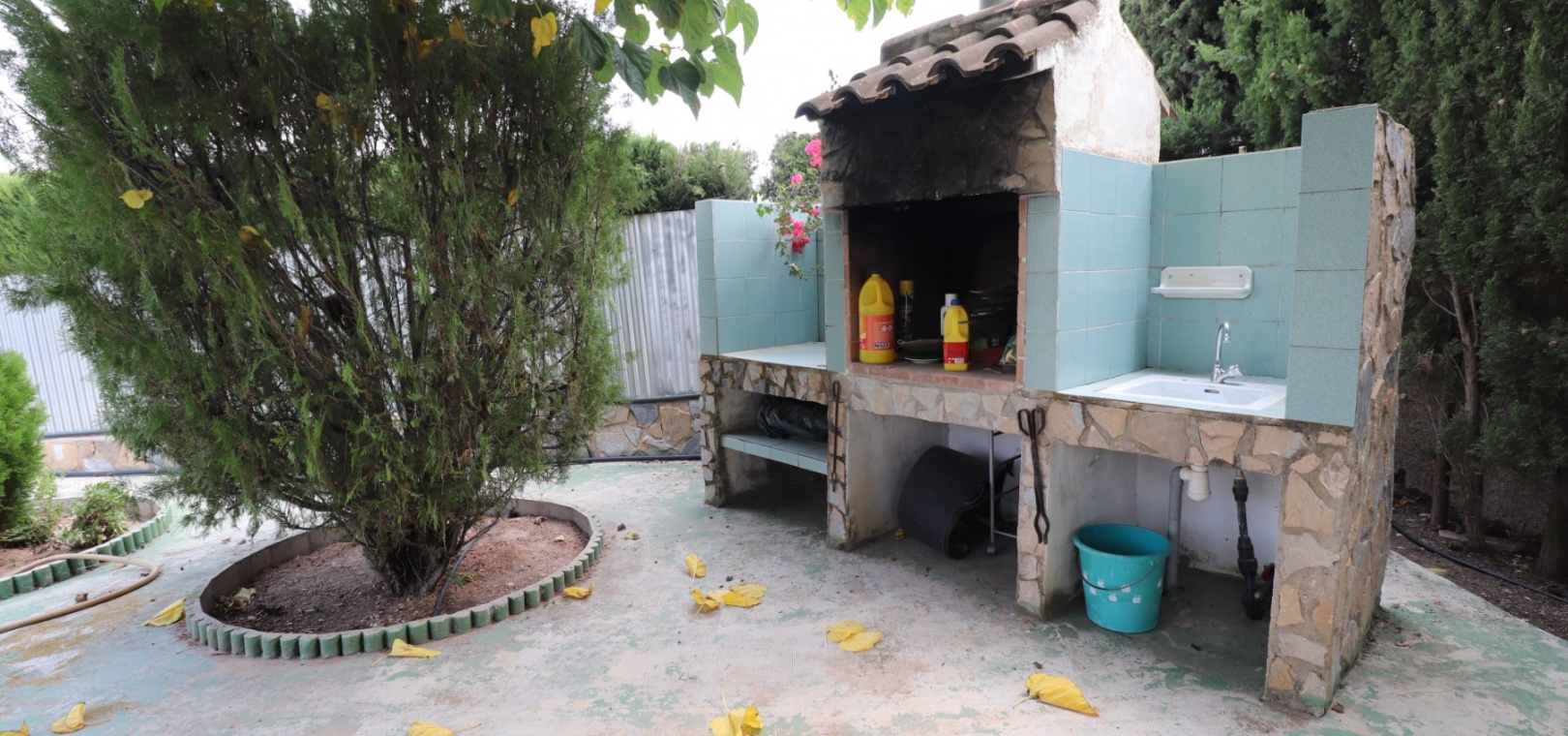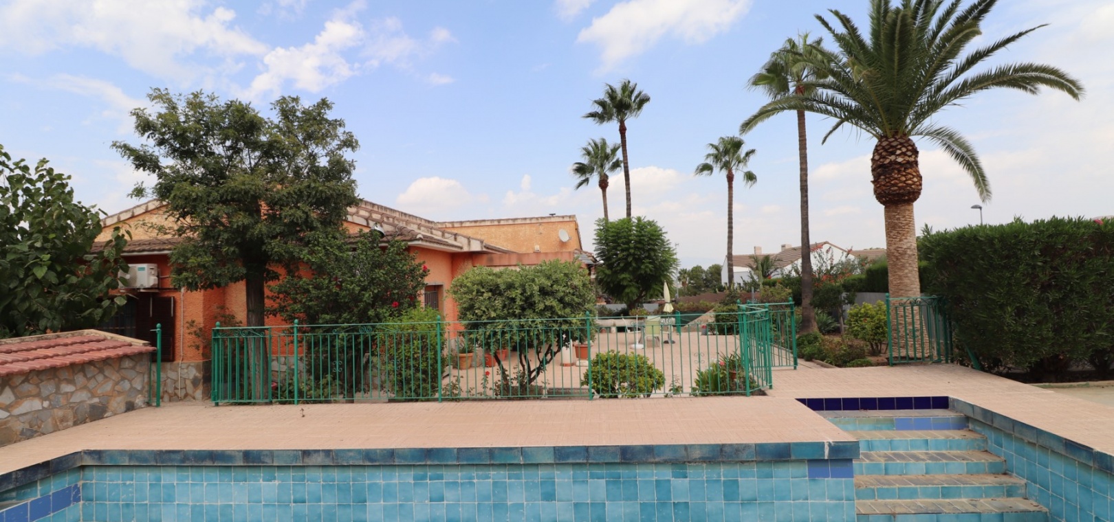Deze op het zuidoosten gelegen landvilla met vier slaapkamers ligt in Montepinar, een aantrekkelijke woonwijk van Orihuela, omgeven door bergen, waarbinnen u vele sedentaire routes/picknickplaatsen heeft. Op slechts vijf minuten lopen heeft u een gemeentelijk sportveld met voetbalveld, padelbaan, zwembad, bar en restaurant. De stad Orihuela ligt op ongeveer 5 minuten met de auto en de natuurlijke bronnen van Fortuna liggen op 25 minuten rijden en de kust op ongeveer 35 minuten. Dit huis in Spaanse stijl van 181 m², verdeeld over één verdieping, beslaat een perceel van 1292 m² en bestaat uit: ruim overdekt entreeterras, leidend naar de gang; dubbele openslaande deuren leiden naar de woon-/eetkamer met open haard en airco; aparte ingerichte keuken met een grote bijkeuken en vervolgens een doucheruimte; twee tweepersoonsslaapkamers en twee eenpersoonsbedden; verdere familiedoucheruimte. De toegang met de auto leidt naar een wijd open betegelde ruimte, met toegang tot de garage, die ideaal zou zijn als werkplaats; veel volgroeide beplante gebieden met bomen, fruitbomen, struiken, enz., 10 x 4 privézwembad. Extra's zijn onder meer centrale verwarming en inbouwkasten in drie van de slaapkamers, waarvan twee met airco. Zoveel potentieel met deze villa.