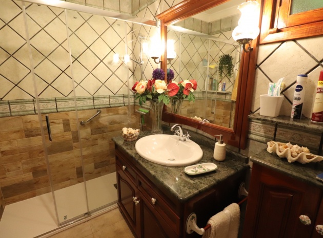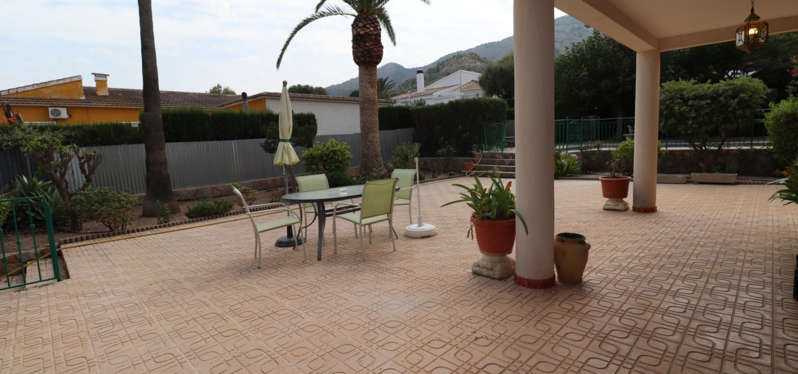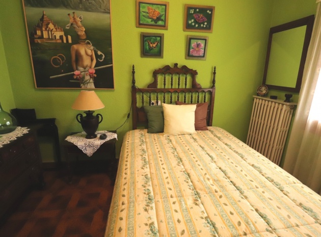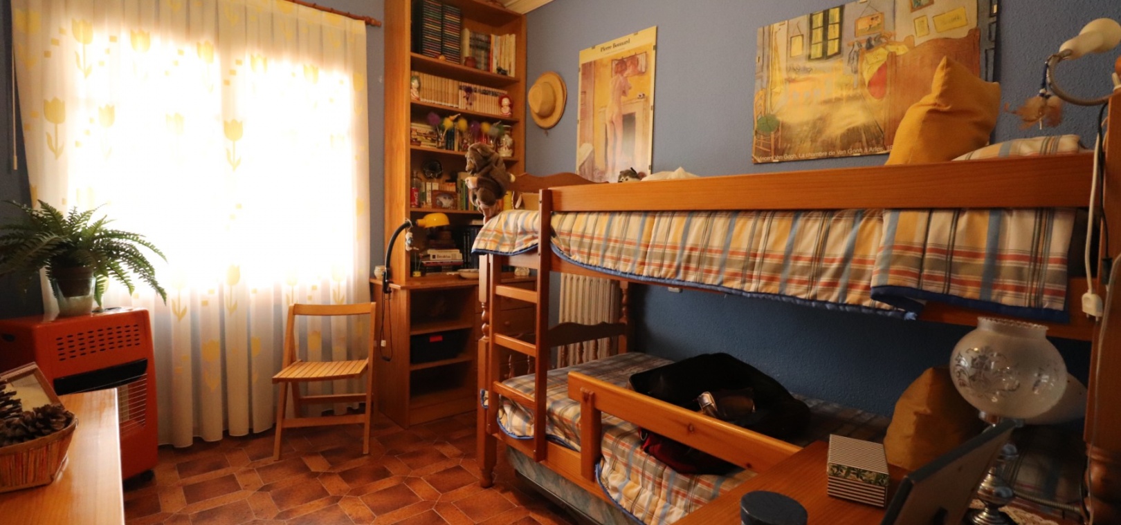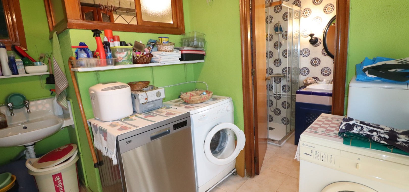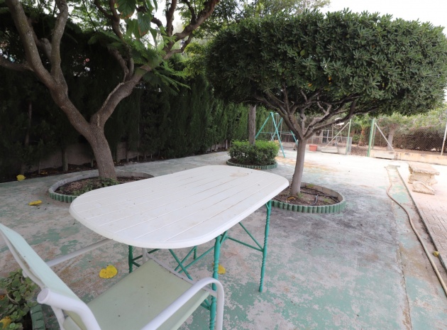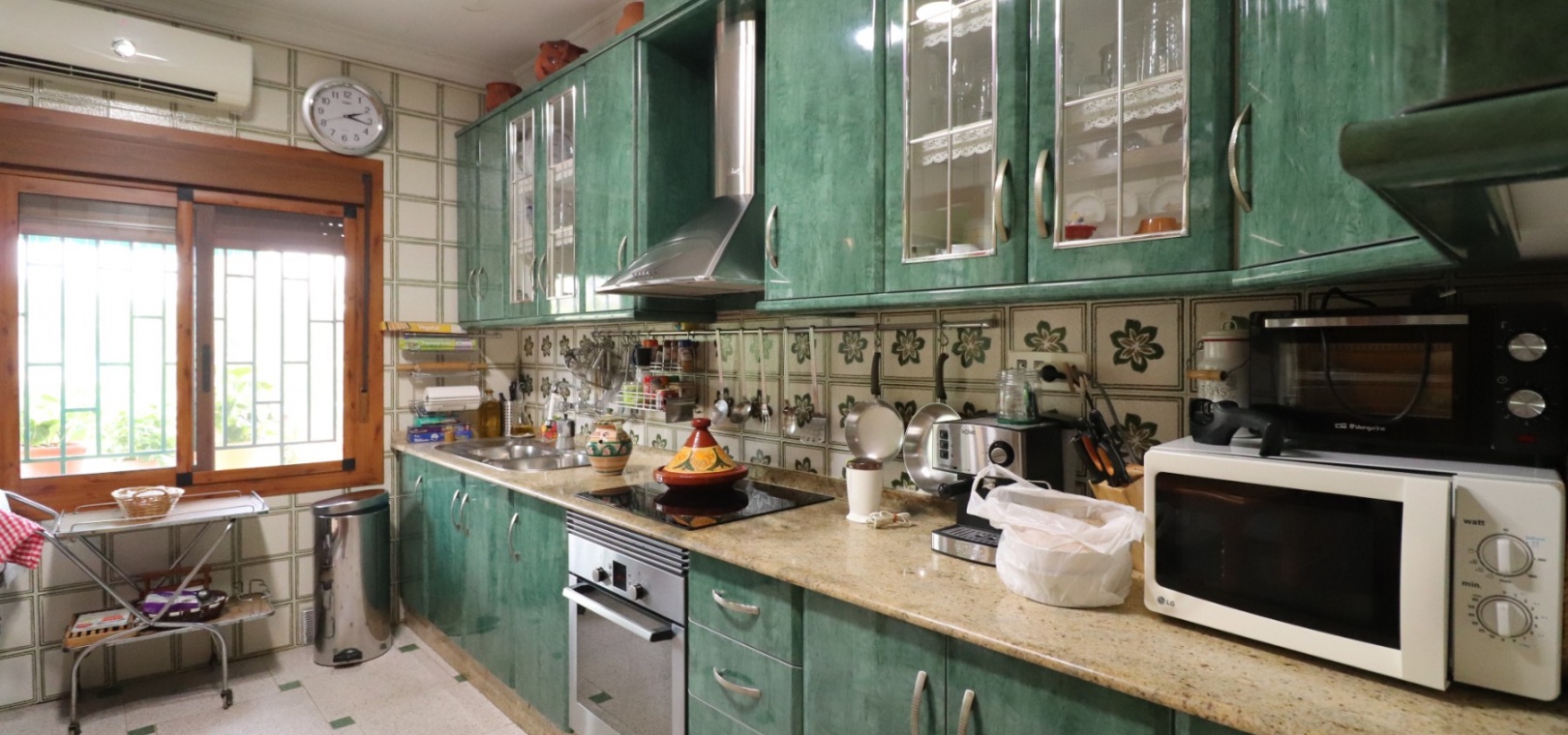 Deze op het zuidoosten gelegen landvilla met vier slaapkamers ligt in Montepinar, een aantrekkelijke woonwijk van Orihuela, omgeven door bergen, waarbinnen u vele sedentaire routes/picknickplaatsen heeft. Op slechts vijf minuten lopen heeft u een gemeentelijk sportveld met voetbalveld, padelbaan, zwembad, bar en restaurant. De stad Orihuela ligt op ongeveer 5 minuten met de auto en de natuurlijke bronnen van Fortuna liggen op 25 minuten rijden en de kust op ongeveer 35 minuten. Dit huis in Spaanse stijl van 181 m², verdeeld over één verdieping, beslaat een perceel van 1292 m² en bestaat uit: ruim overdekt entreeterras, leidend naar de gang; dubbele openslaande deuren leiden naar de woon-/eetkamer met open haard en airco; aparte ingerichte keuken met een grote bijkeuken en vervolgens een doucheruimte; twee tweepersoonsslaapkamers en twee eenpersoonsbedden; verdere familiedoucheruimte. De toegang met de auto leidt naar een wijd open betegelde ruimte, met toegang tot de garage, die ideaal zou zijn als werkplaats; veel volgroeide beplante gebieden met bomen, fruitbomen, struiken, enz., 10 x 4 privézwembad. Extra's zijn onder meer centrale verwarming en inbouwkasten in drie van de slaapkamers, waarvan twee met airco. Zoveel potentieel met deze villa.
