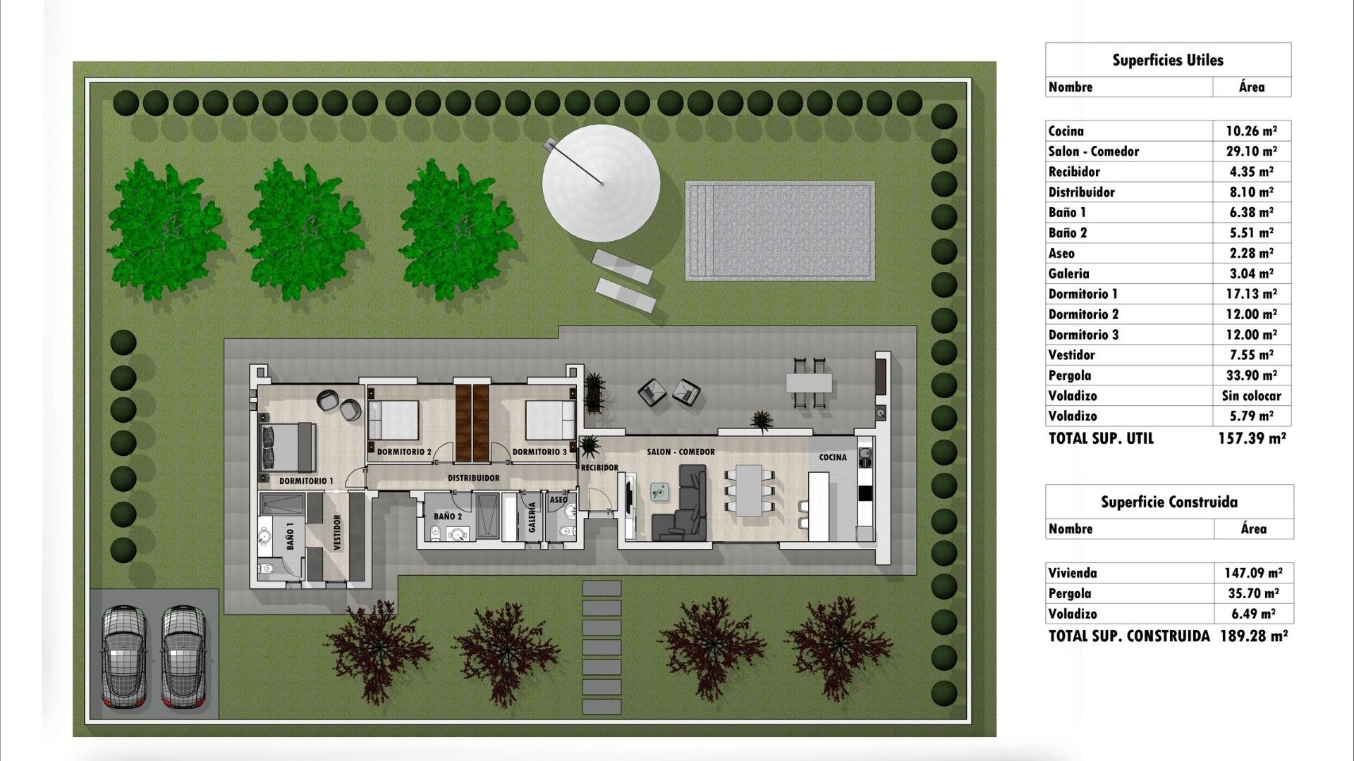 De villa's worden gebouwd op rustieke percelen van 10.959 m2, waarvan ongeveer 2.000 m2 omheind, met alle watervoorzieningen, elektriciteit, installatie van een set fotovoltaïsche panelen voor zelfverbruik van elektriciteit en een afvalwaterzuiveringssysteem door middel van een biologische oxidatiezuiveringsinstallatie.