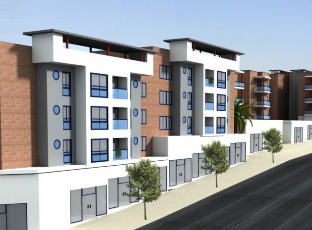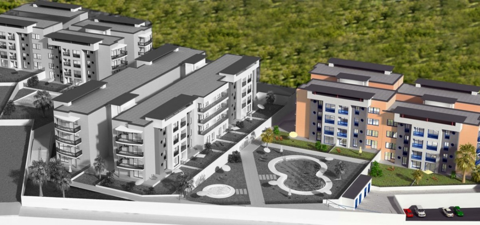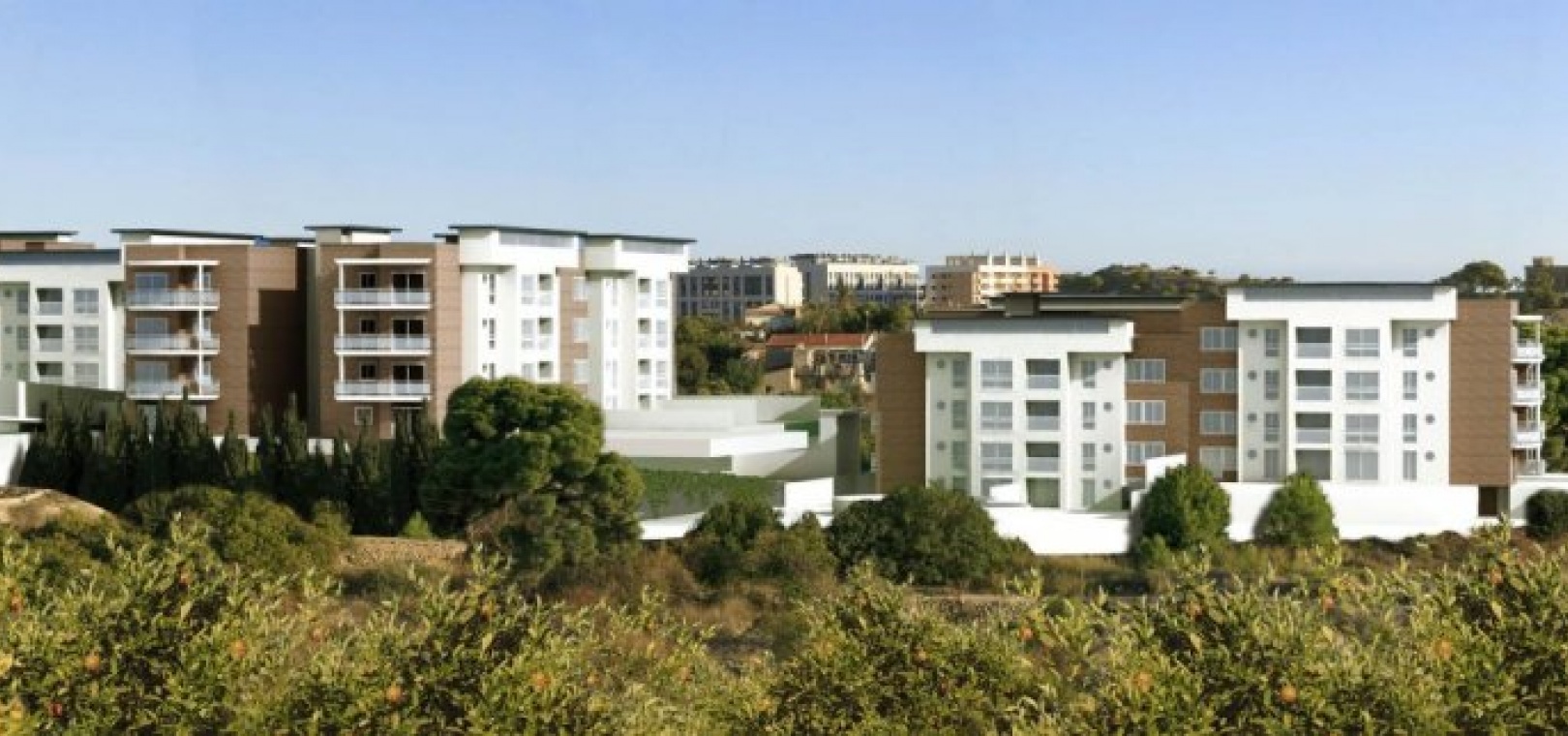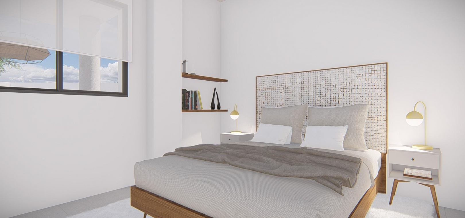 Nieuwbouw residentieel complex van 32 appartementen met 2 en 3 slaapkamers, terrassen, garages en bergingen, gemeenschappelijke ruimte met zwembad.